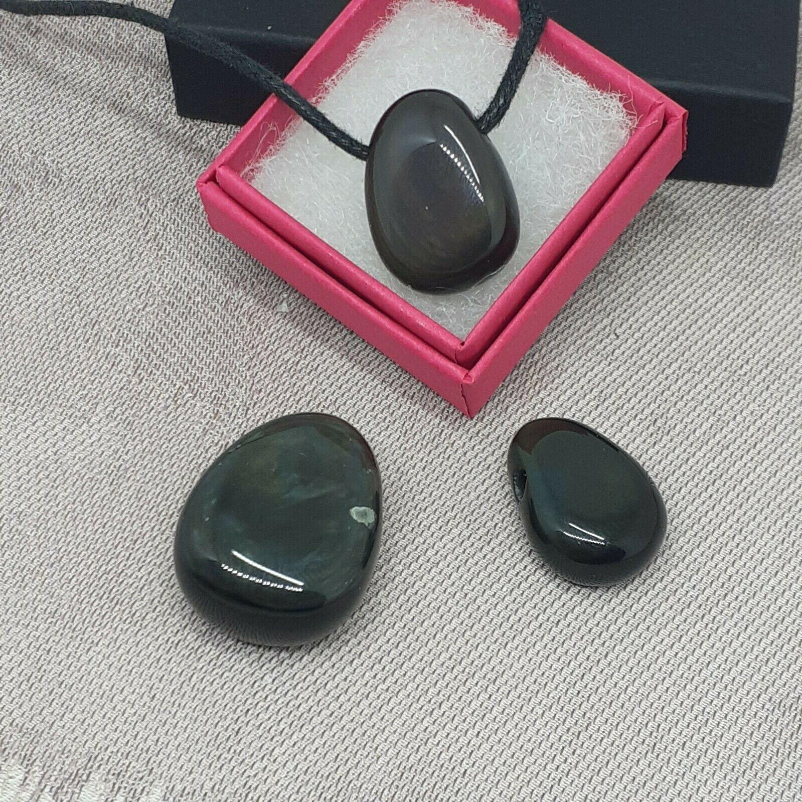 Obsidian is truth-enhancing. A strongly protective stone, it forms a shield against negativity. It blocks psychic attack and absorbs negative energies from the environment. Obsidian draws out mental stress and tension. It stimulates growth on all levels, urging exploration of the unknown and opening new horizons. Brings clarity to the mind and clears confusion. Helps you to know who you truly are. Obsidian dissolves emotional blockages and ancient traumas. Promotes qualities of compassion and strength.