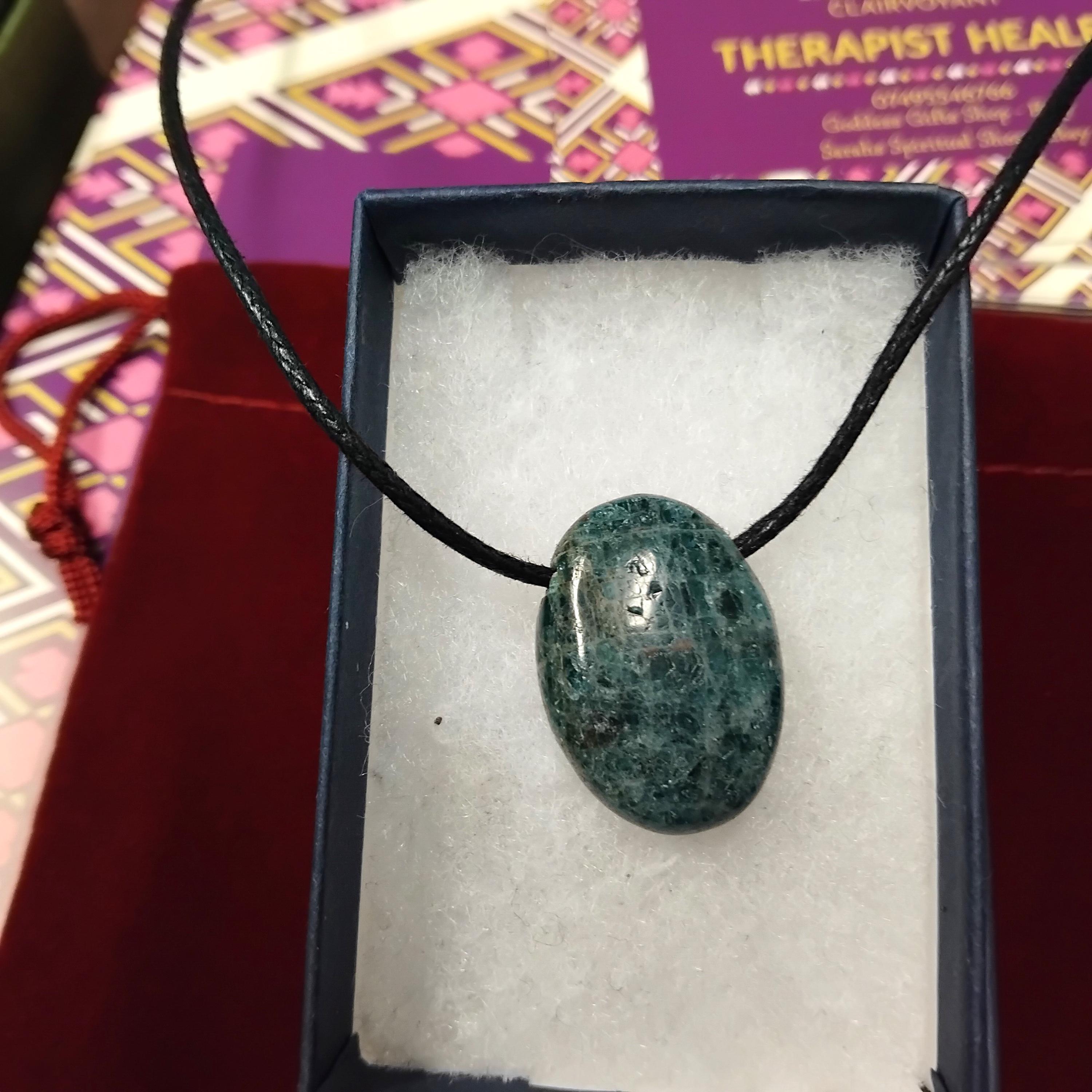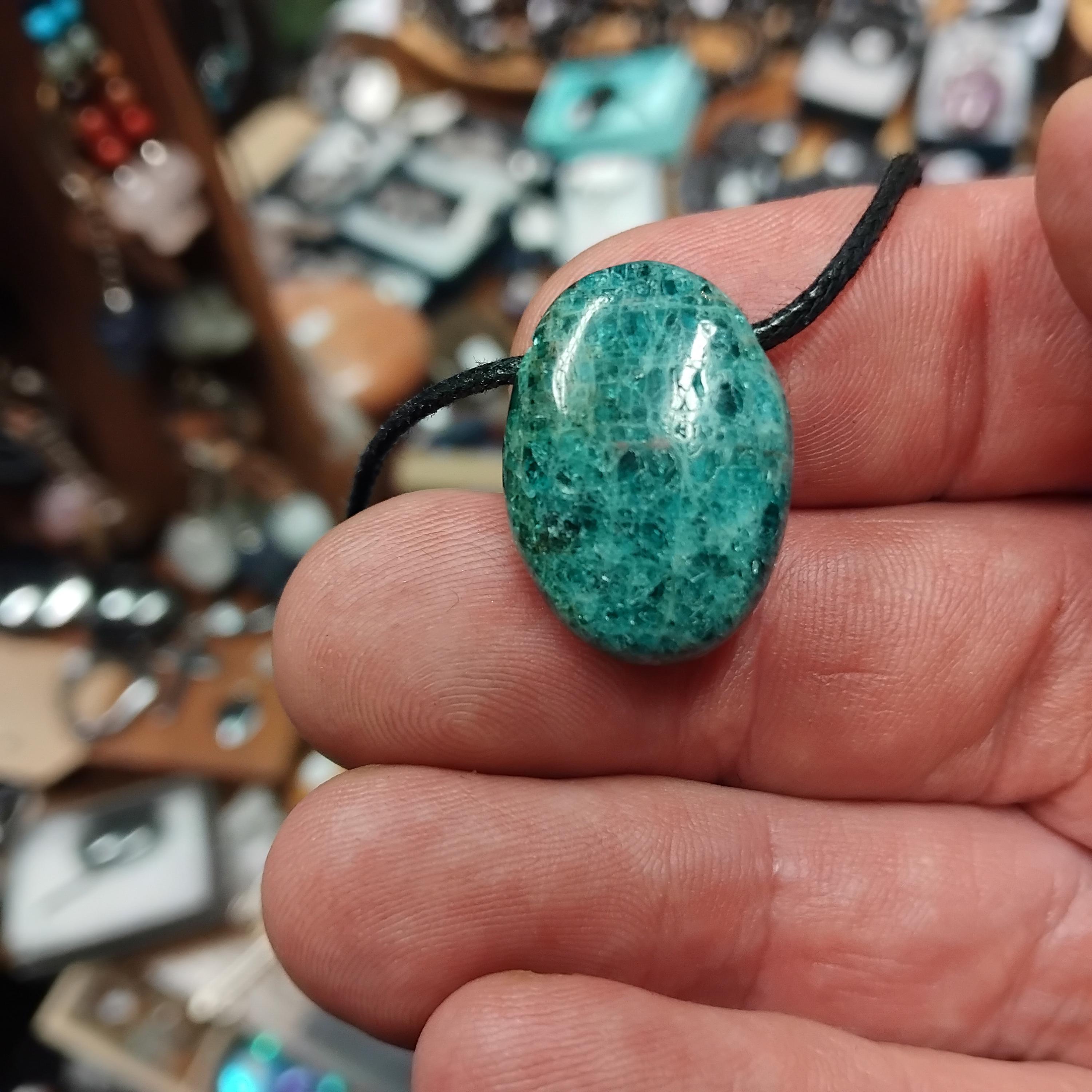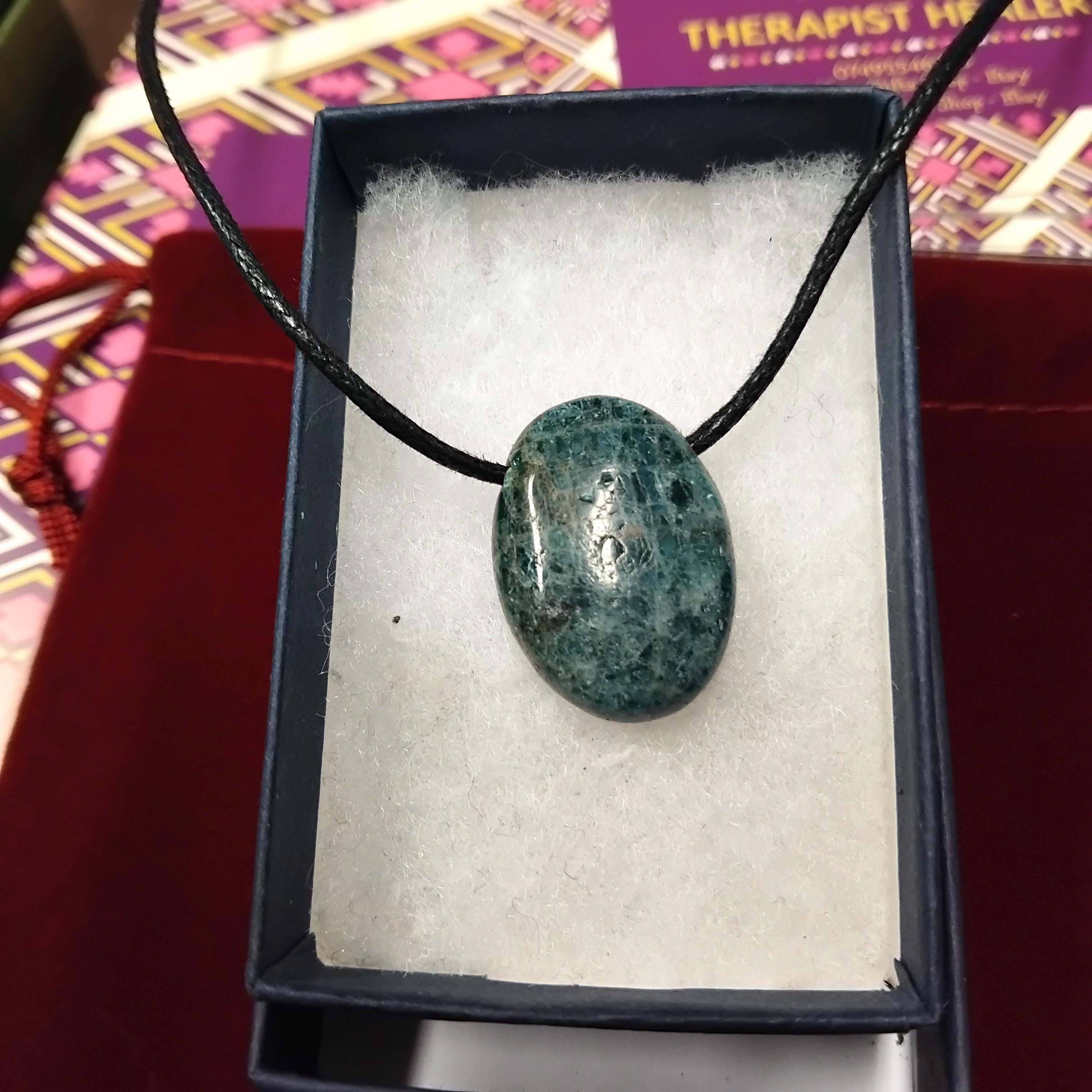 Apatite-Cabochon oval- Black Cord-Gift-Yourself-Friends-Family-Loved One- NEW- Gift Box