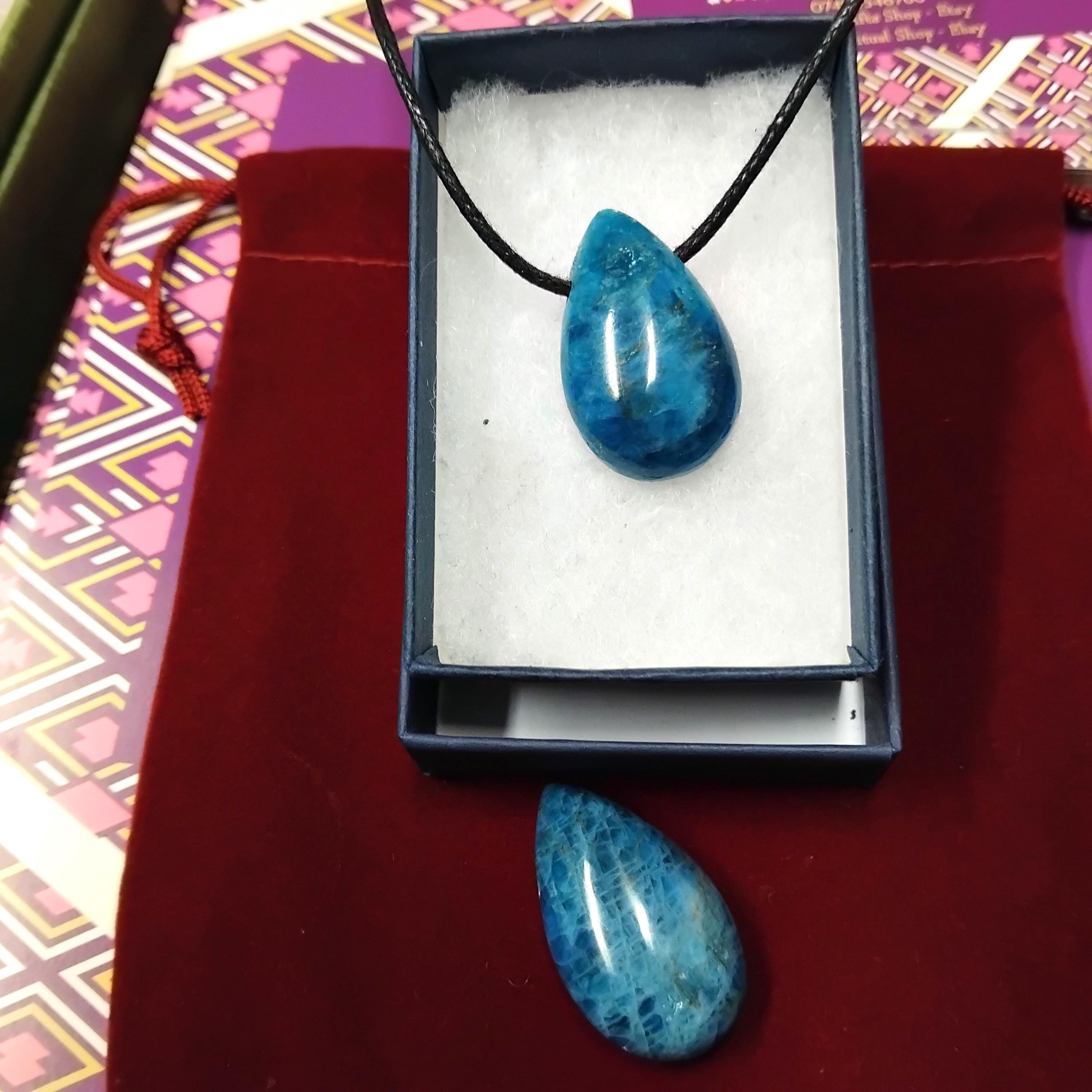 Apatite-Cabochon - Black Cord-Gift-Yourself-Friends-Family-Loved One- NEW- Gift Box