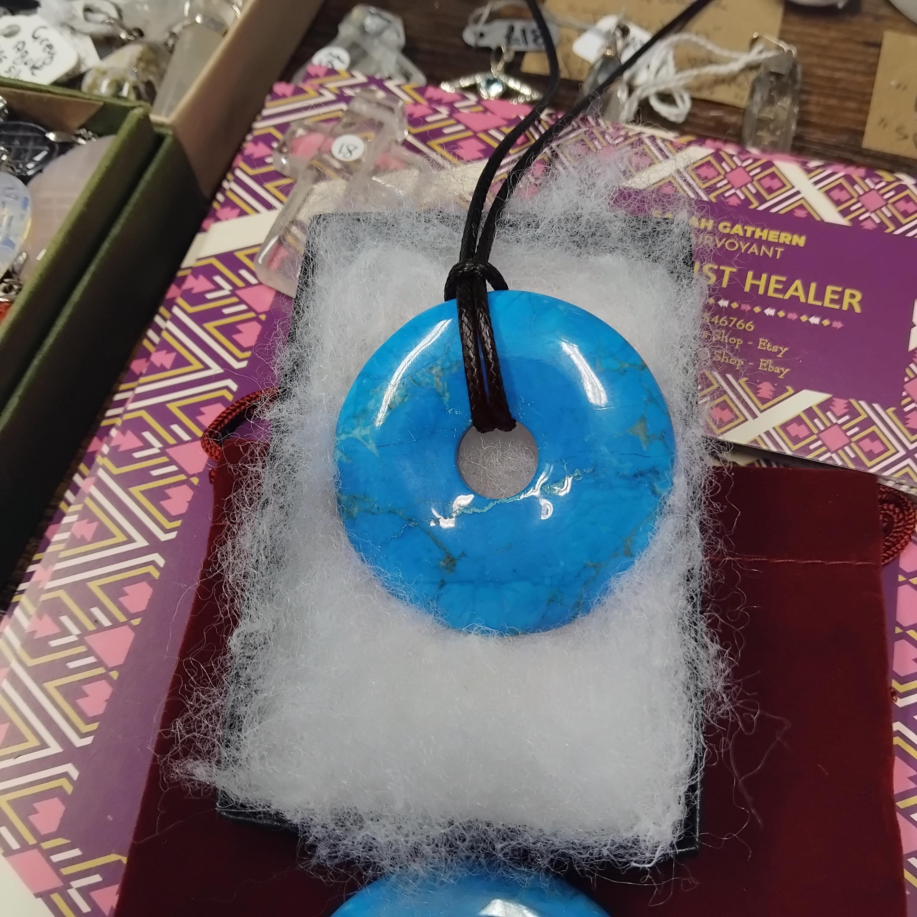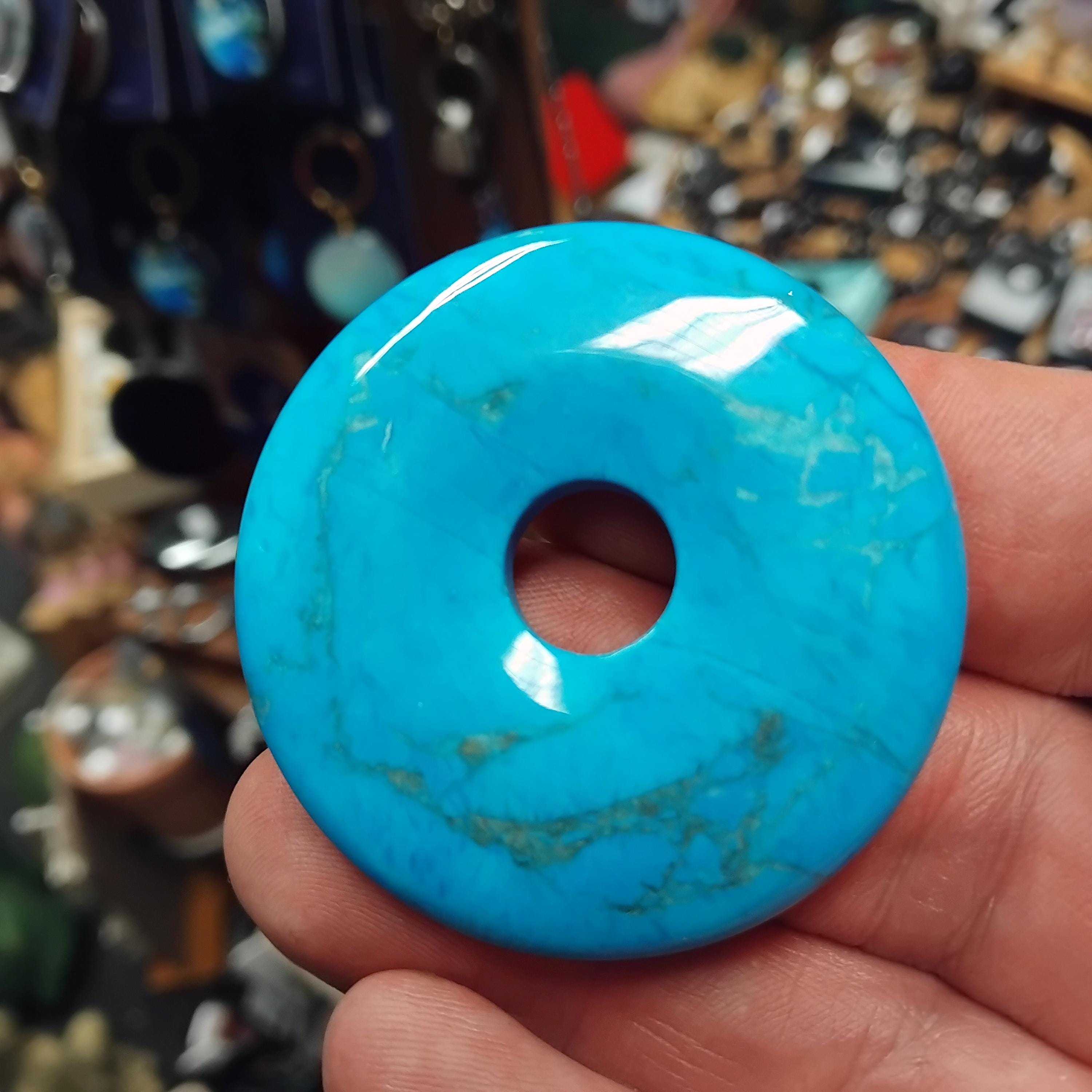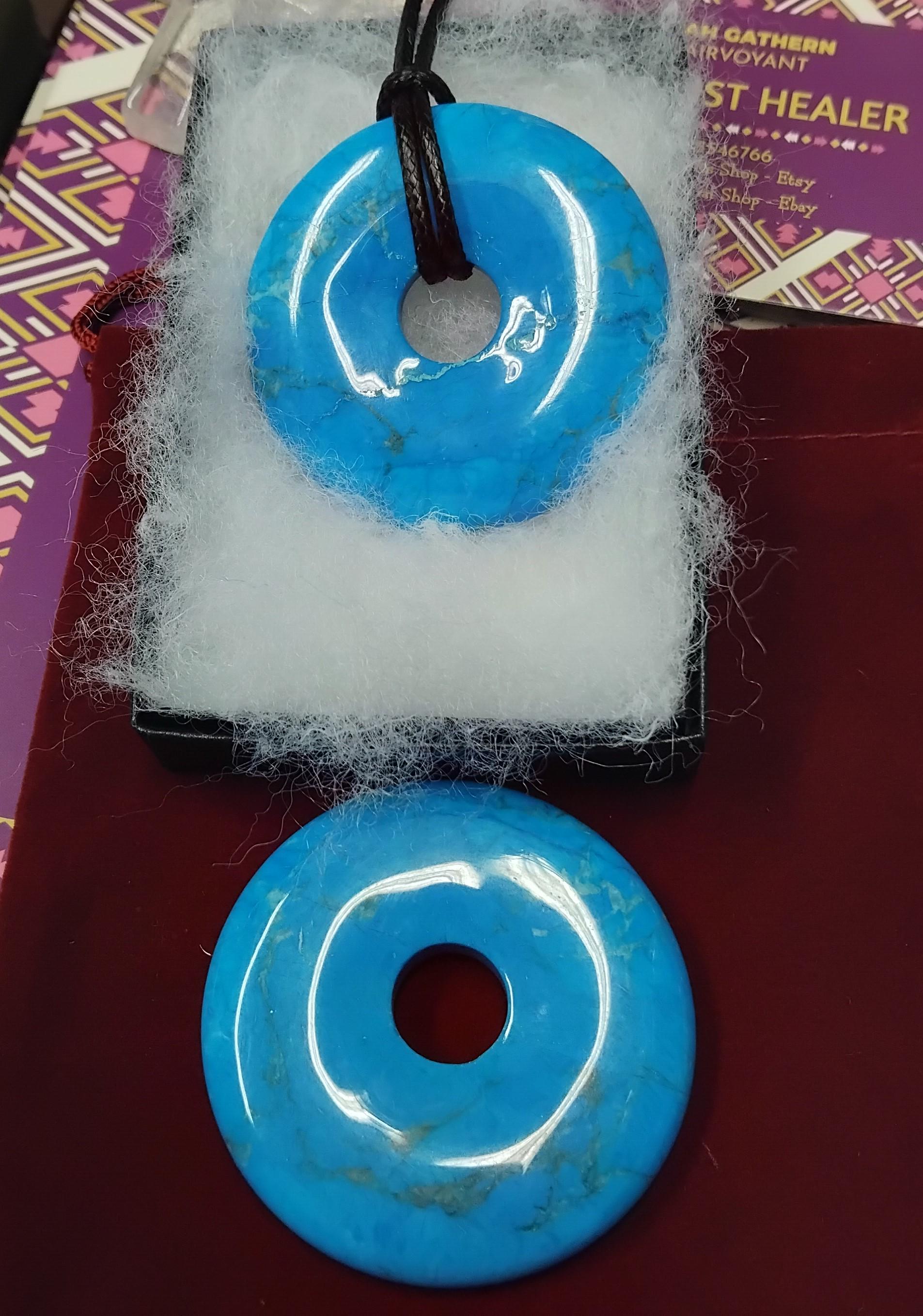 Donut Turquenite Magnesite coloured 50mm-Donut - Black Cord- NEW- Gift Box