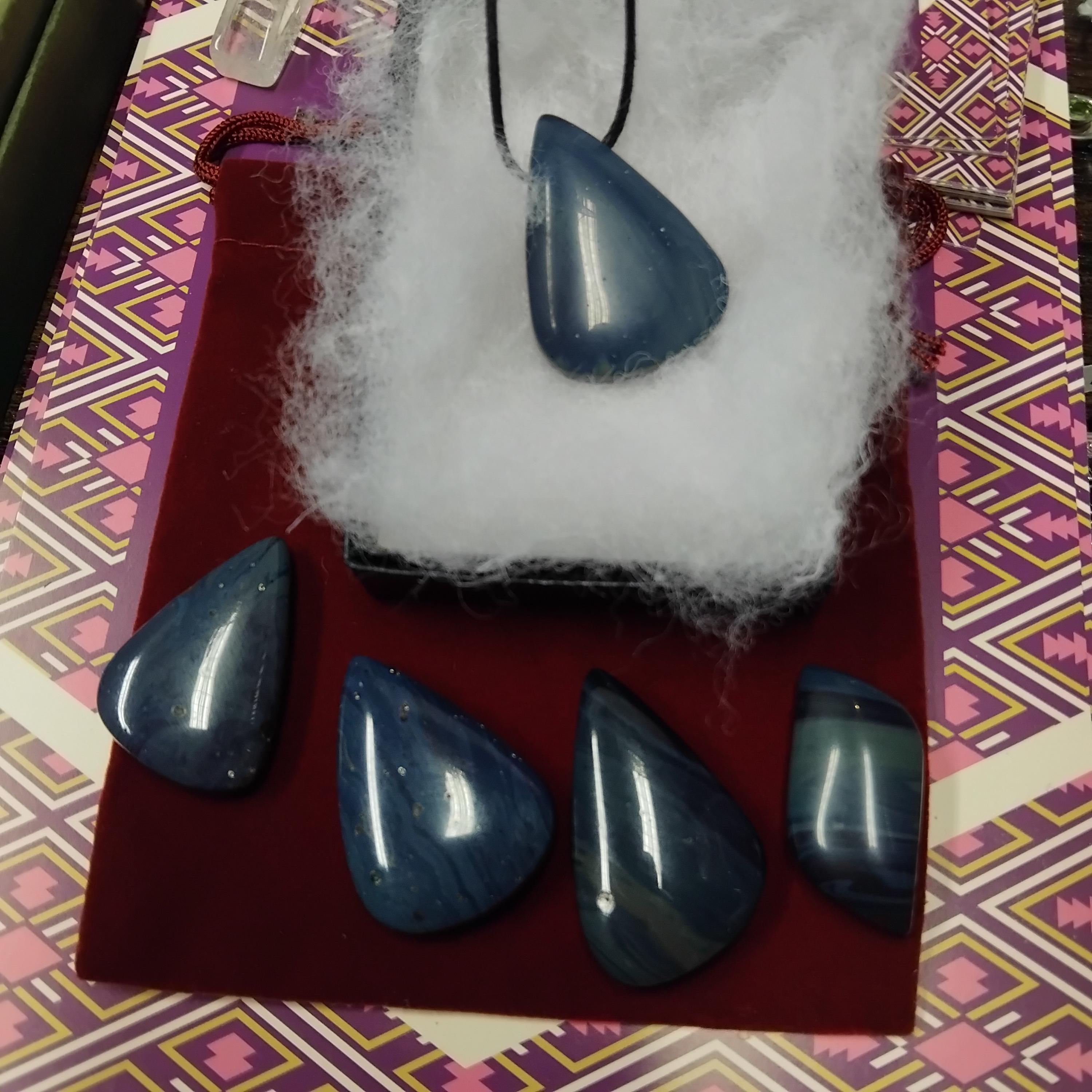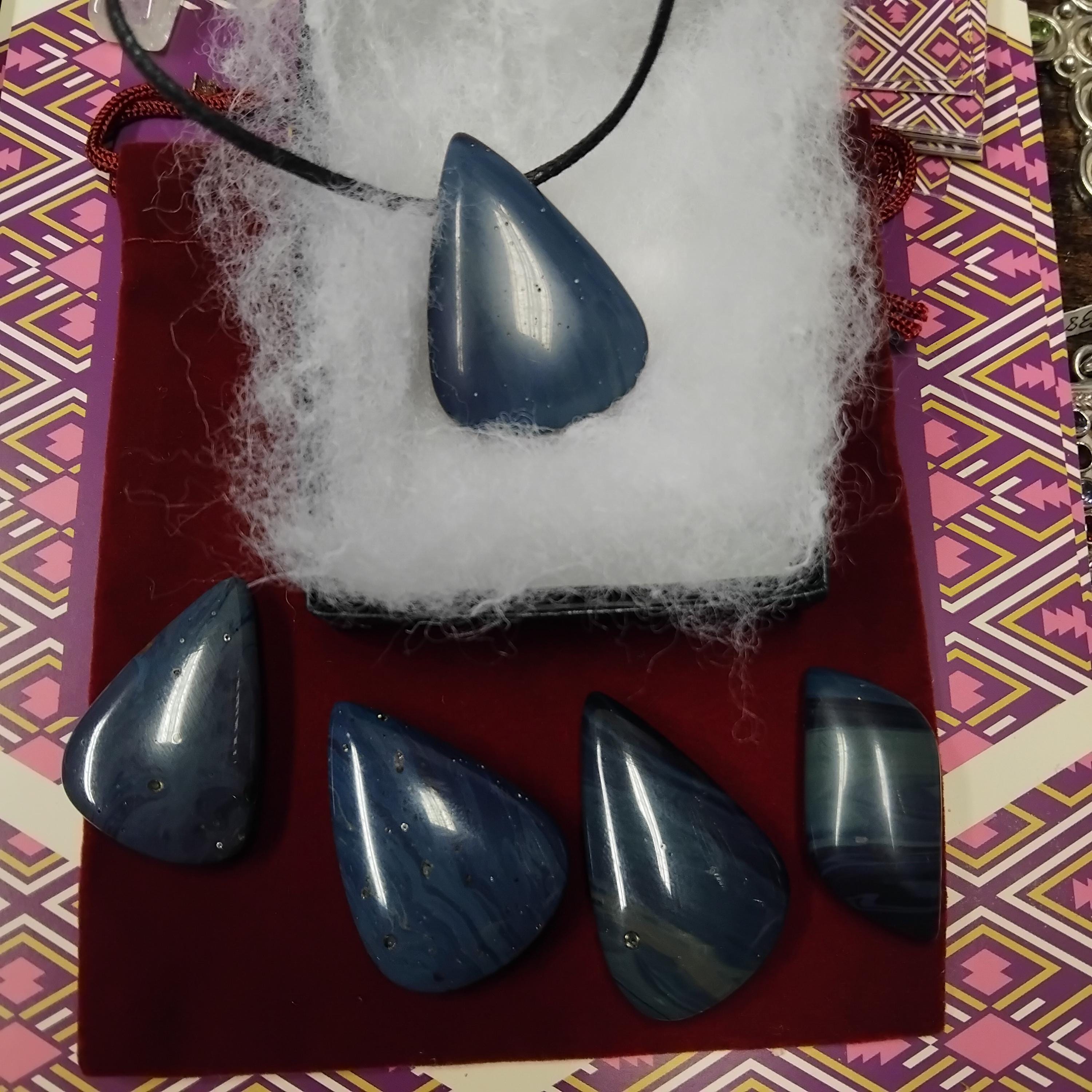 Cabochon Sieber "Agate" Drop Pendant on Black Cord - Gift Boxed