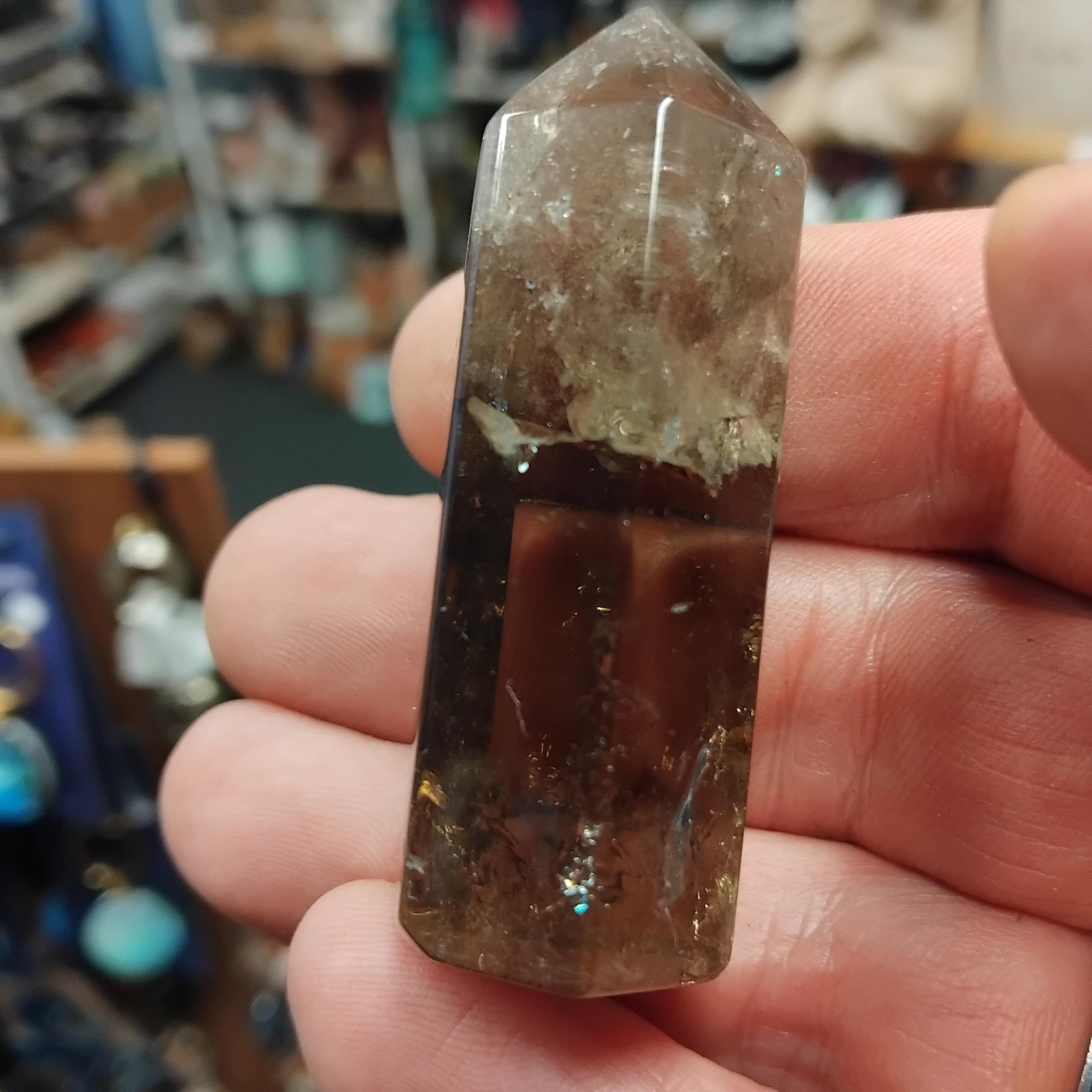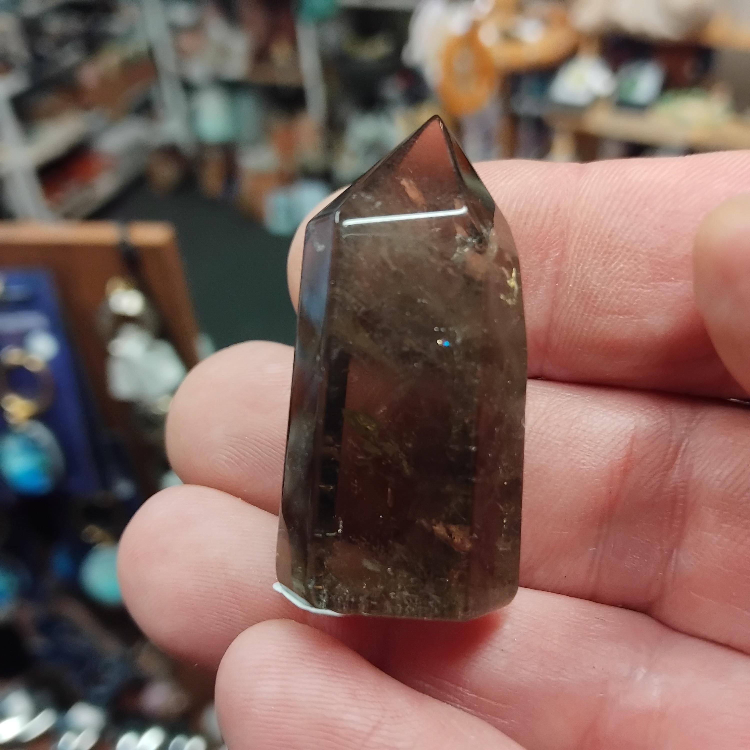 The product is a polished Smokey Quartz crystal in a standing point shape, known as AAA Grade. It comes in two sizes. Smokey Quartz is a mineral that is prized for its delicate beauty and grounding properties. The standing point shape adds an extra element of interest to the piece, making it a unique addition to any crystal or mineral collection. Perfect for crystal enthusiasts or those looking to add a touch of natural elegance to their home or workspace.