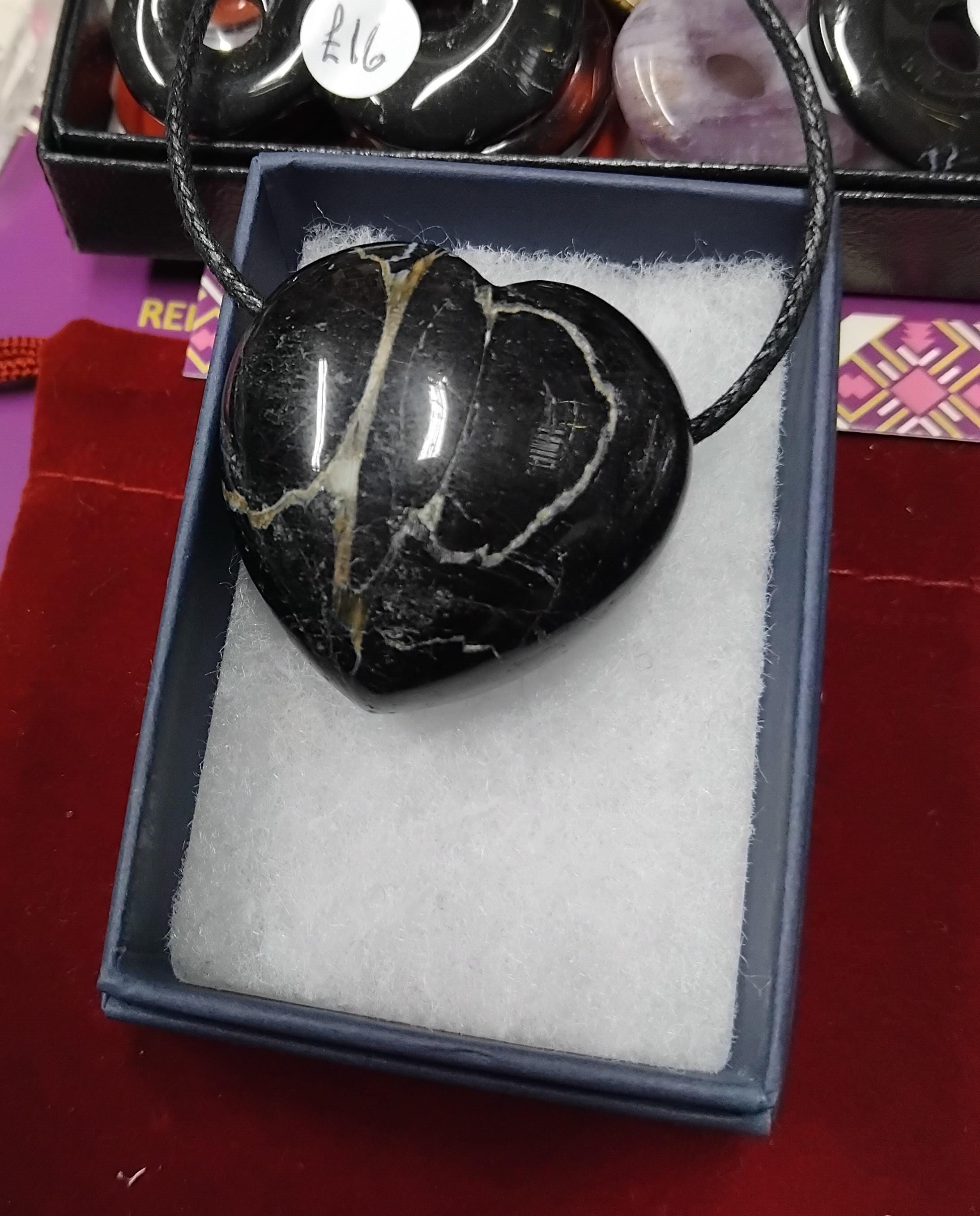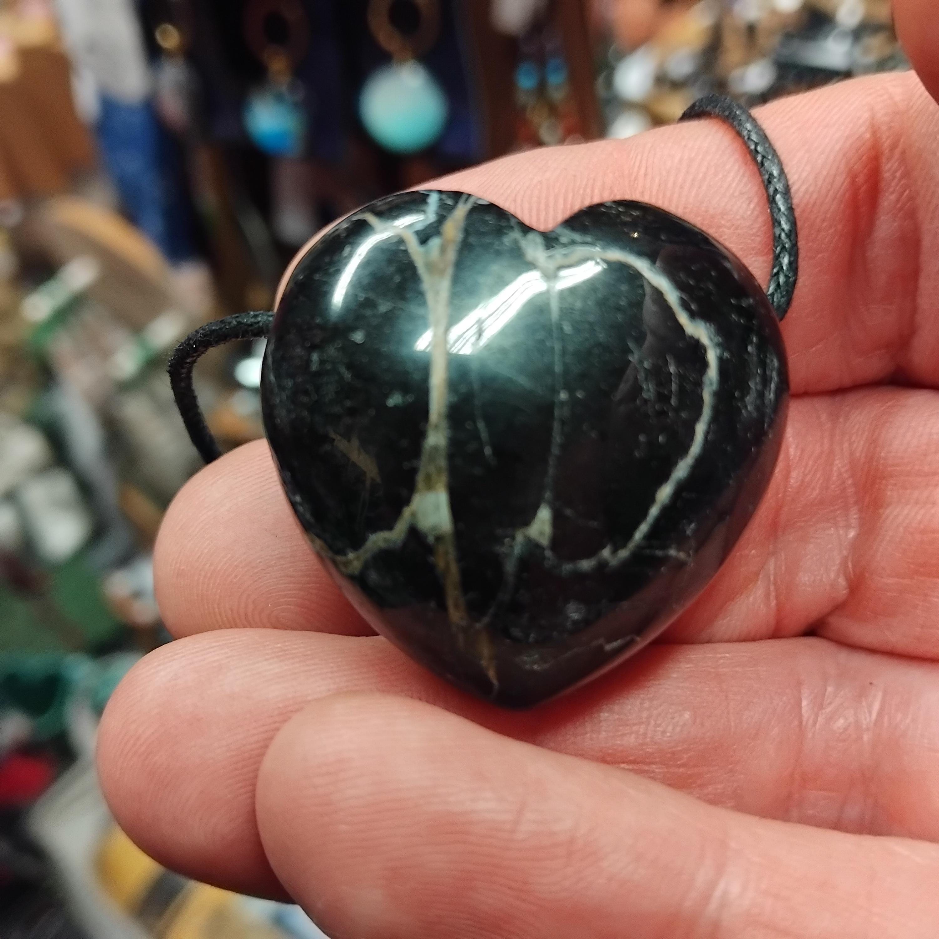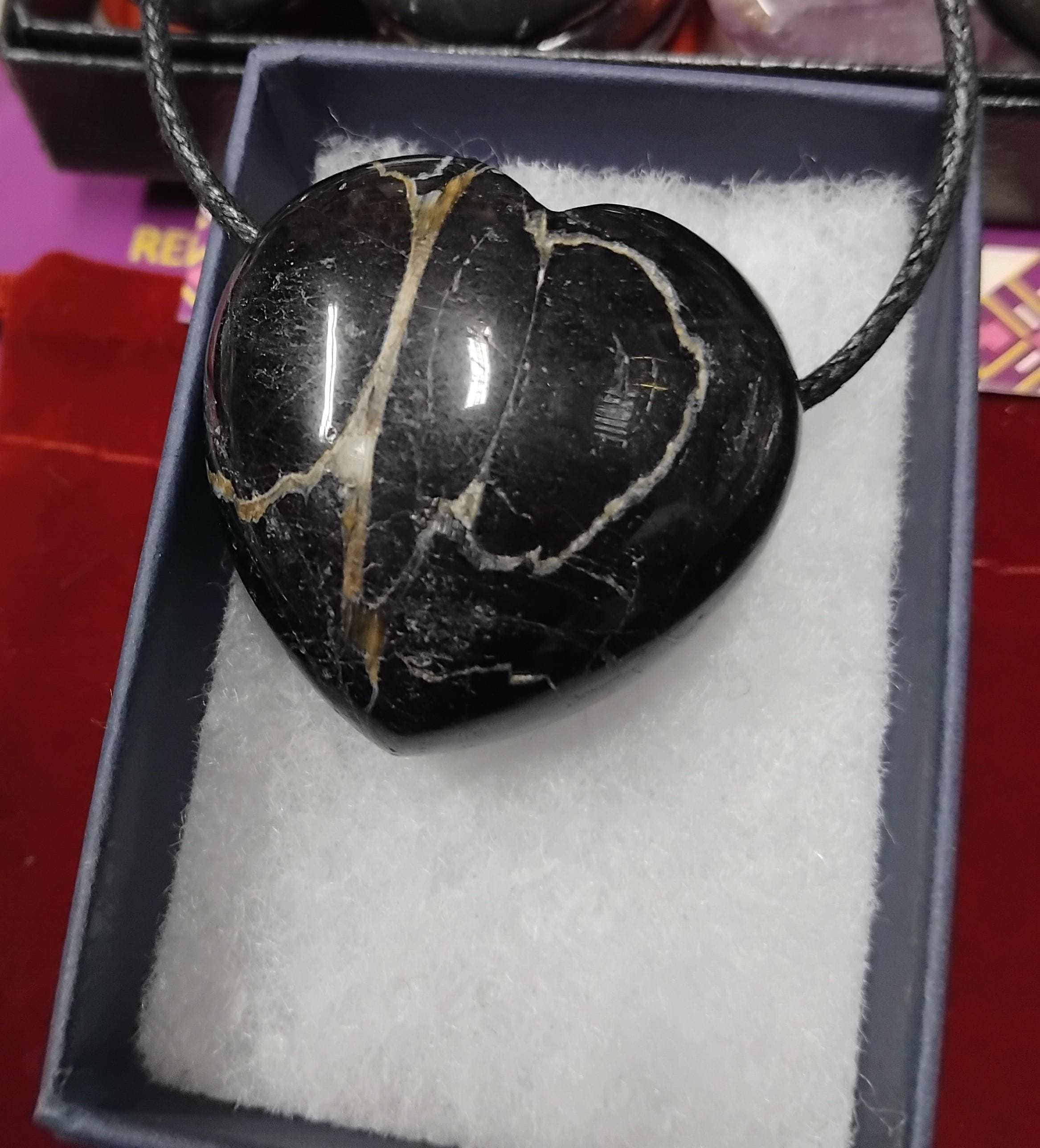 Black Tourmaline -Heart-35 mm-Pendant- Black Cord- Gift Box- Gift-Yourself- Friends-Family-Loved One-Gift Box