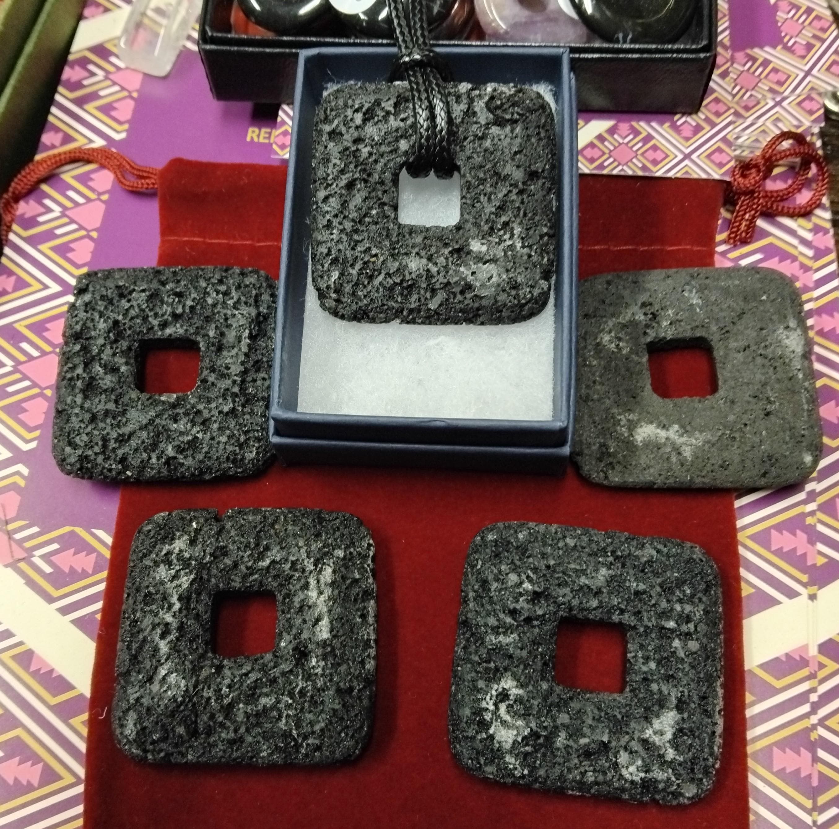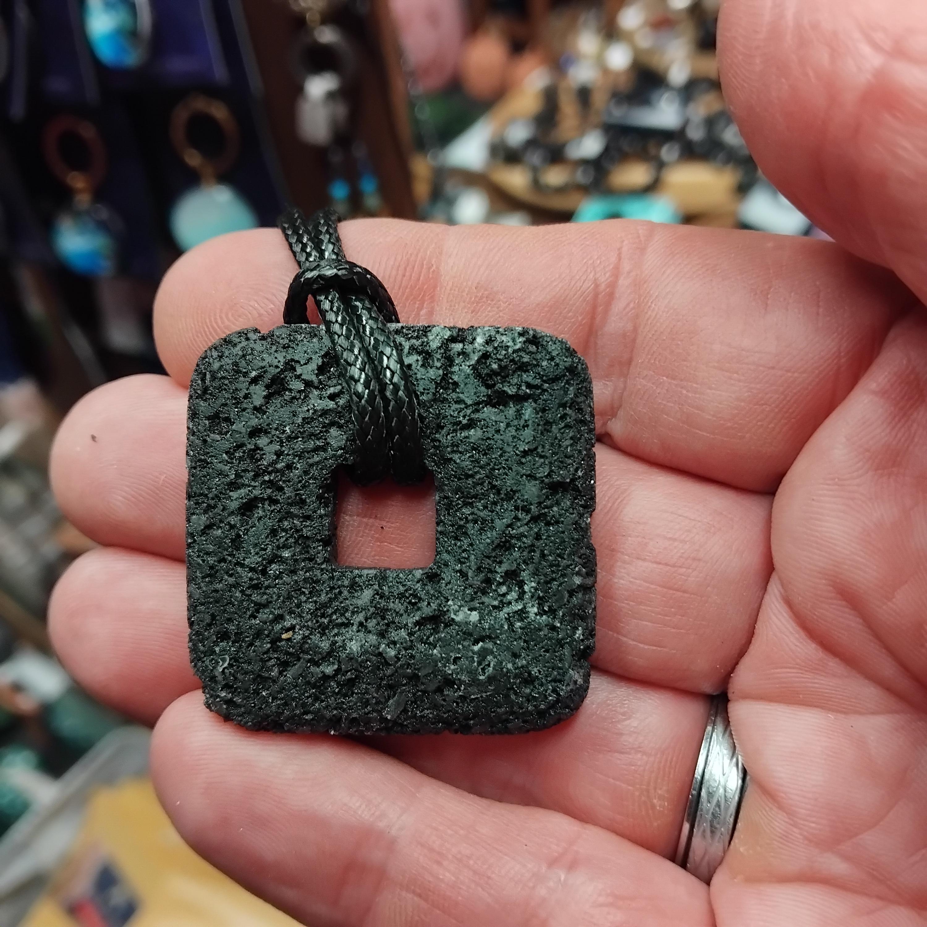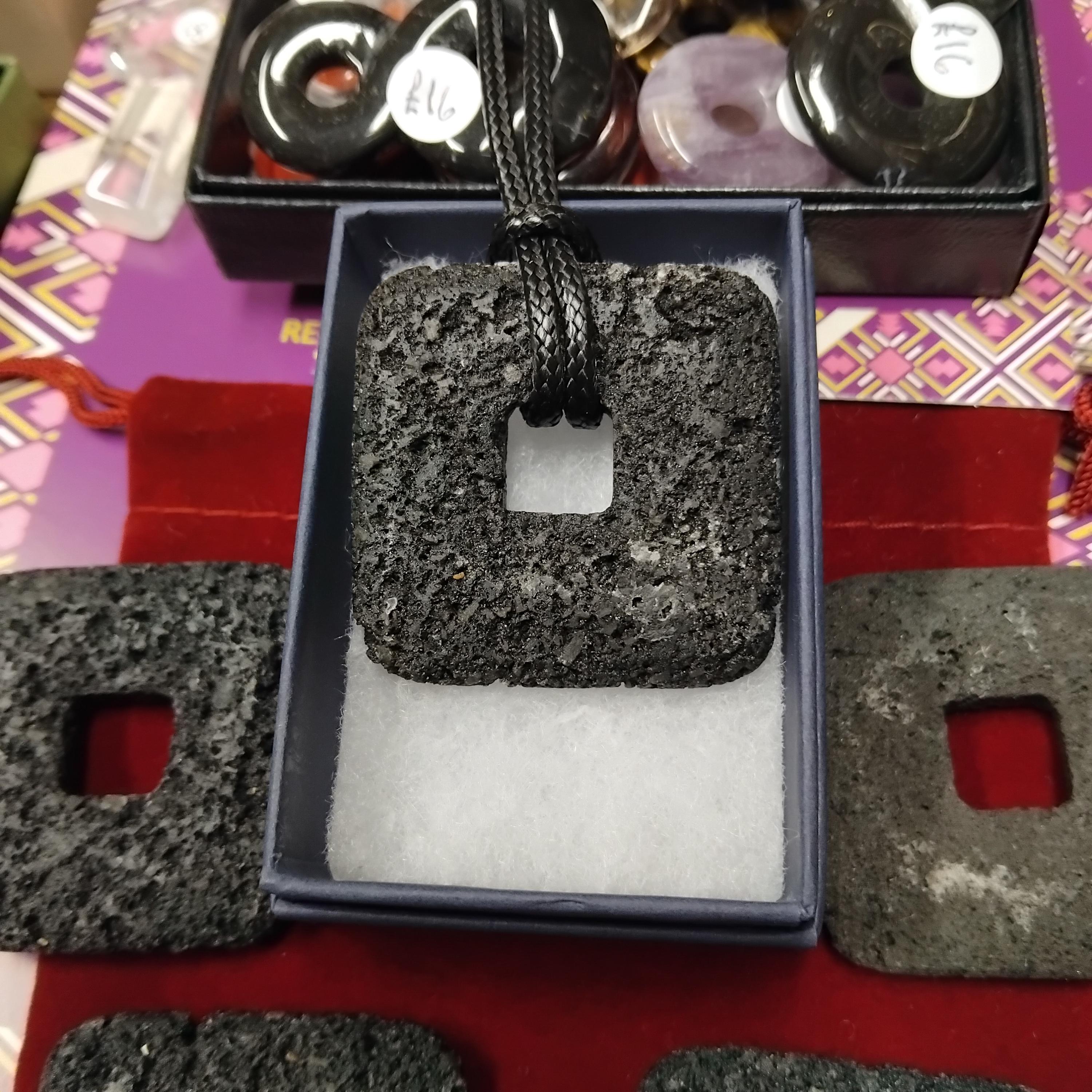 Lava Rock-Square-Donut-40 mm-Pendant- Black Cord- Gift Box- Gift-Yourself- Friends-Family-Loved One-Gift Box