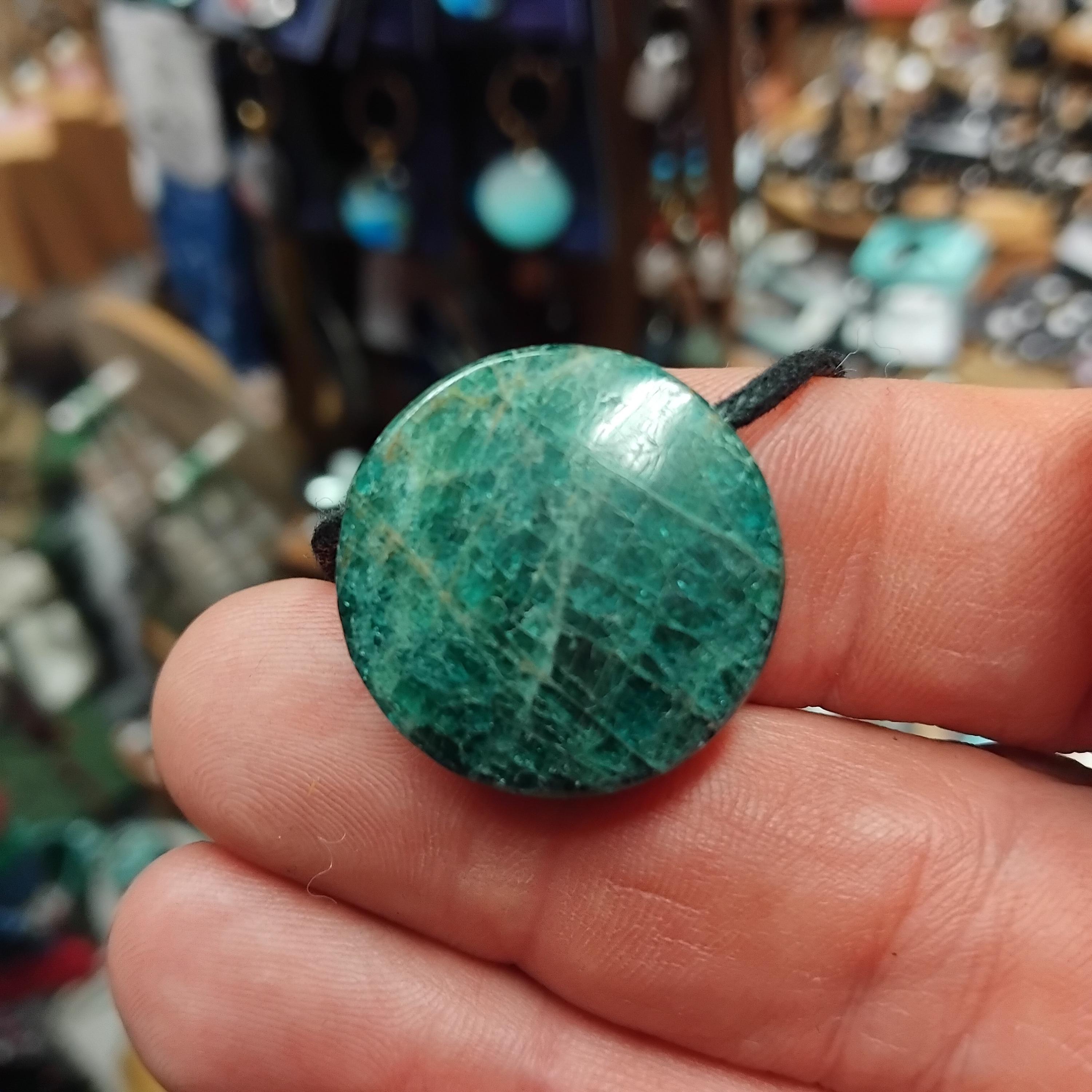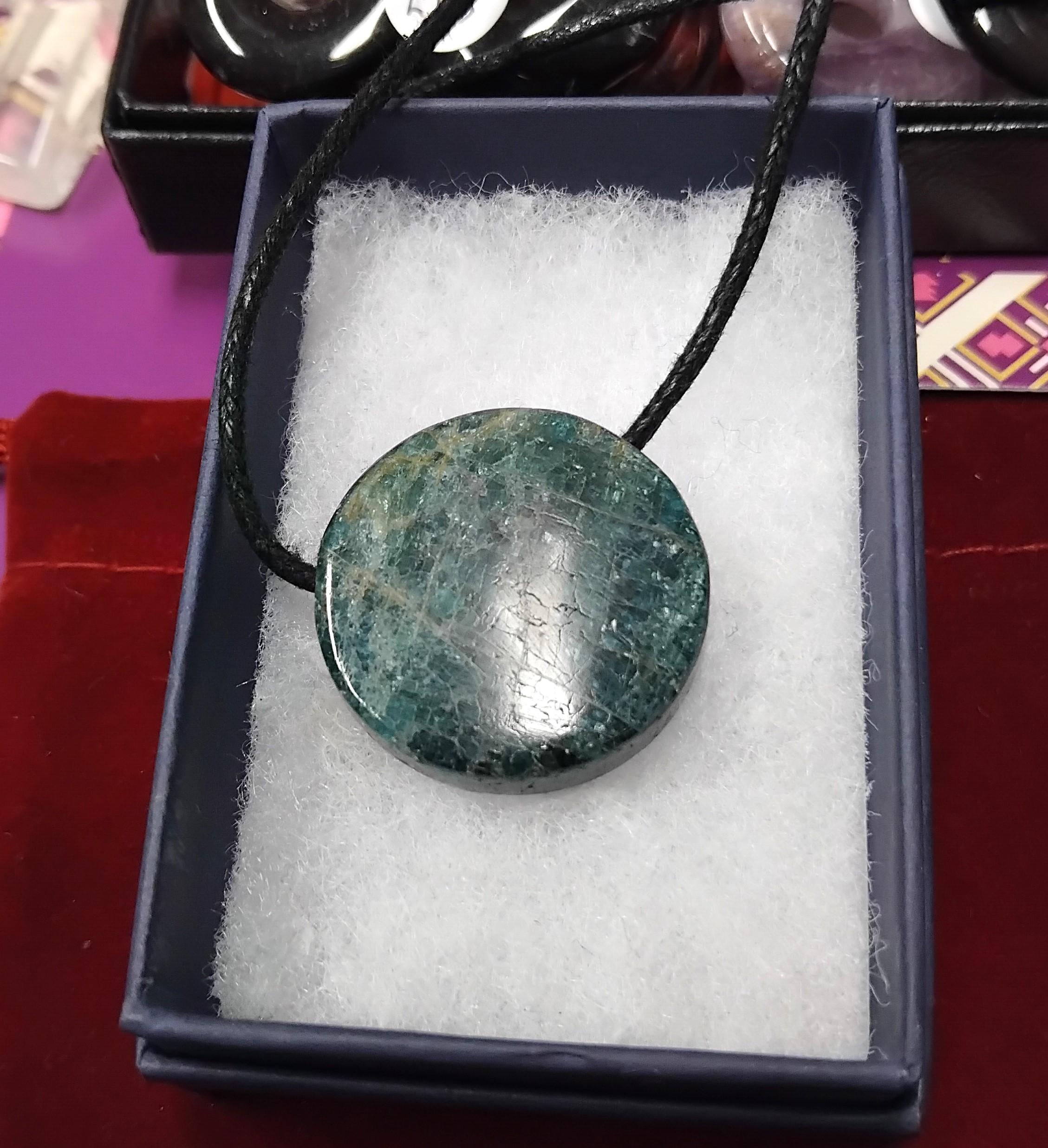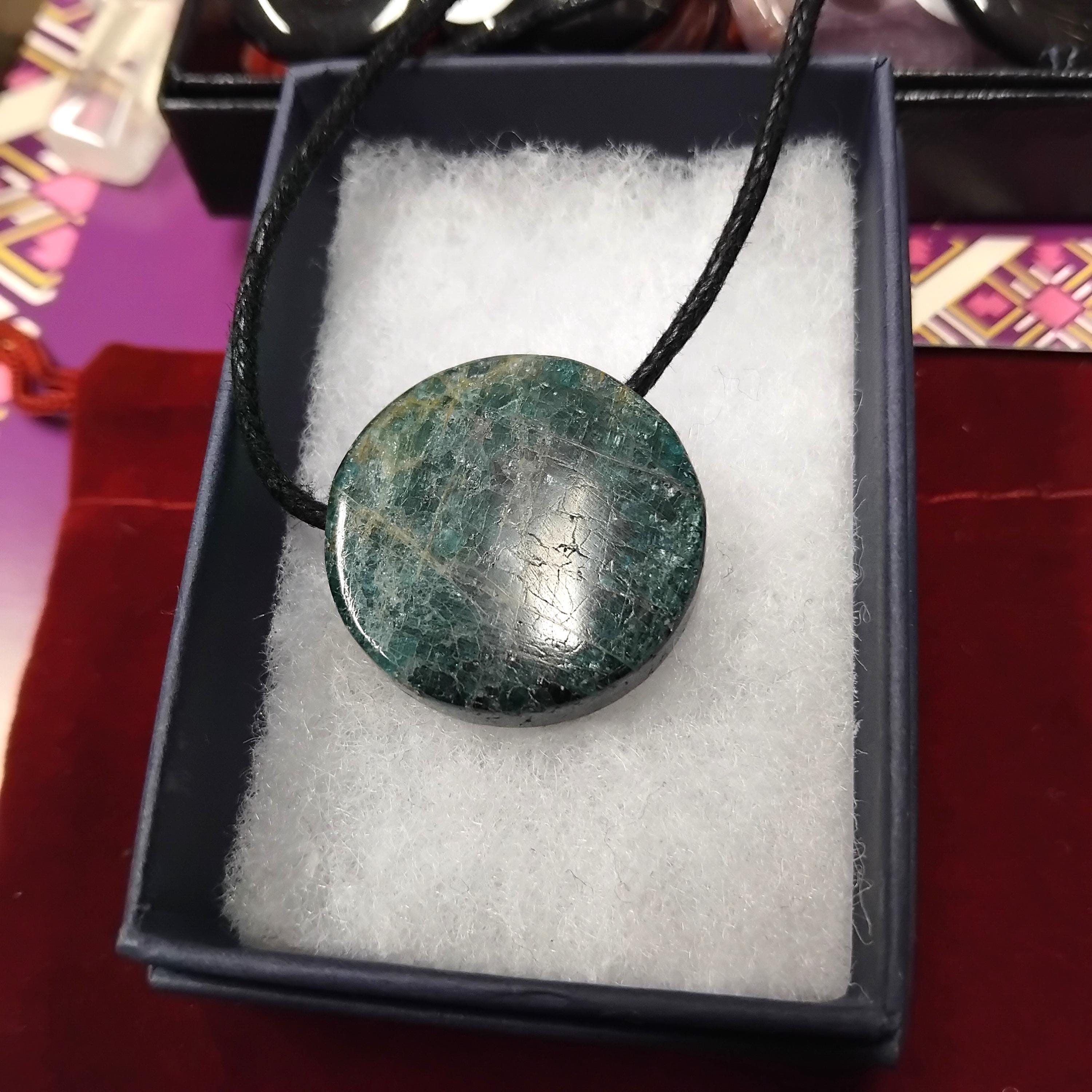 Apatite-Cabochon Round - 25 mm-Black Cord- Gift Box- Gift-Yourself- Friends-Family-Loved One-Gift Box