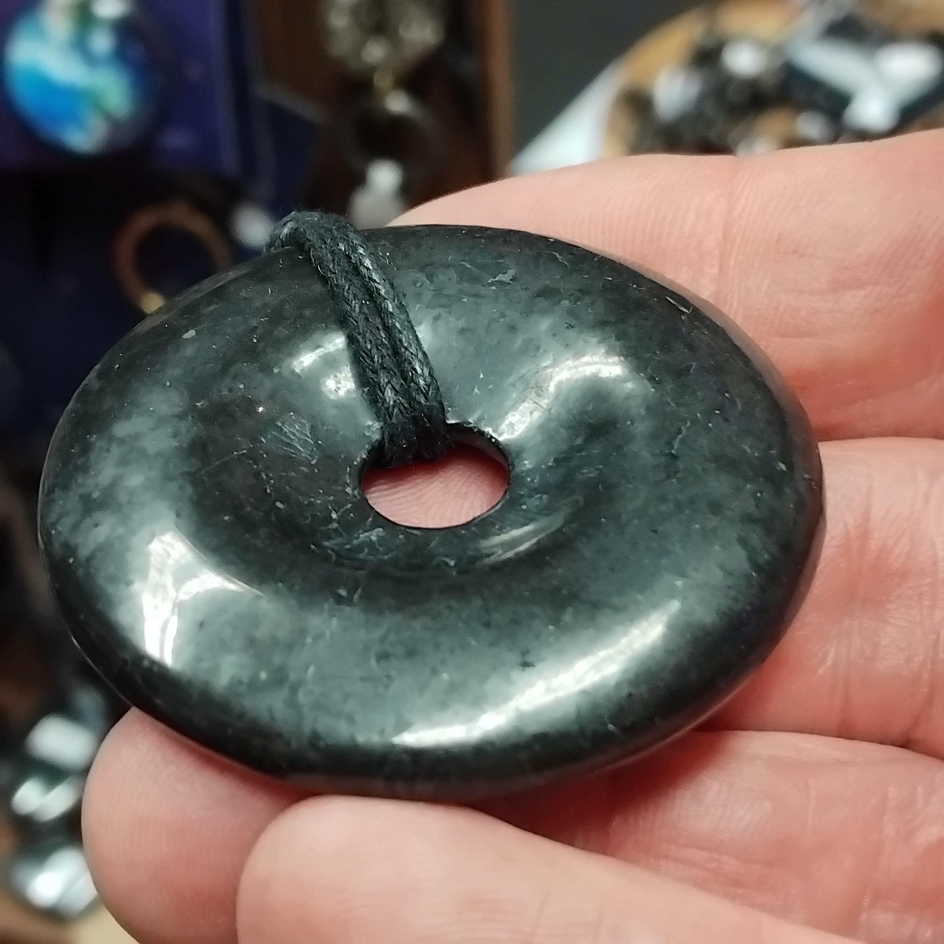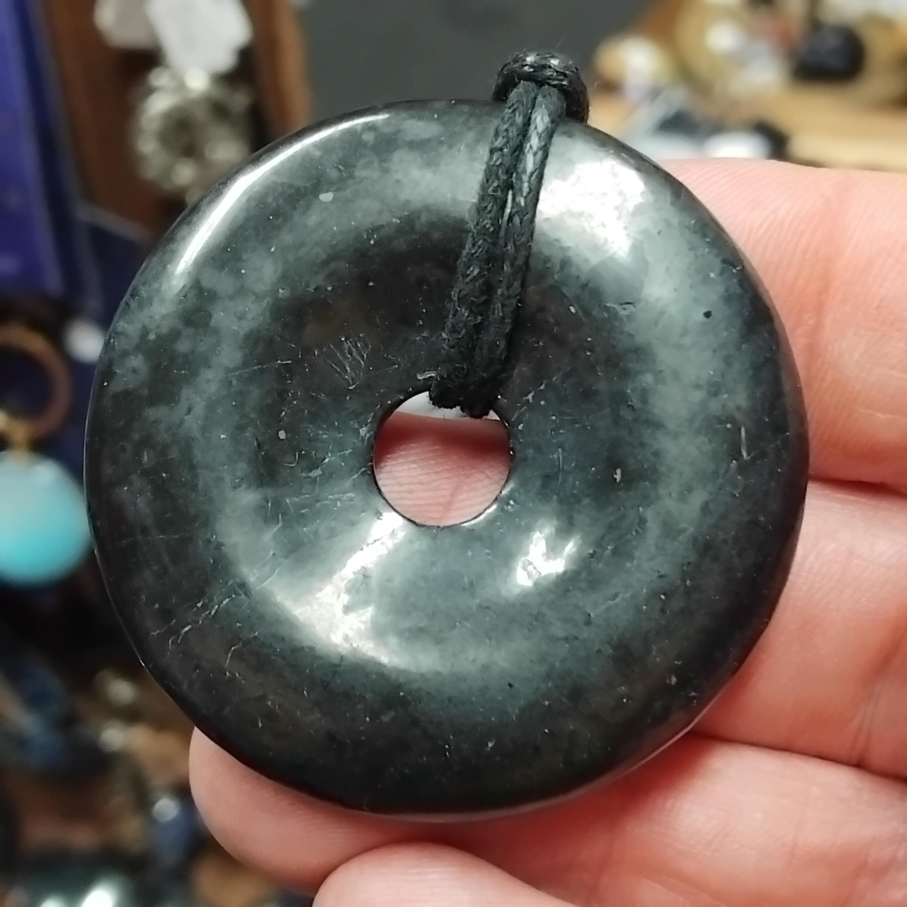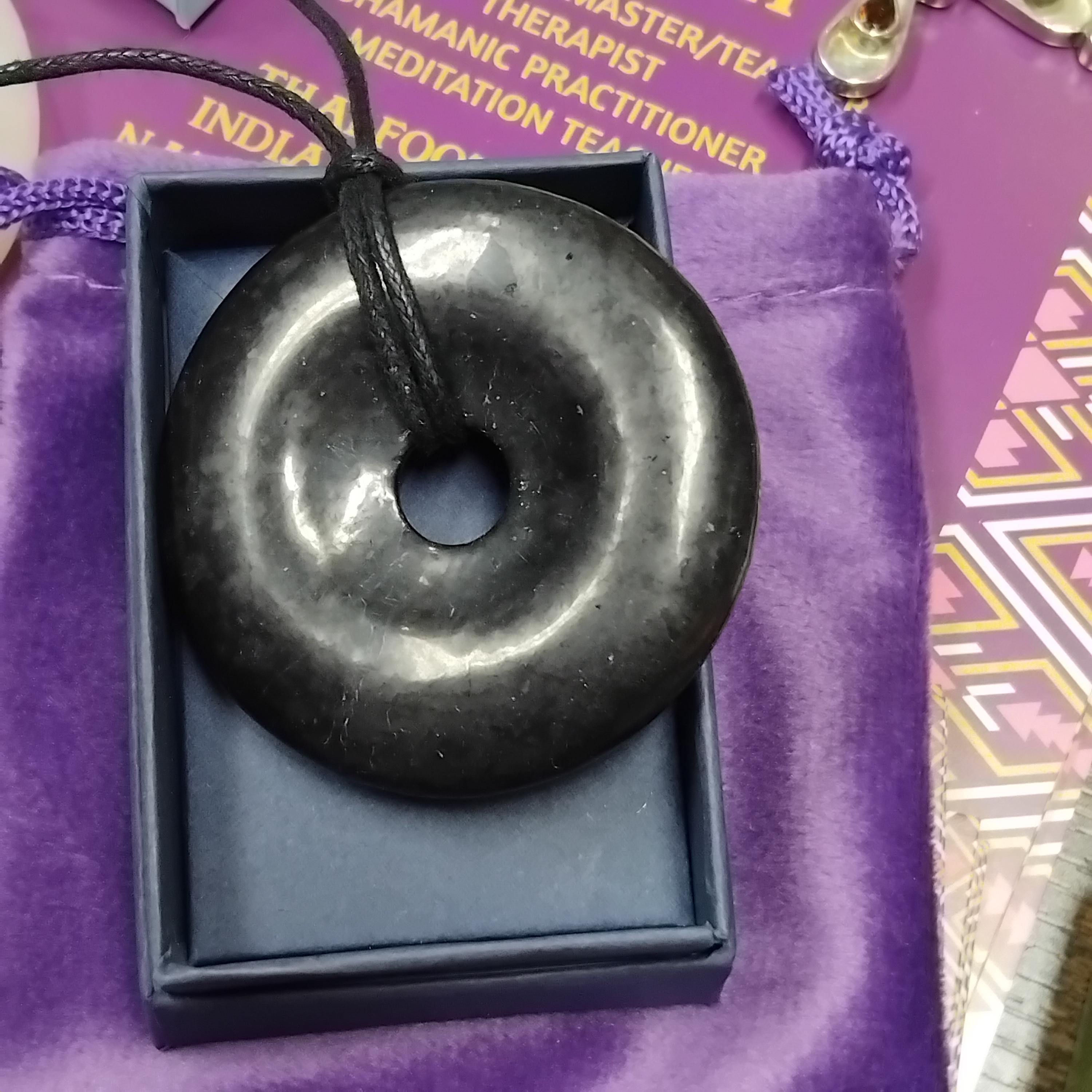 SHUNGITE- Donut-Pendant-50 mm- Black Cord- Gift Box- Gift-Yourself- Friends-Family-Loved One-Gift Box