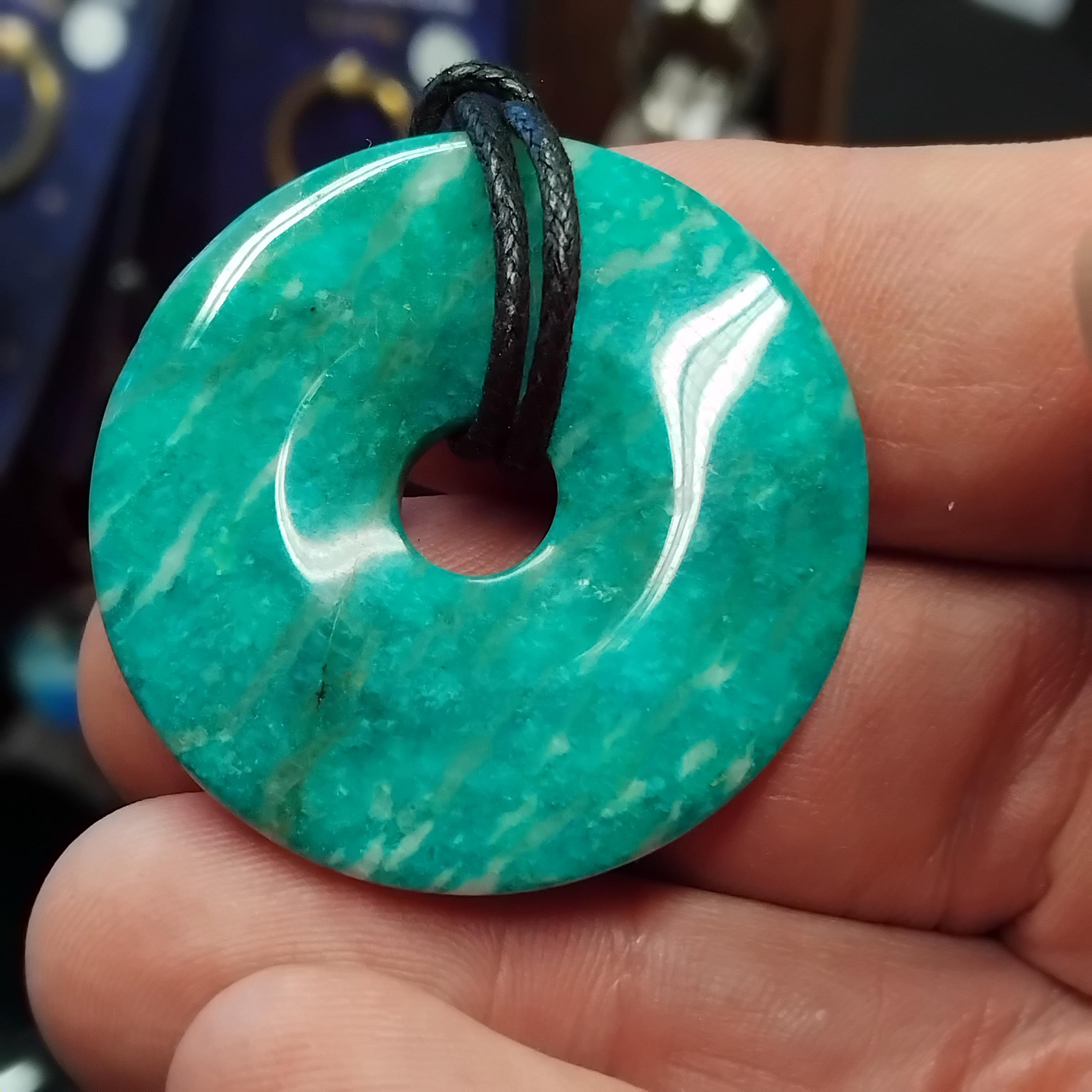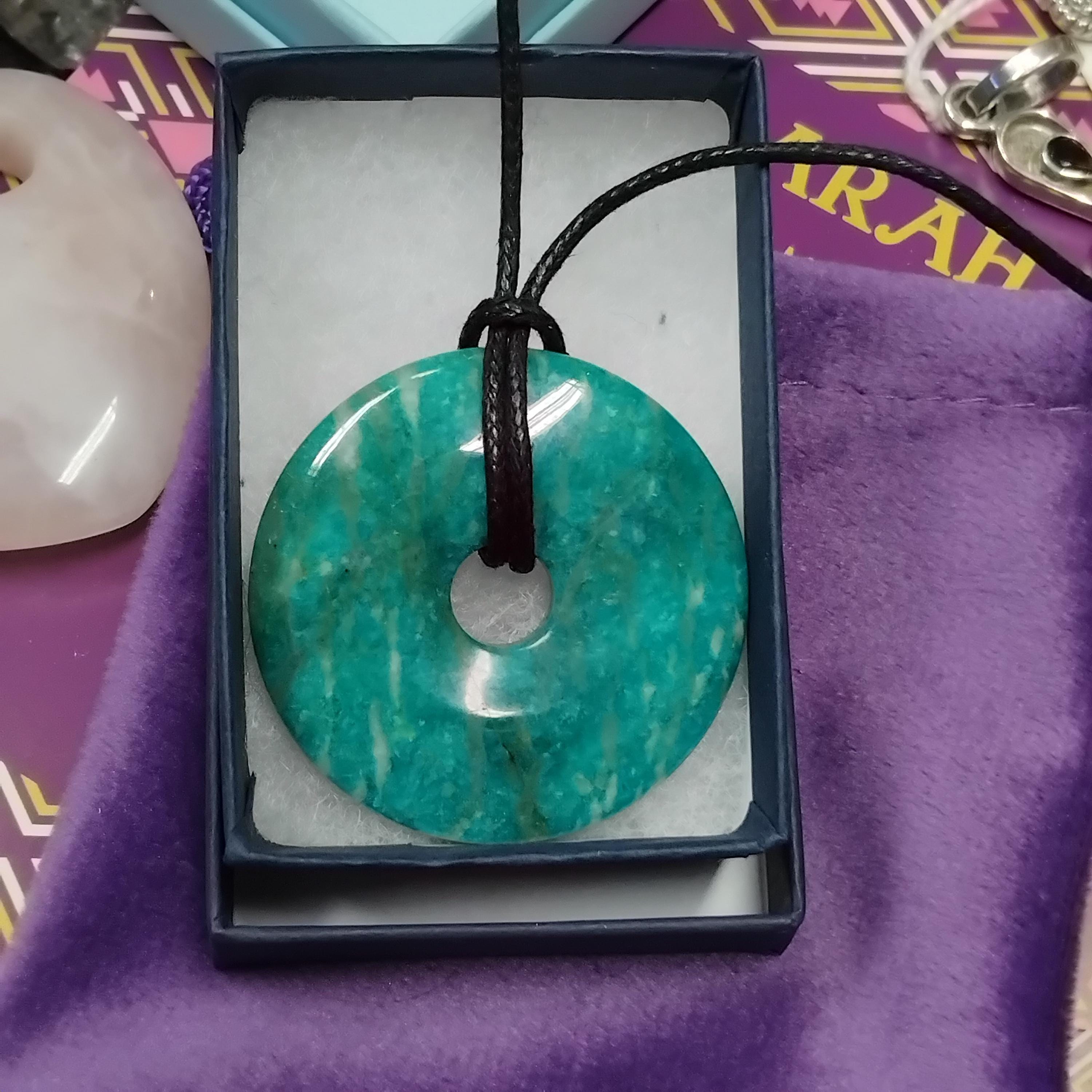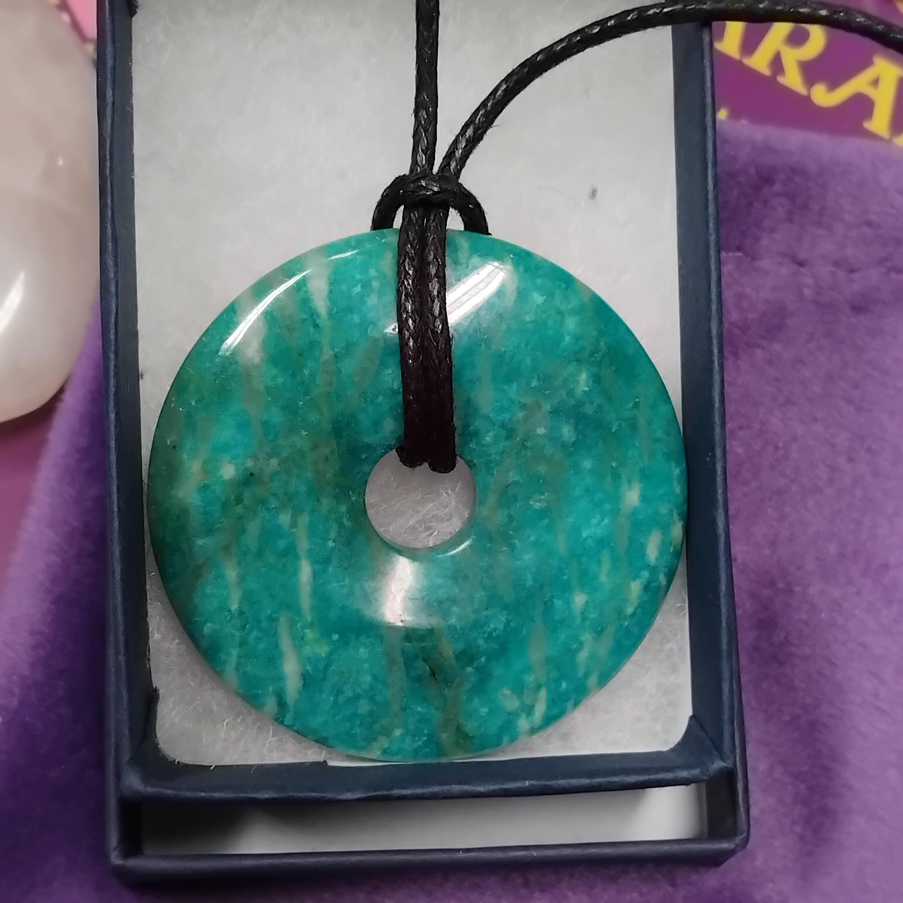 Amazonite-Donut -40 mm- Black Cord-Gift-Yourself-Friends-Family-Loved One- NEW- Gift Box