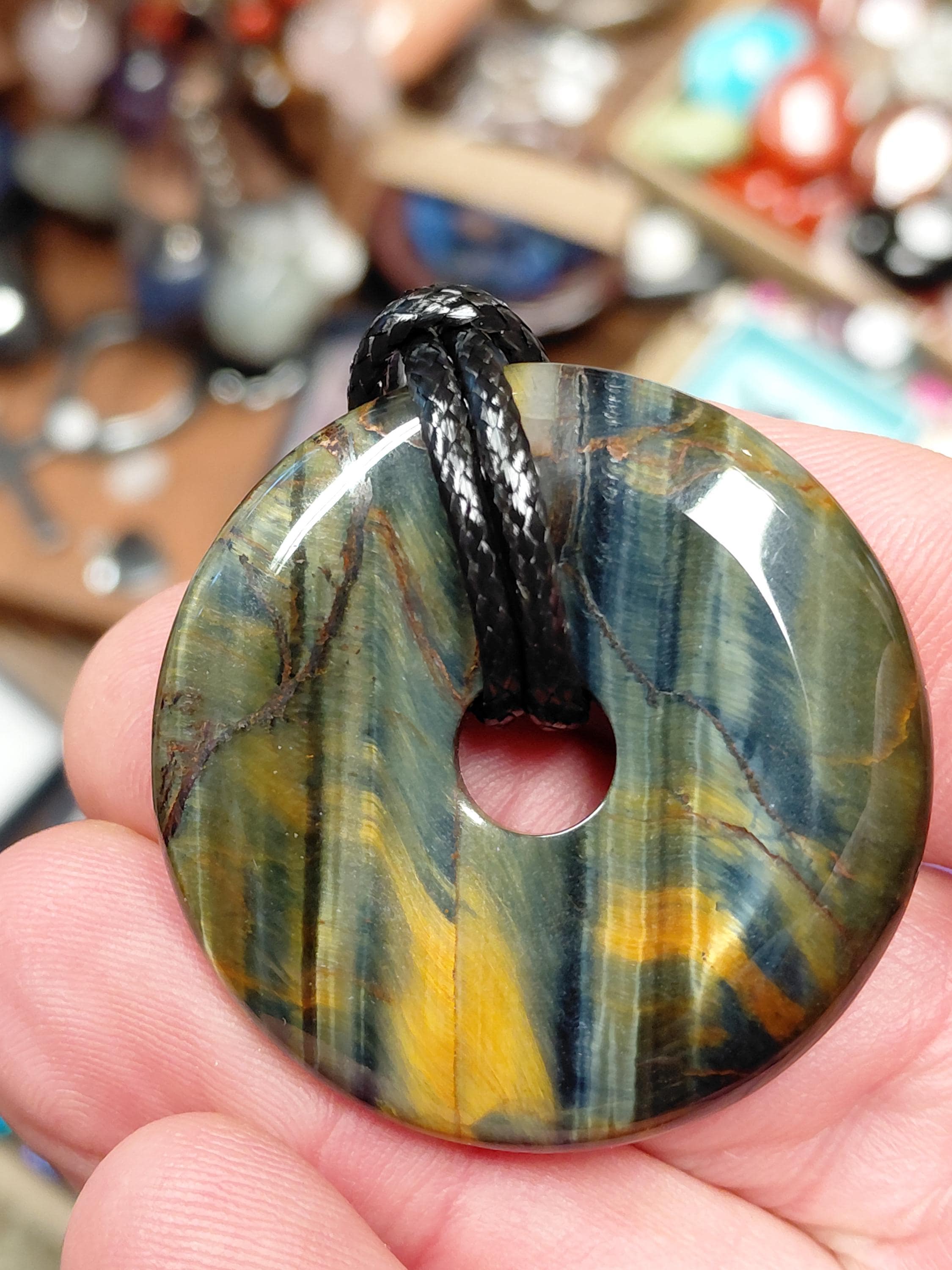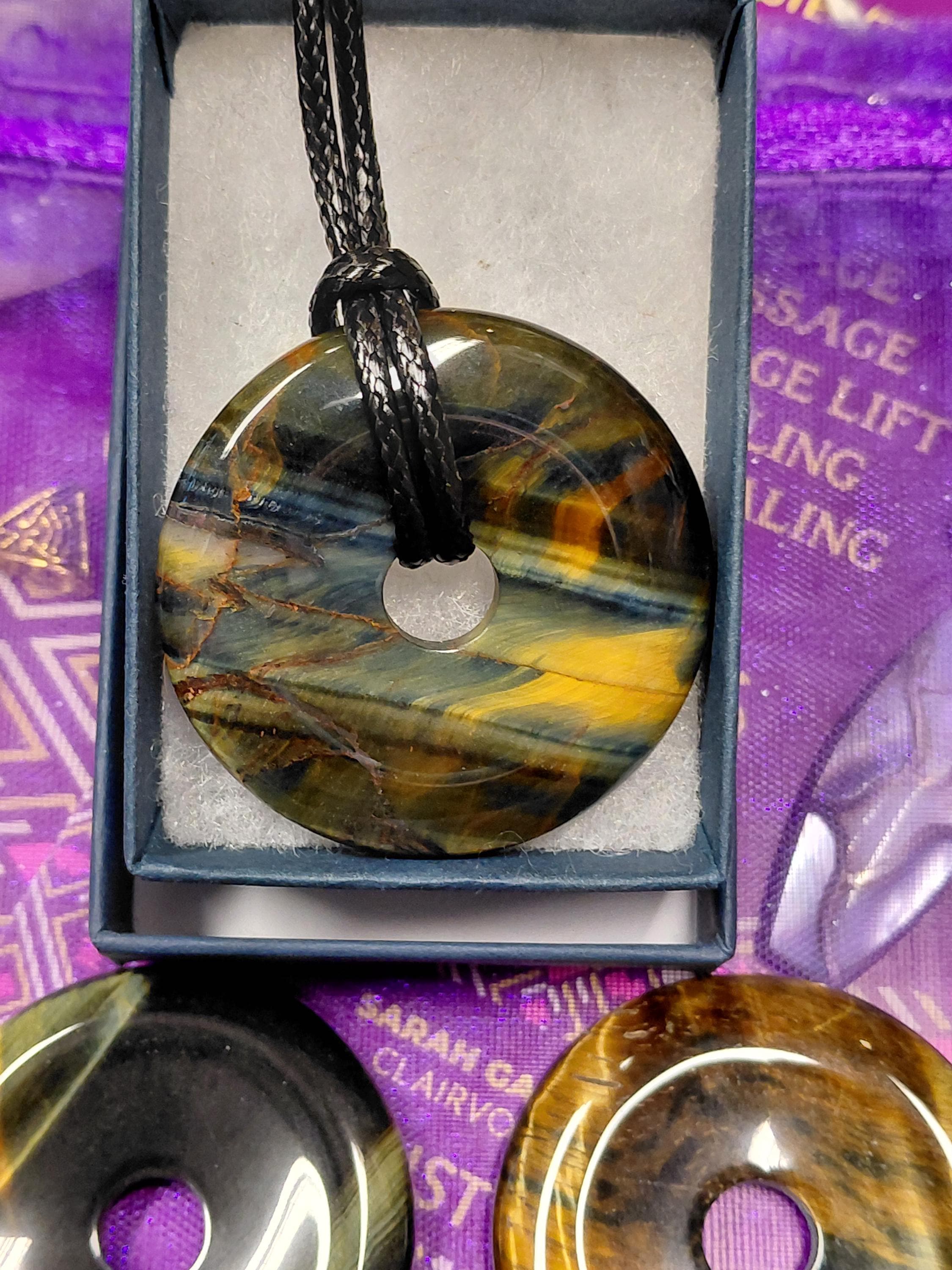 Multi-Tigers Eye 40 mm Pendant- Black Cord- Perfect gift for yourself- a friend or a Loved one