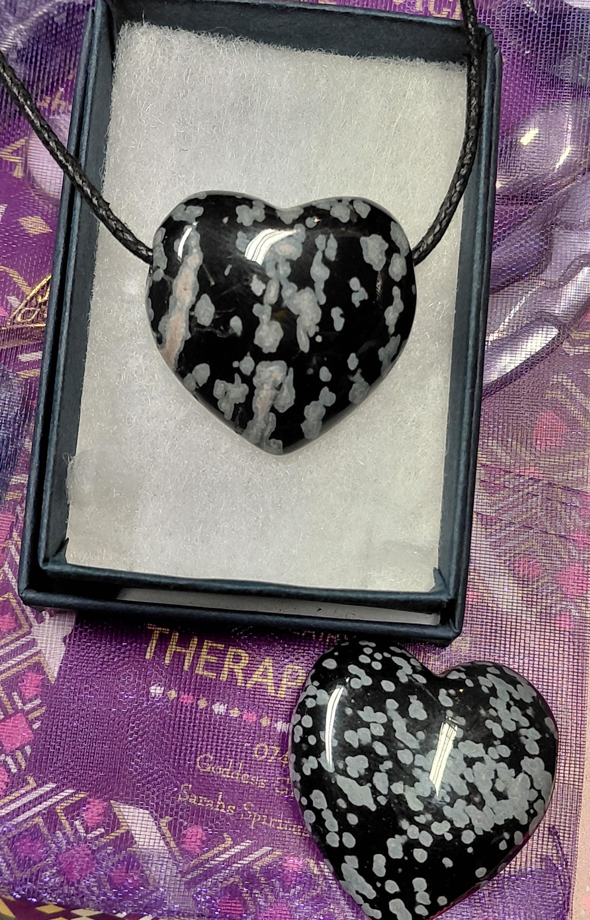 Snowflake Obsidian- Pendant:30 mm Black Cord-Gift Box