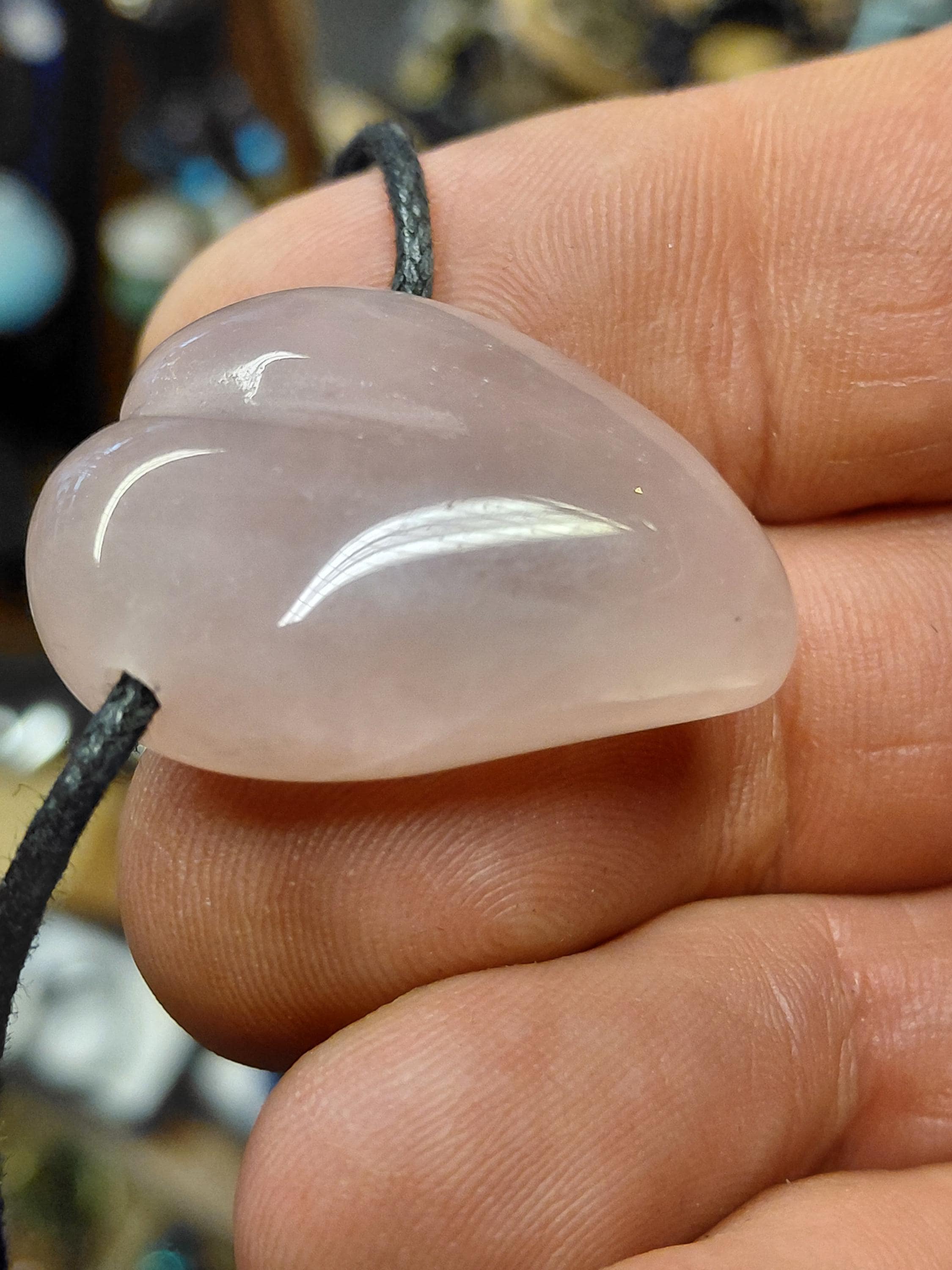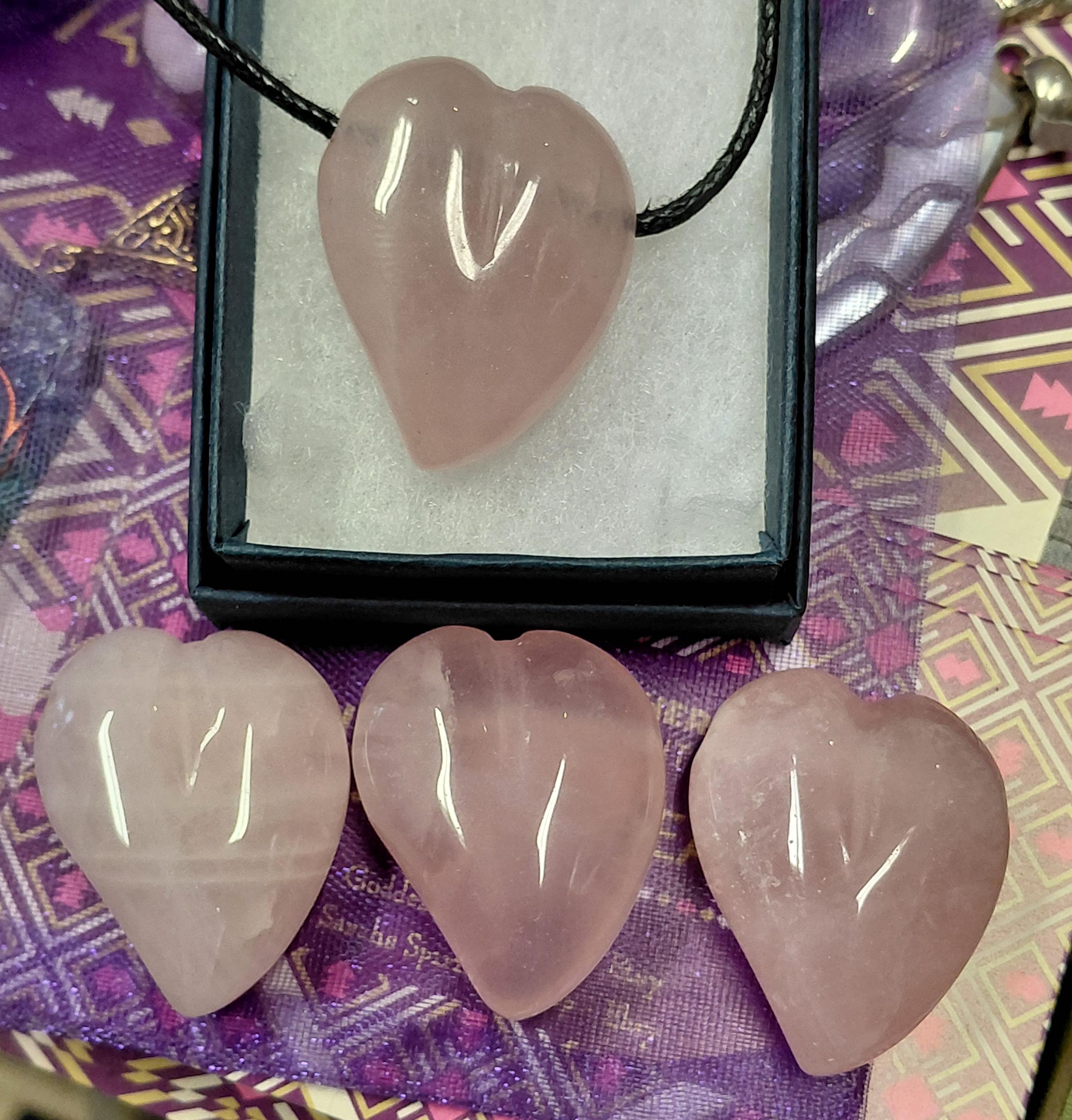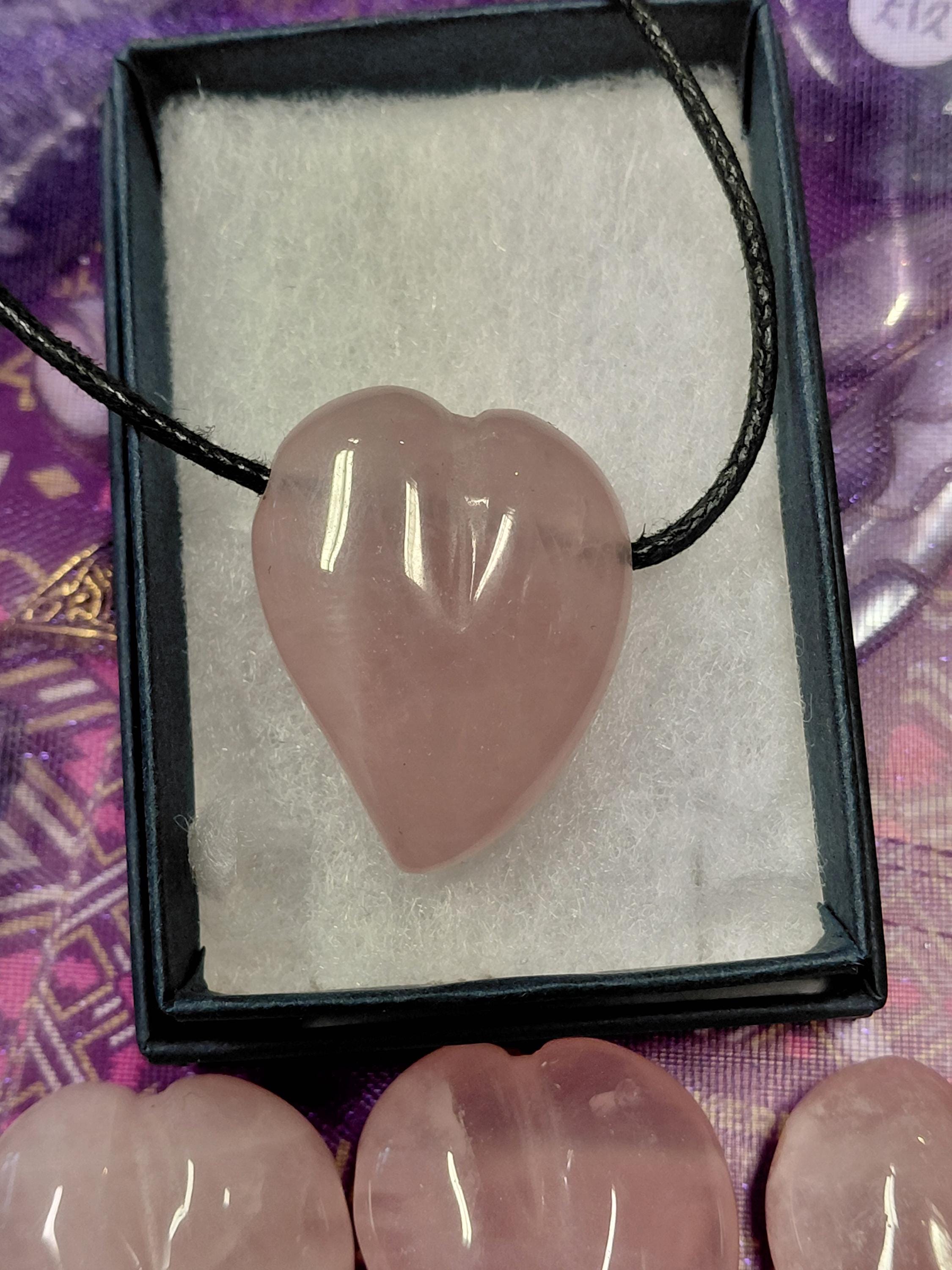 Swing heart Rose Quartz- Pendant: 30 mm Black Cord-Gift Box