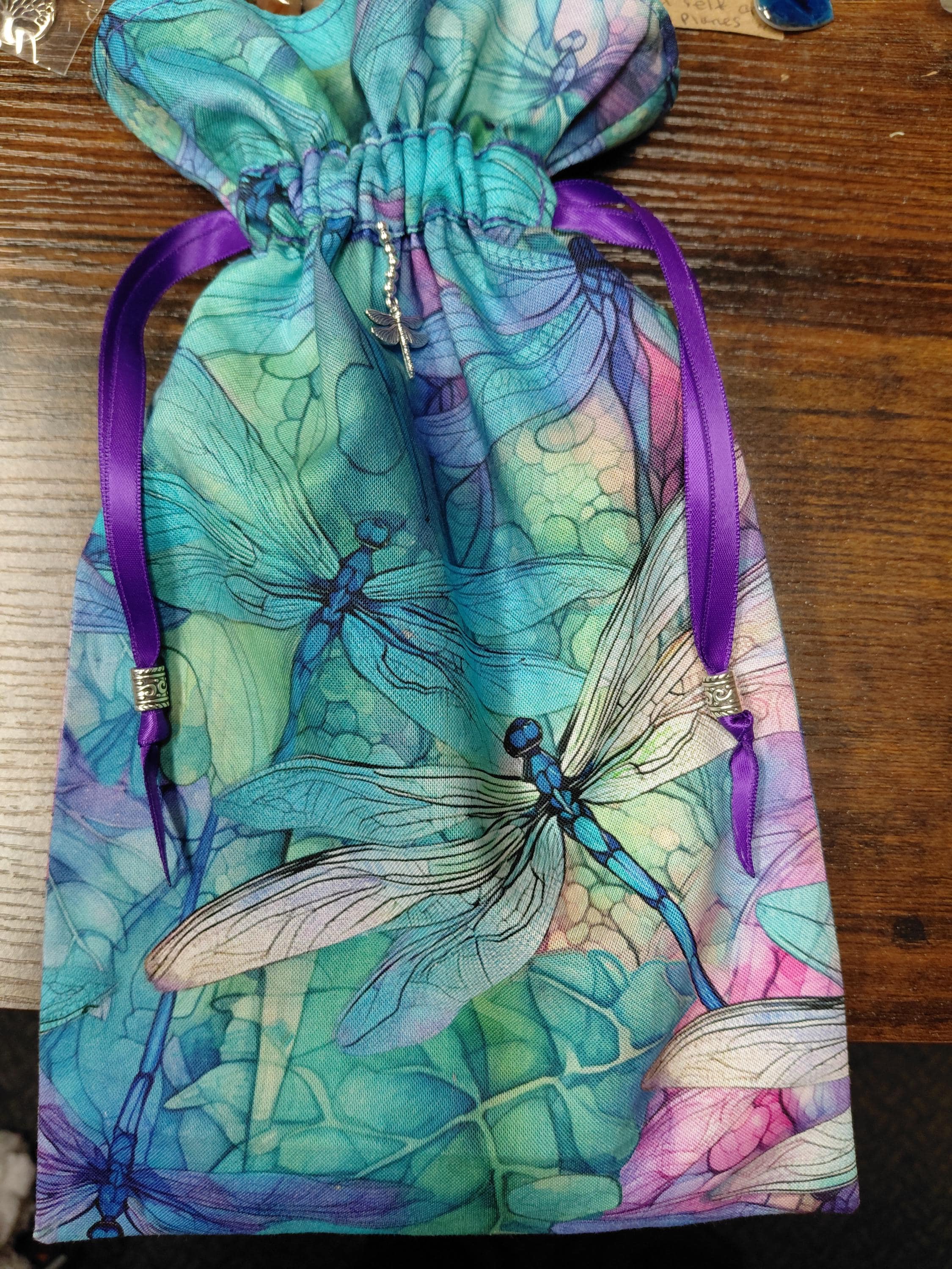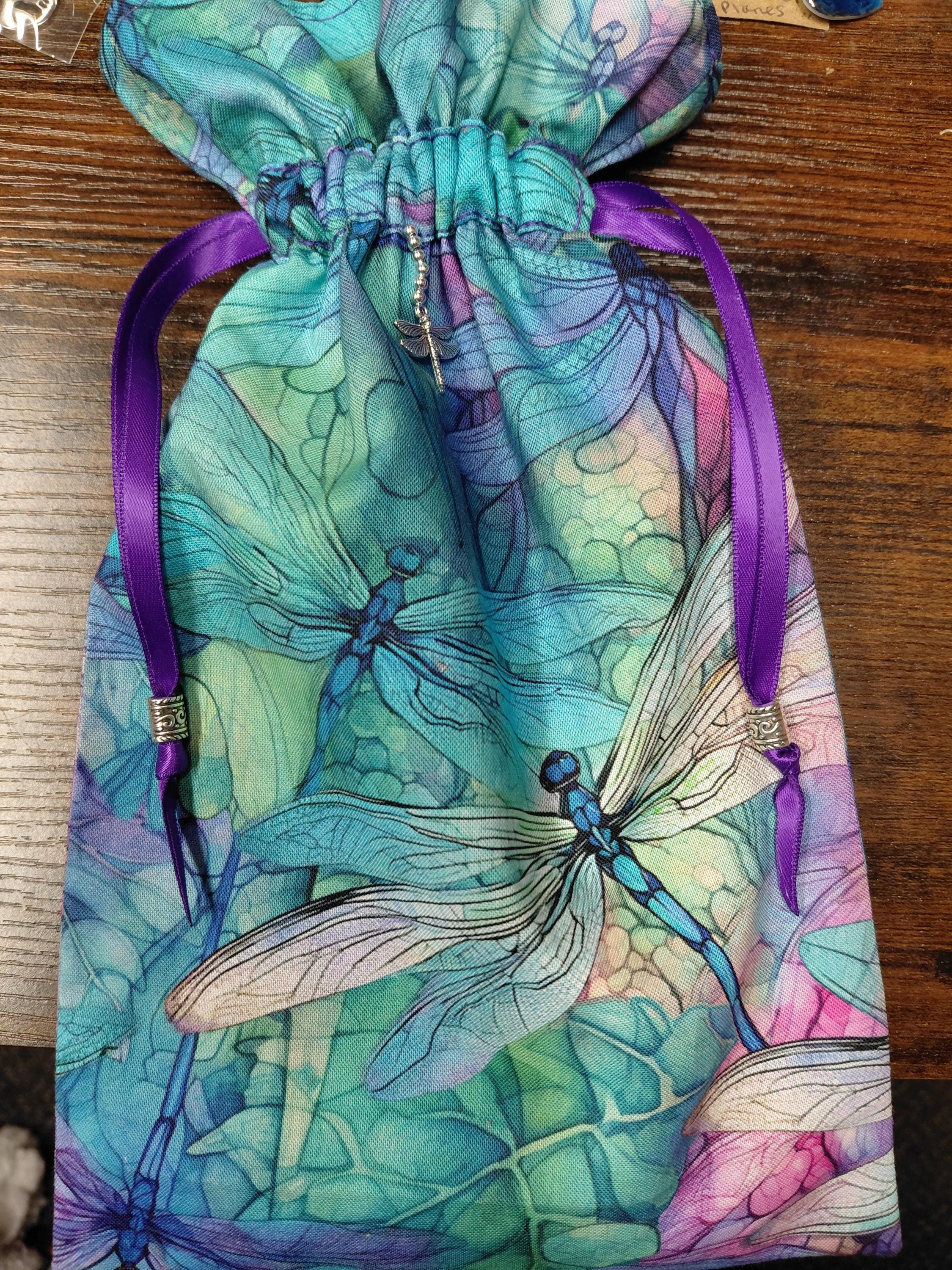 Deluxe Tarot - oracle cards EXTRA LARGE-pouch Bag, lined pouch, handmade -Dragonfly- Tibetan Silver Beads- New Design