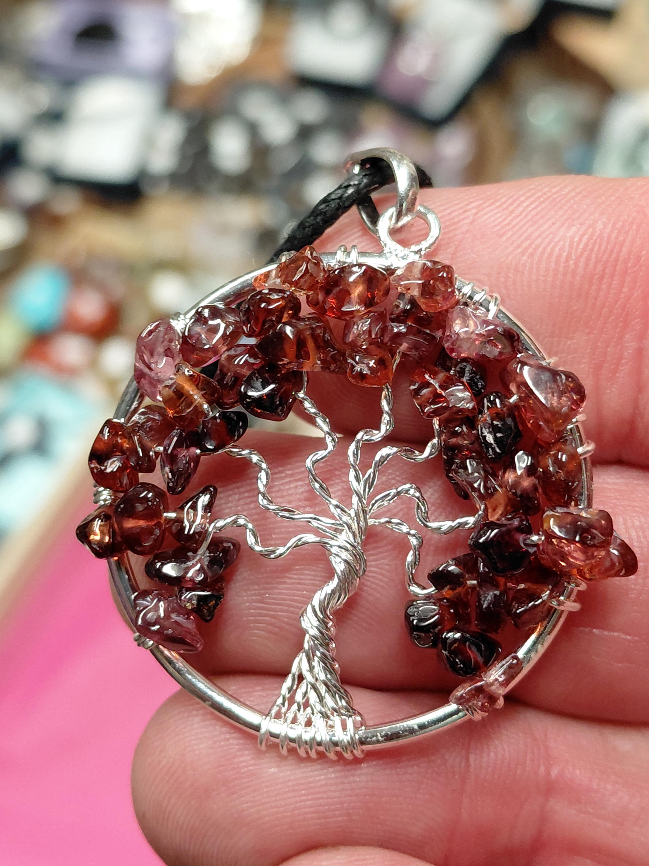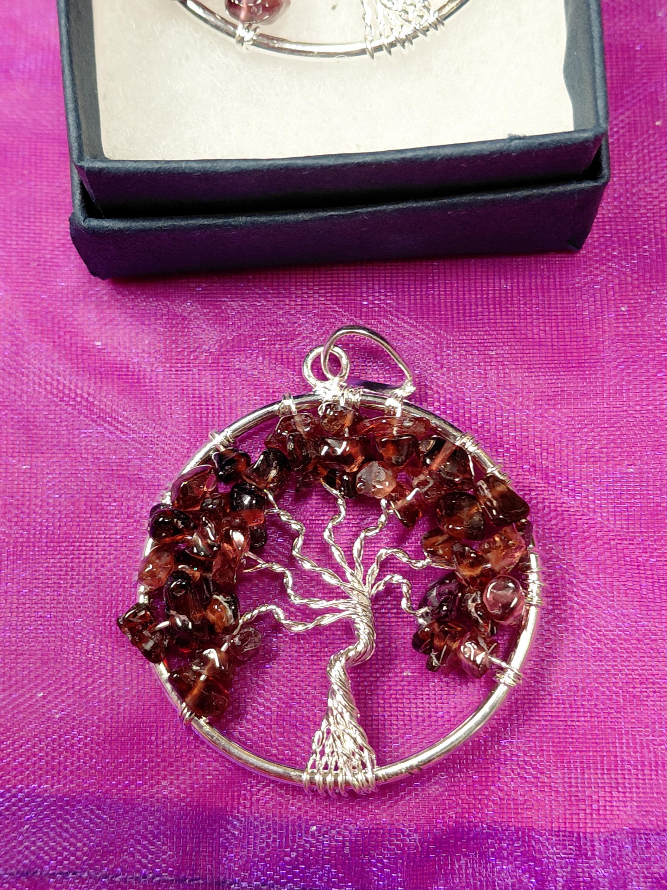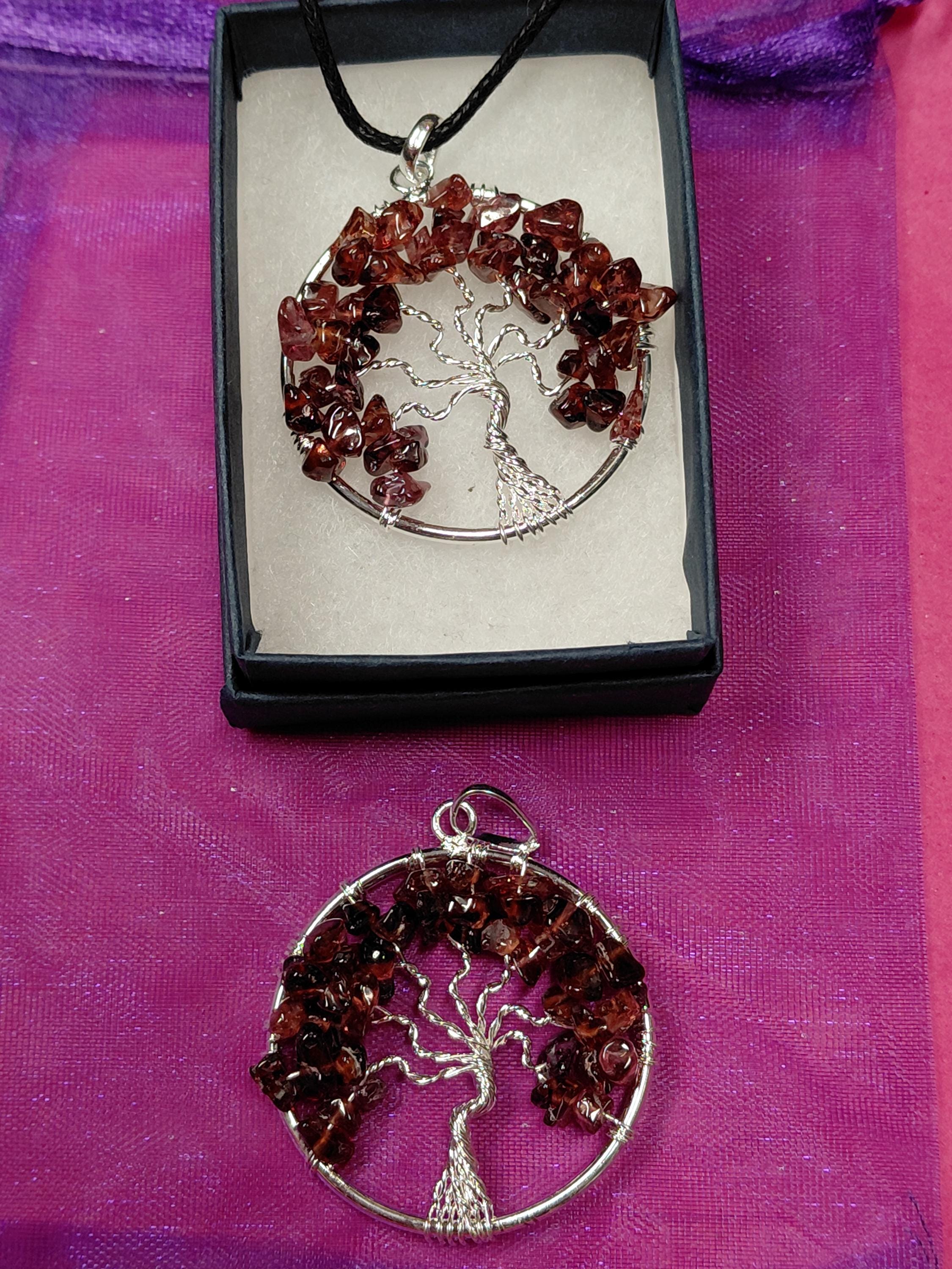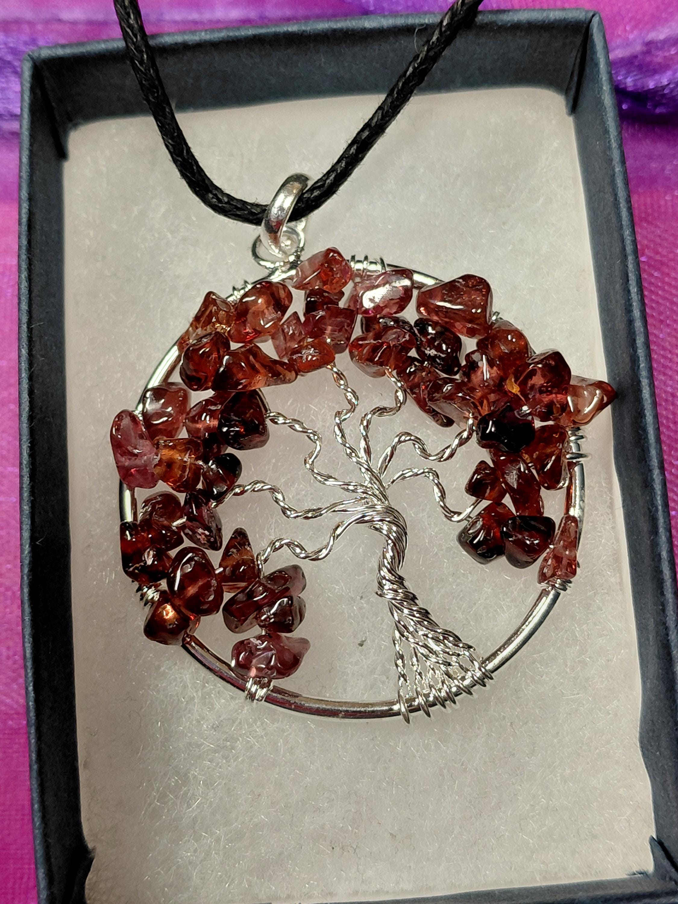 Garnet-Pendant- Silver Plated-Black Cord Aura cleansing -Protection-concentration-Gift for Yourself- Friend-Loved One-Gift Box