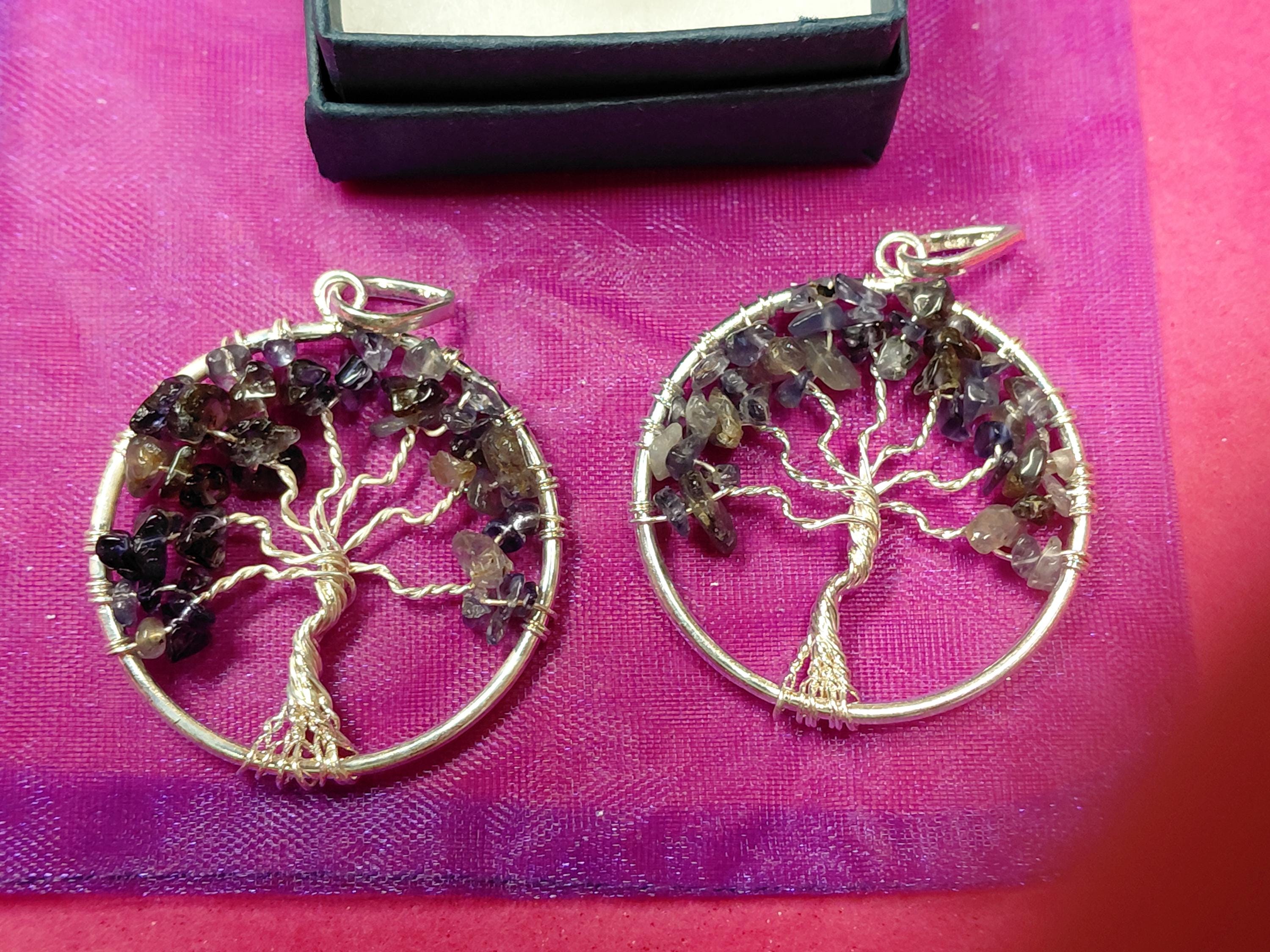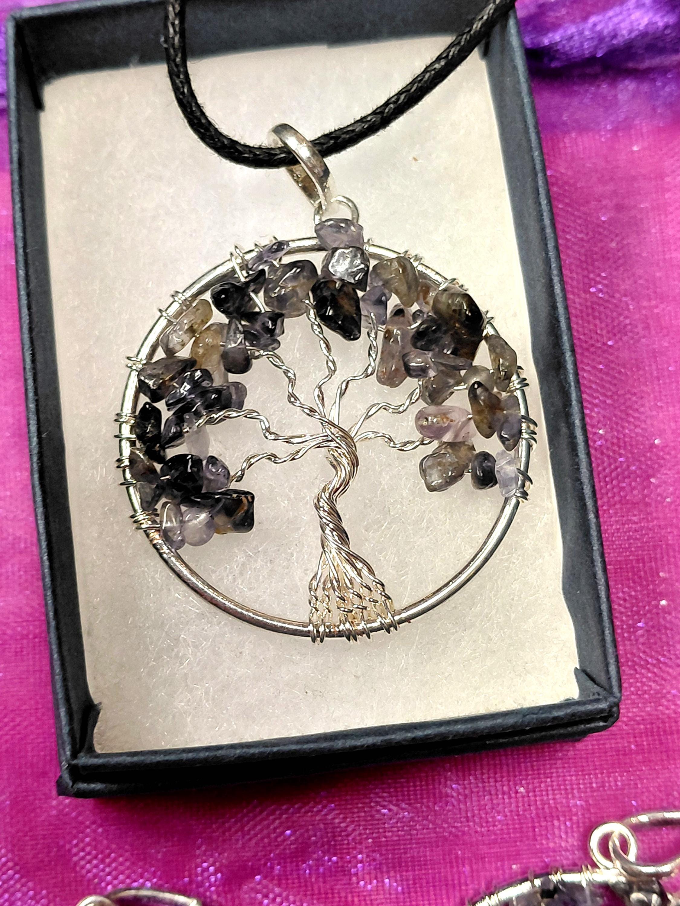 Iolite-Pendant- Silver Plated-Black Cord Aura cleansing -Protection-concentration-Gift for Yourself- Friend-Loved One-Gift Box