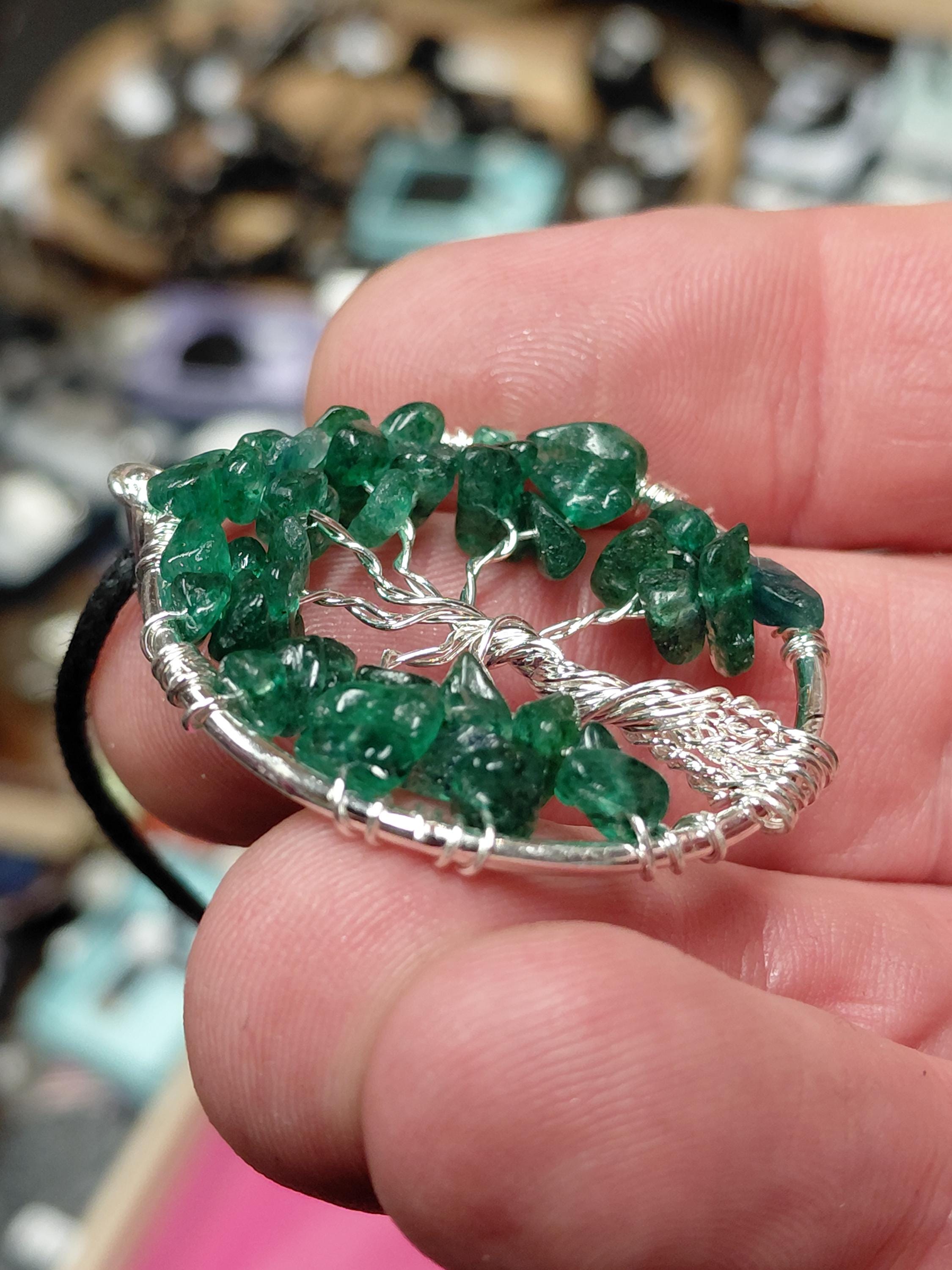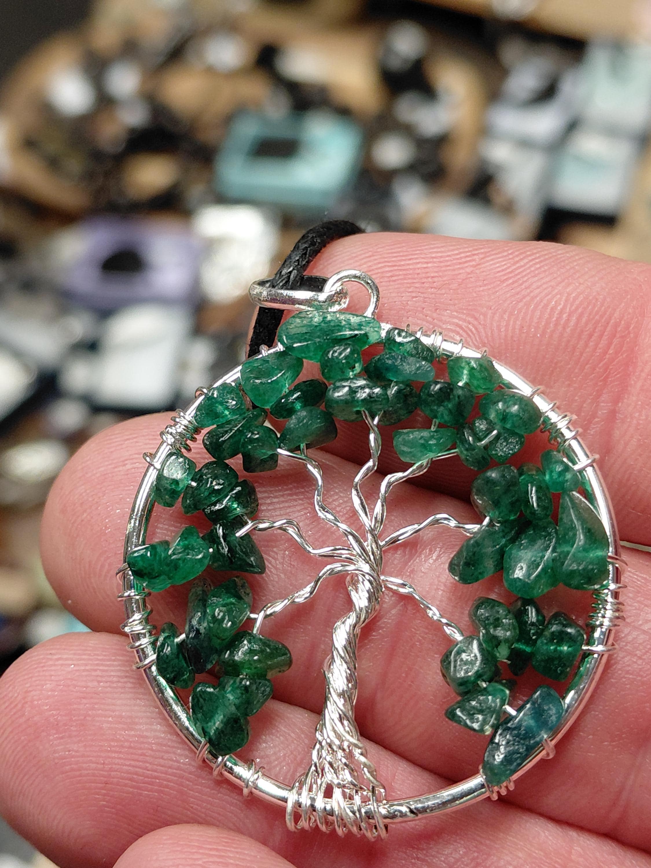 Aventurine-Pendant- Silver Plated-Black Cord Aura cleansing -Protection-concentration-Gift for Yourself- Friend-Loved One-Gift Box