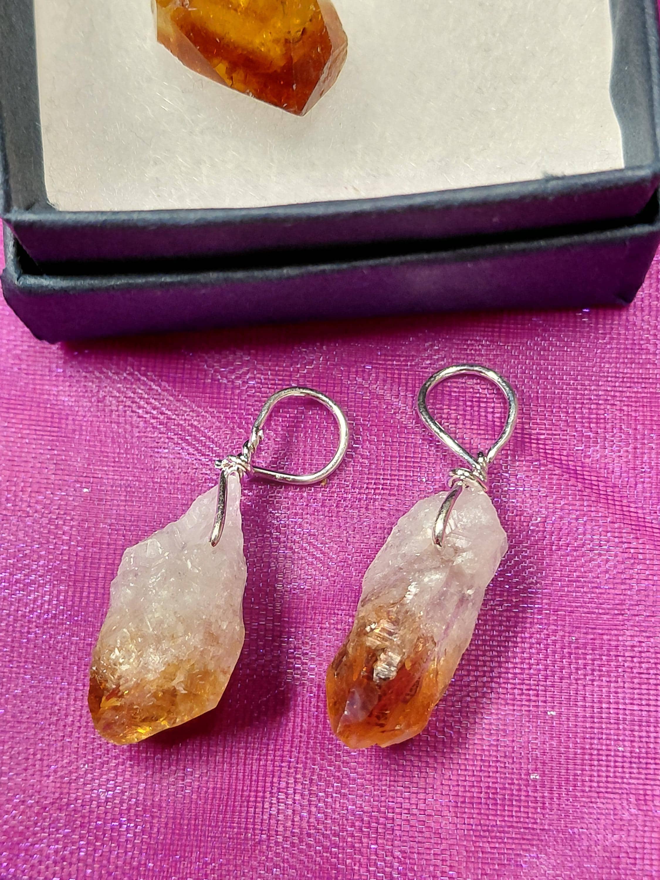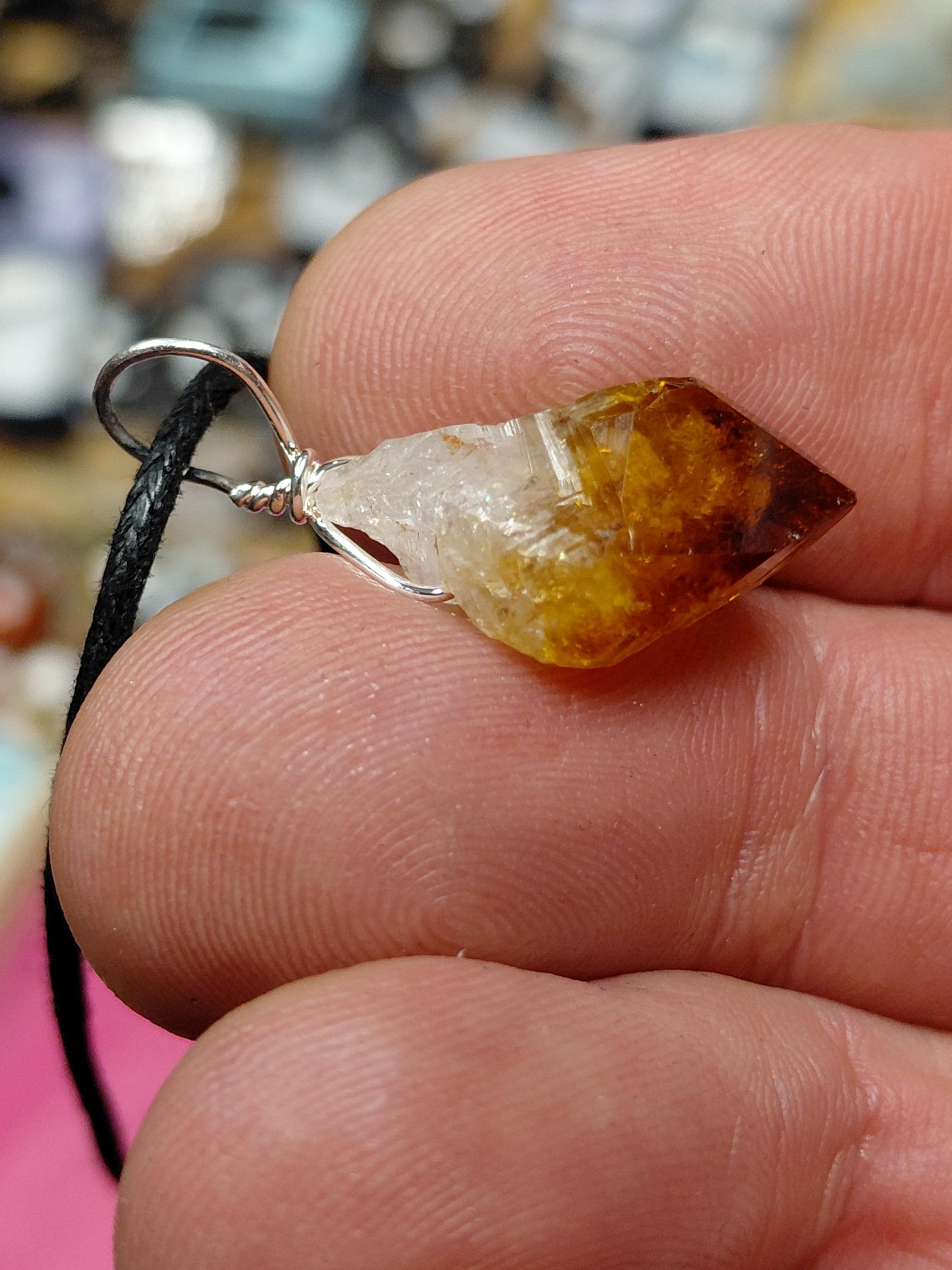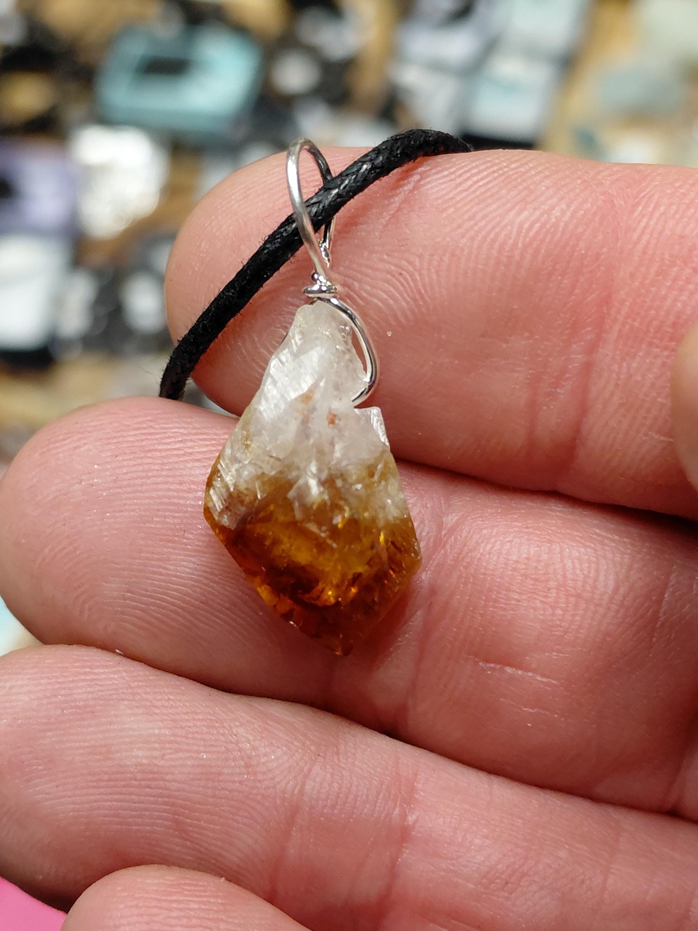 Citrine-Point-HEAT TREATED-Pendant- Silver Plated-Black Cord -Gift for Yourself- Friend-Loved One-Gift Box