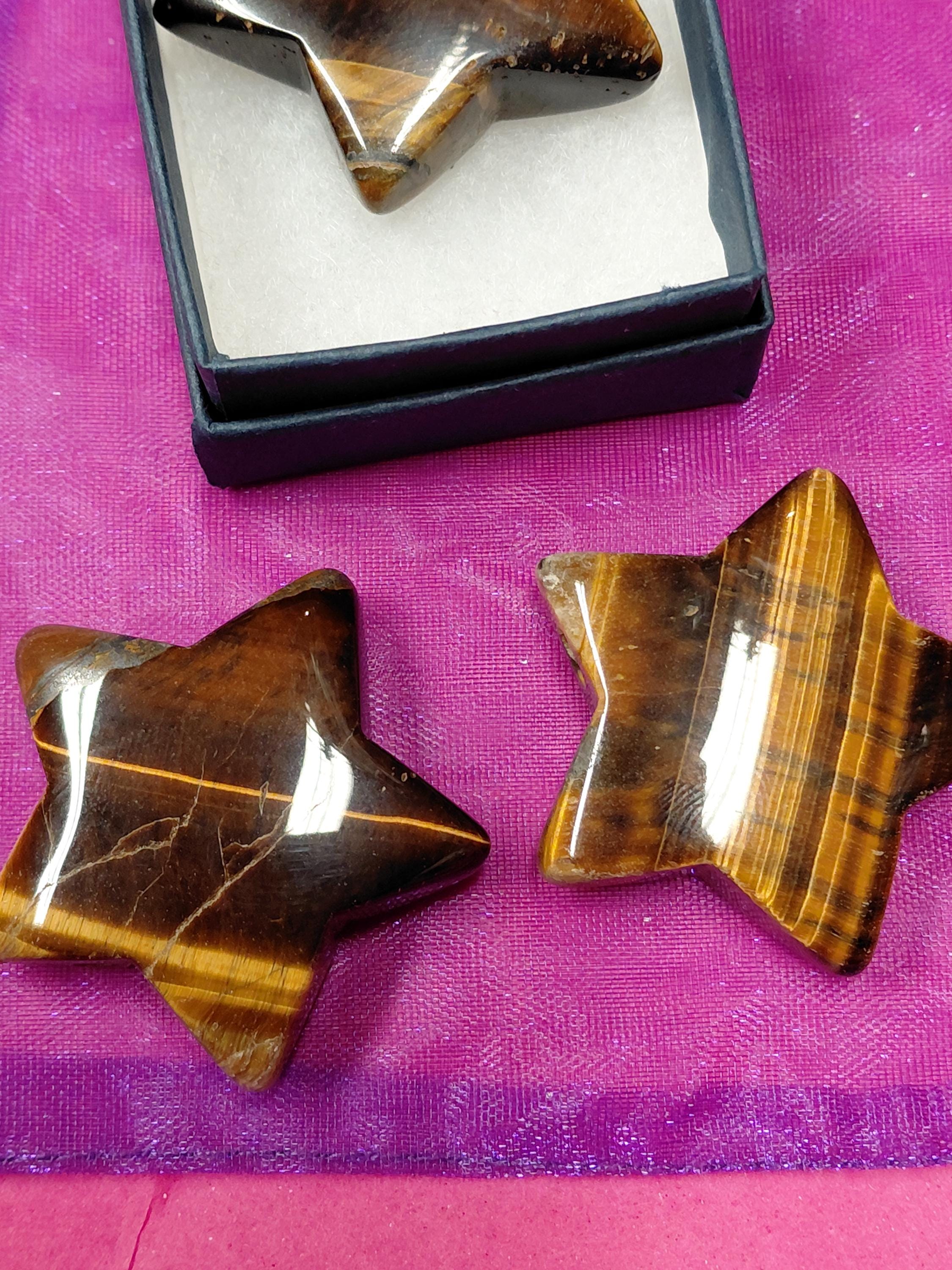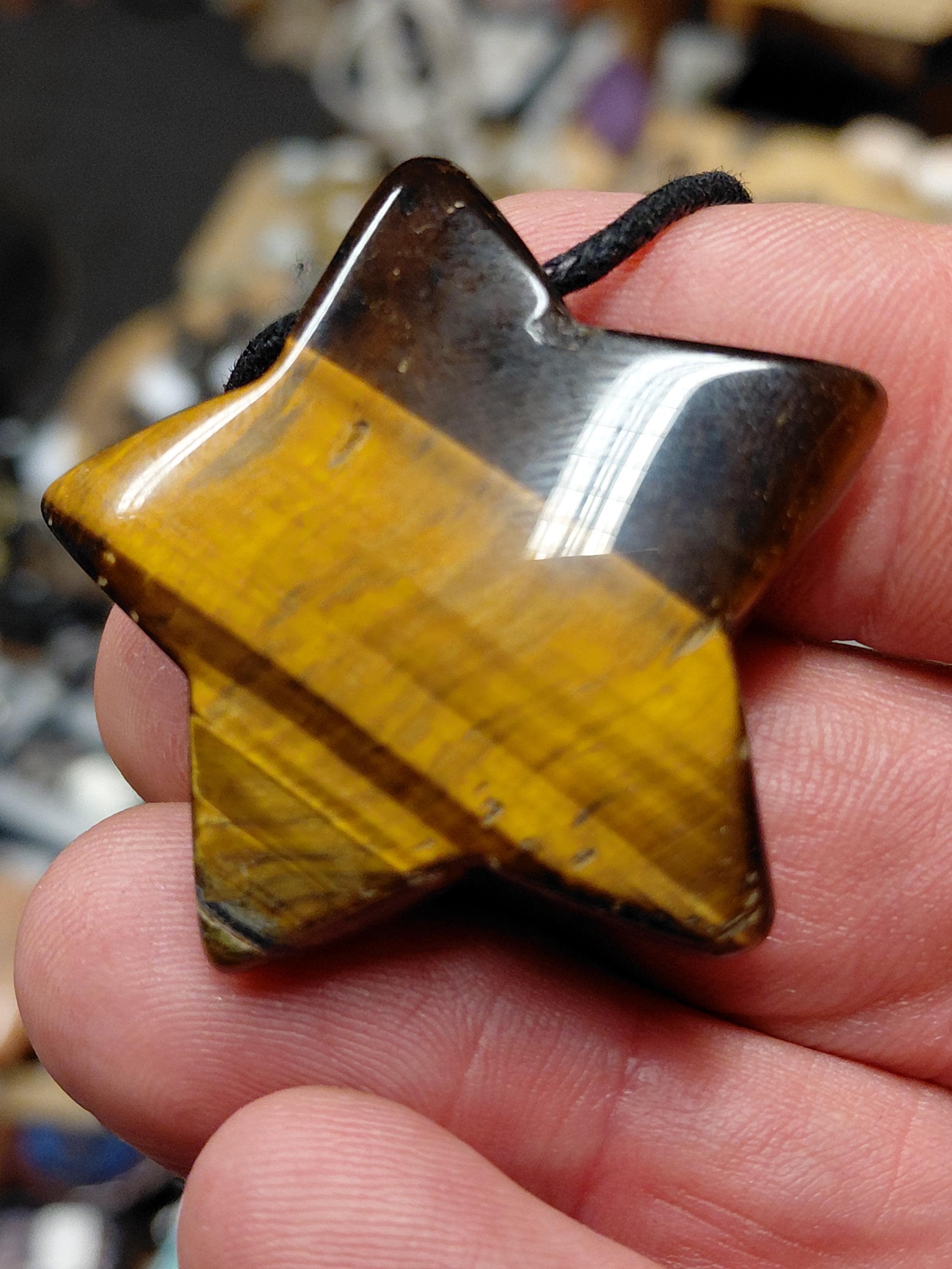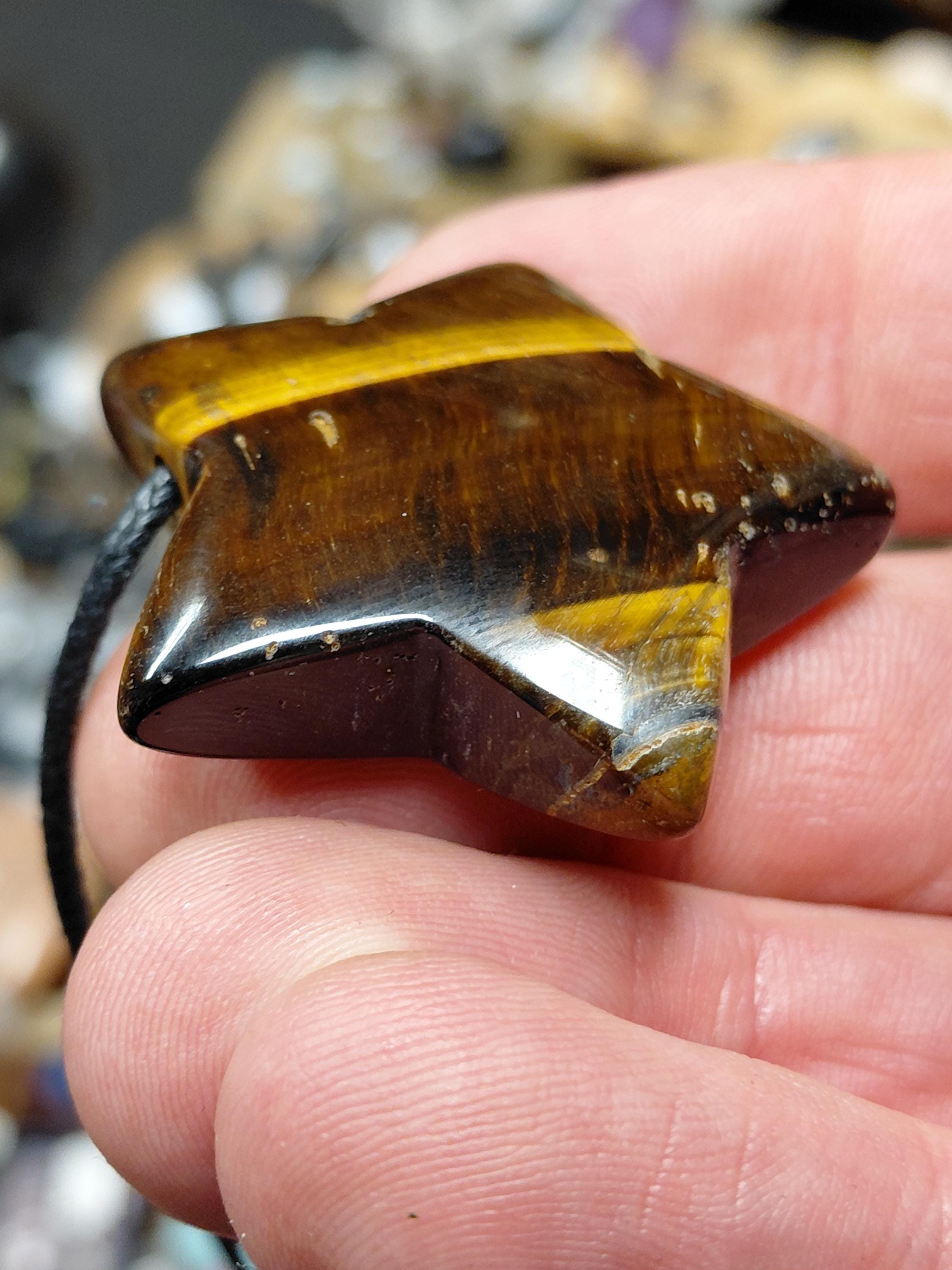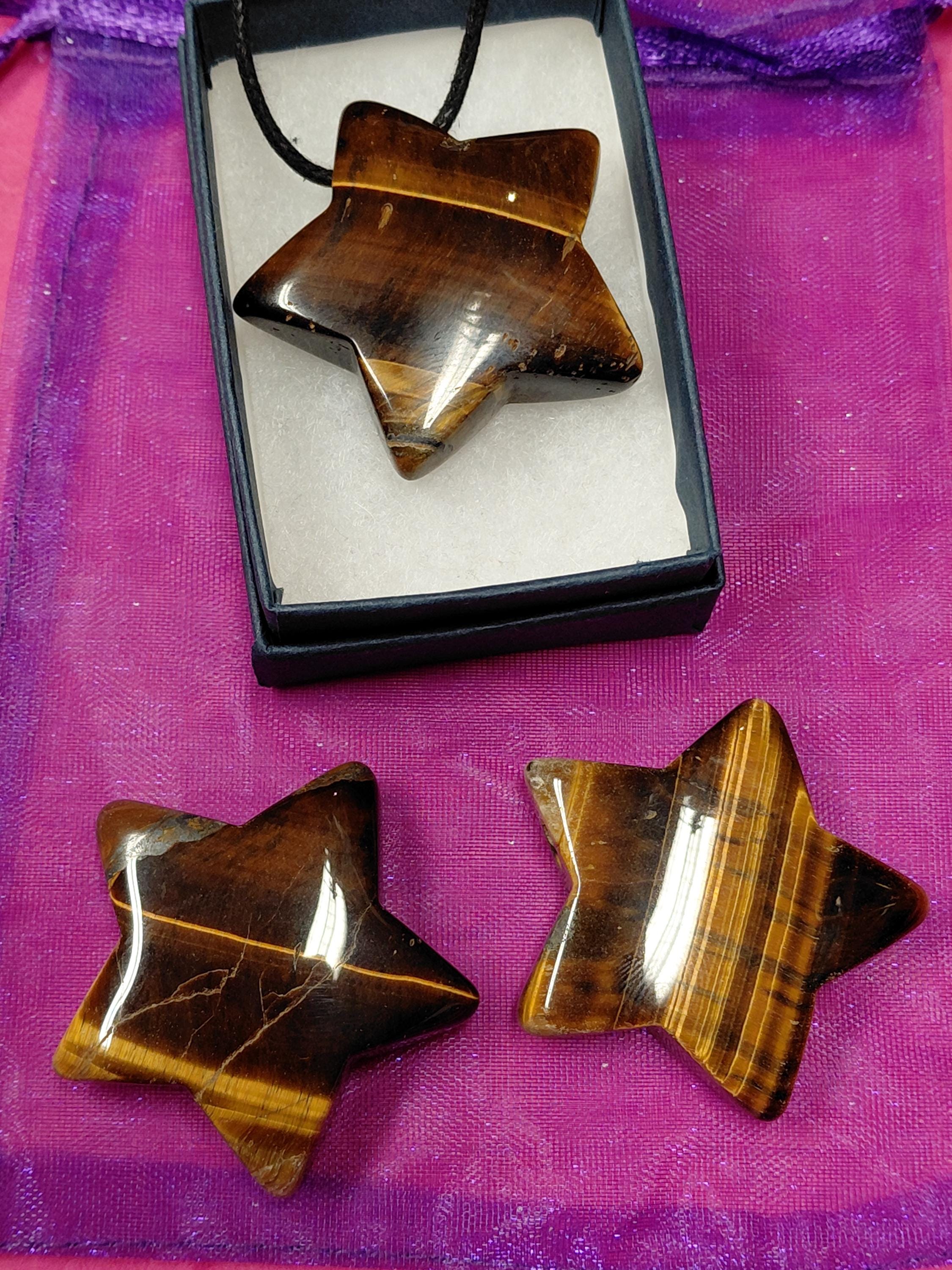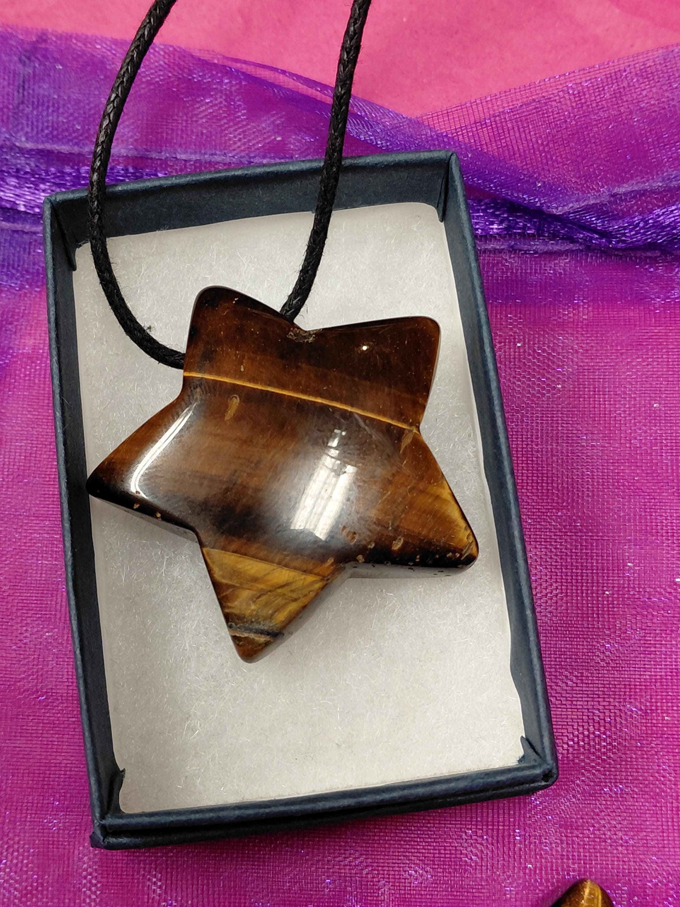 Tigers Eye- Puff Star -Pendant- Black Cord - Gift-Yourself- Friends-Family-Loved One-Gift Box