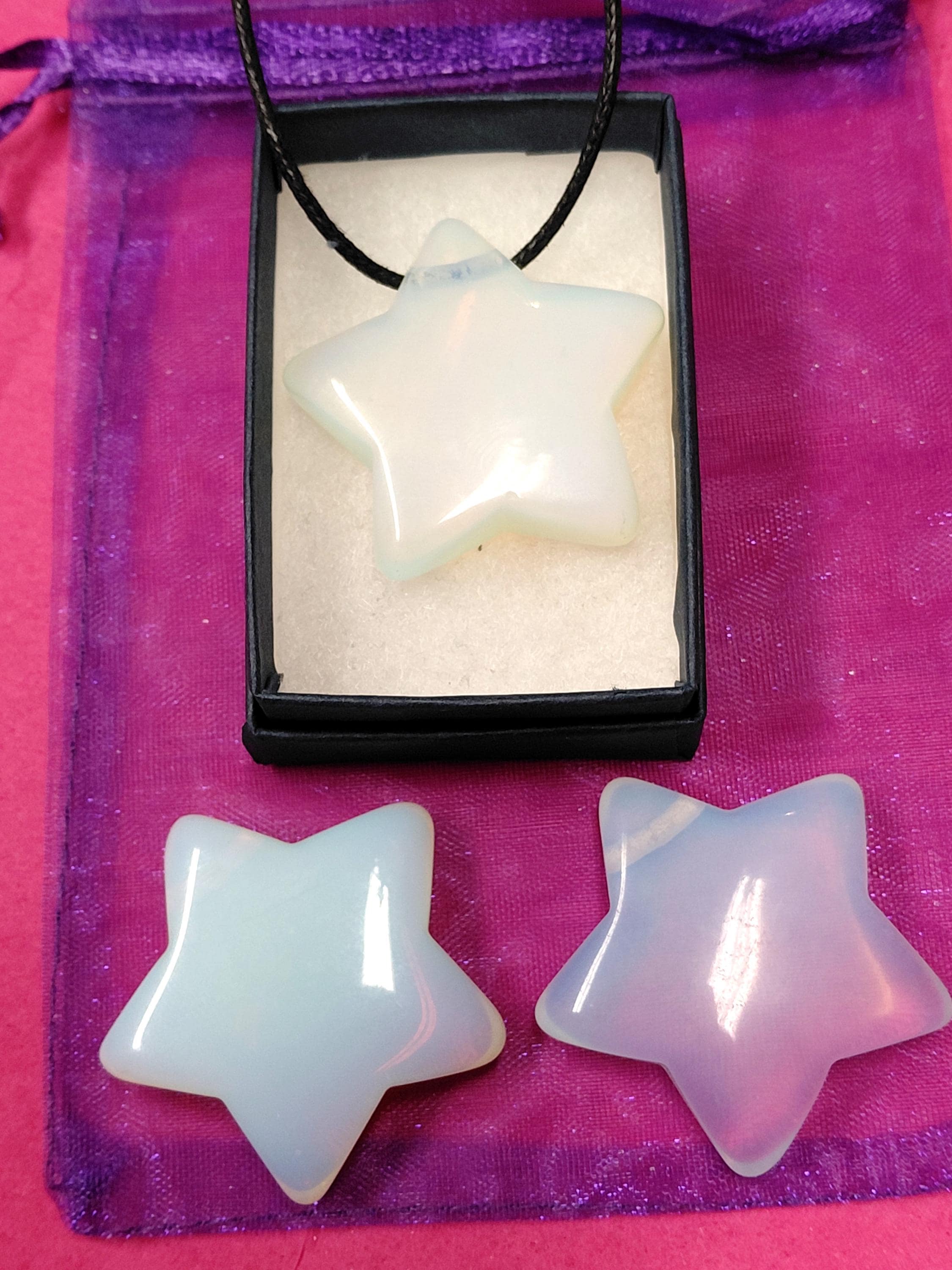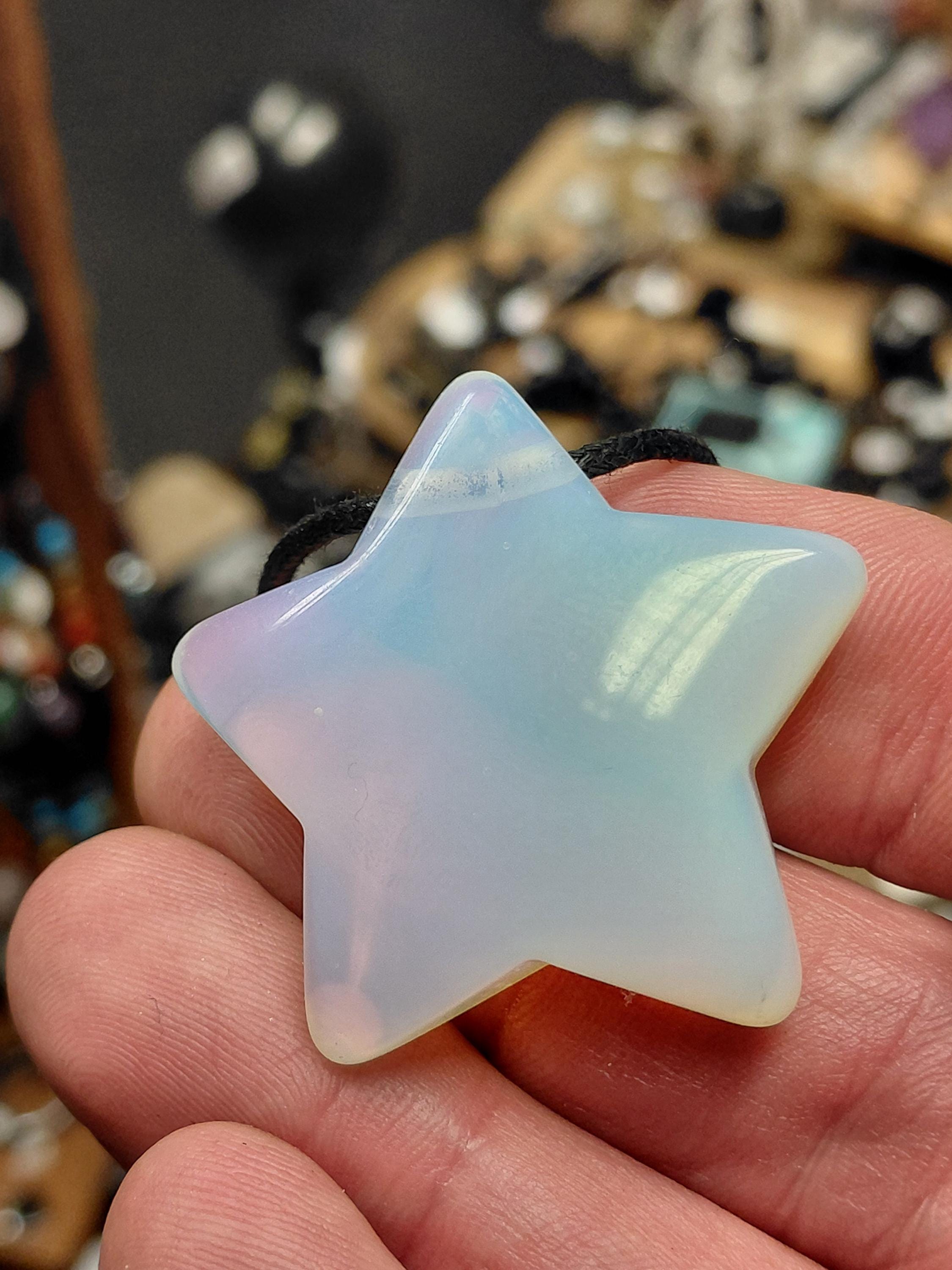 Opalite- Puff Star -Pendant- Black Cord - Gift-Yourself- Friends-Family-Loved One-Gift Box