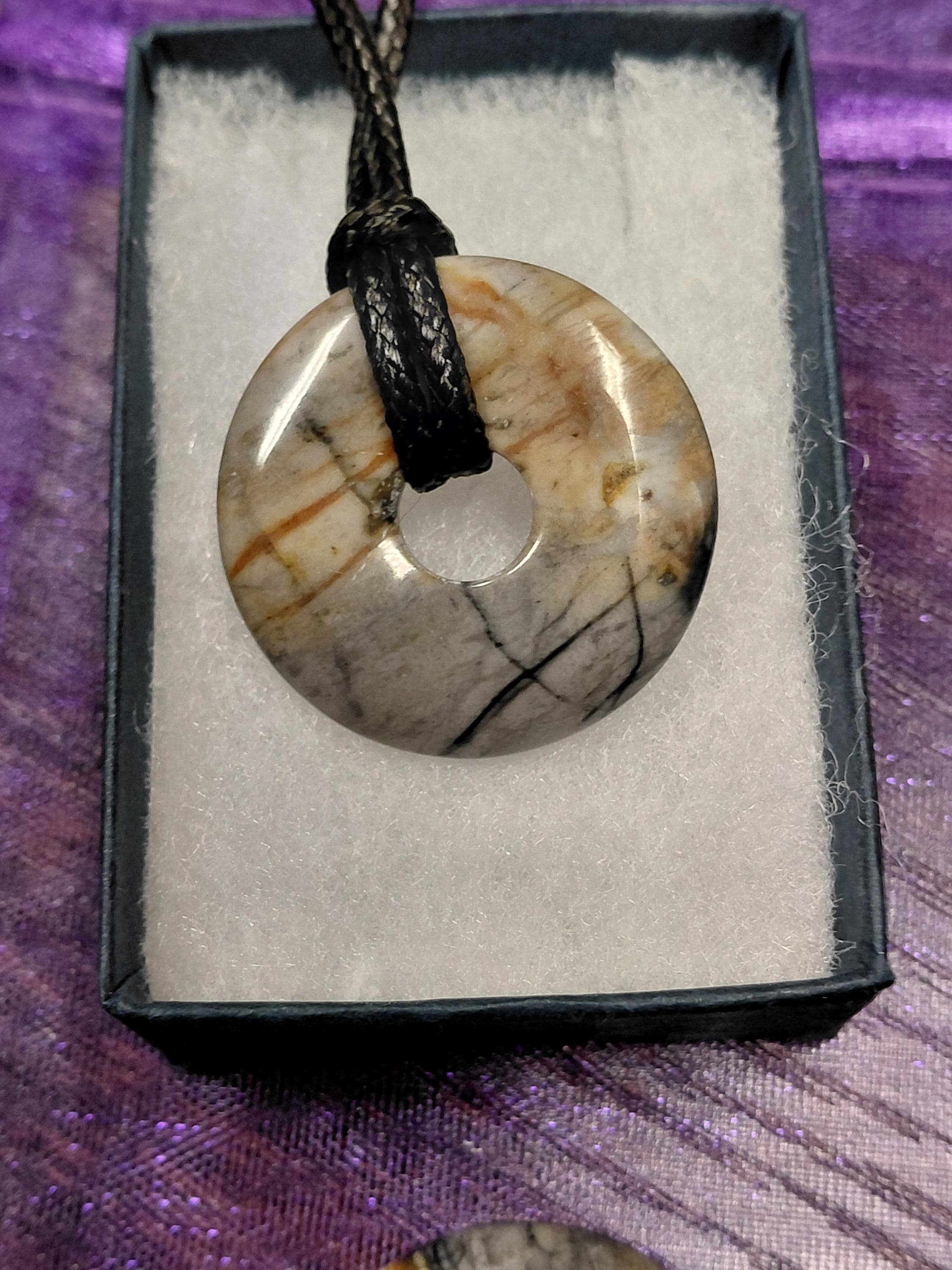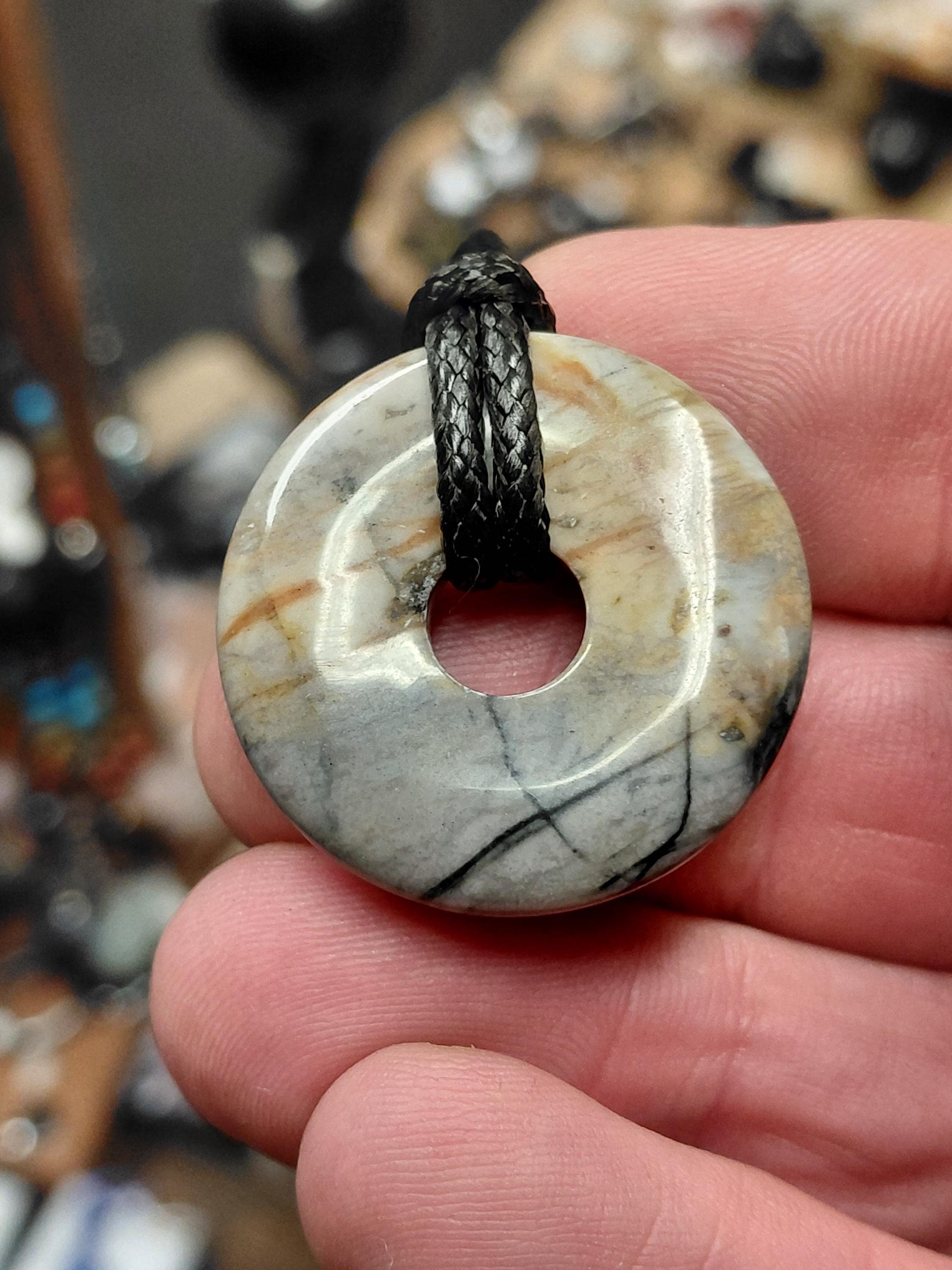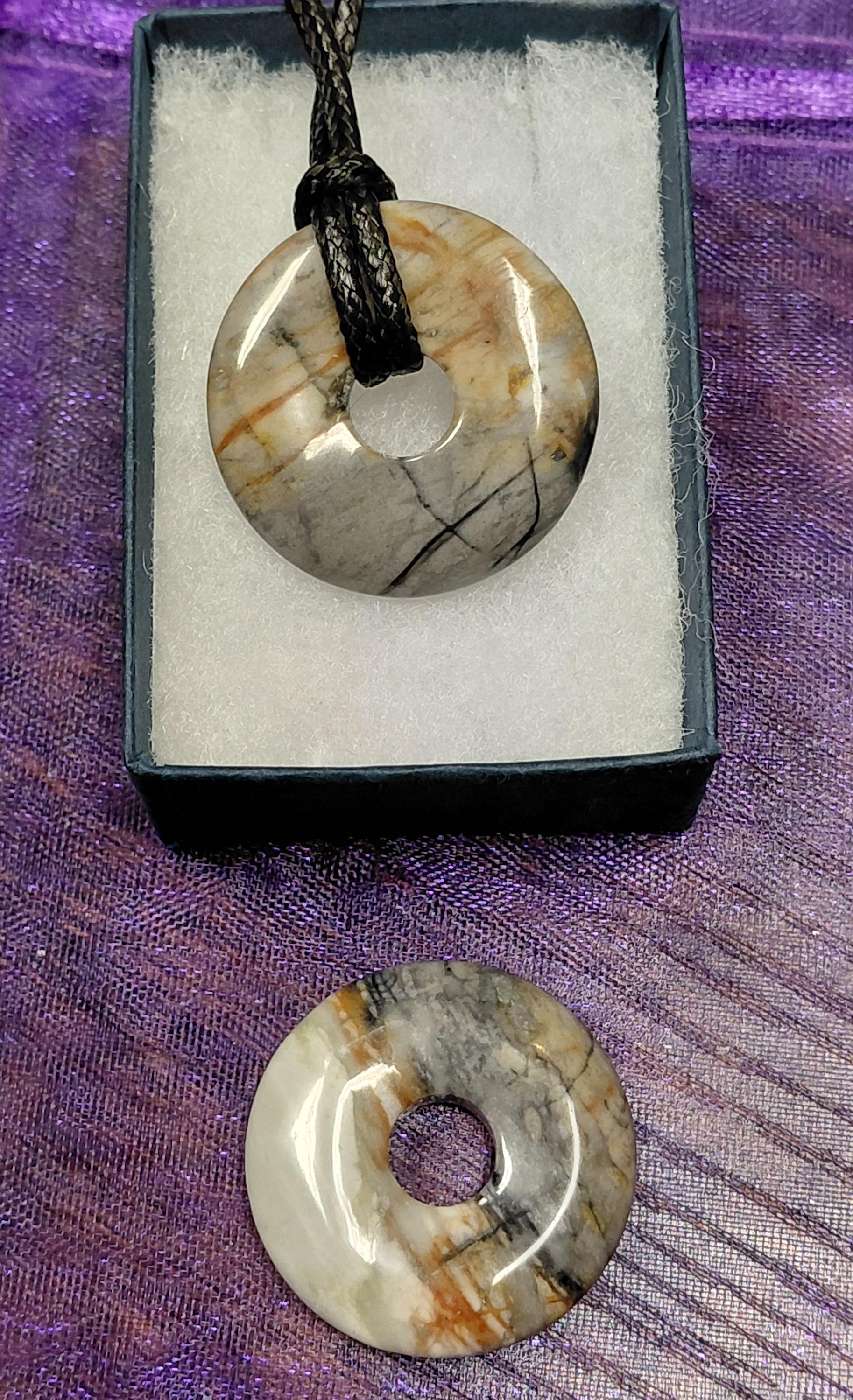 Donut Picasso Marble- 30 mm Pendant with Black Cord