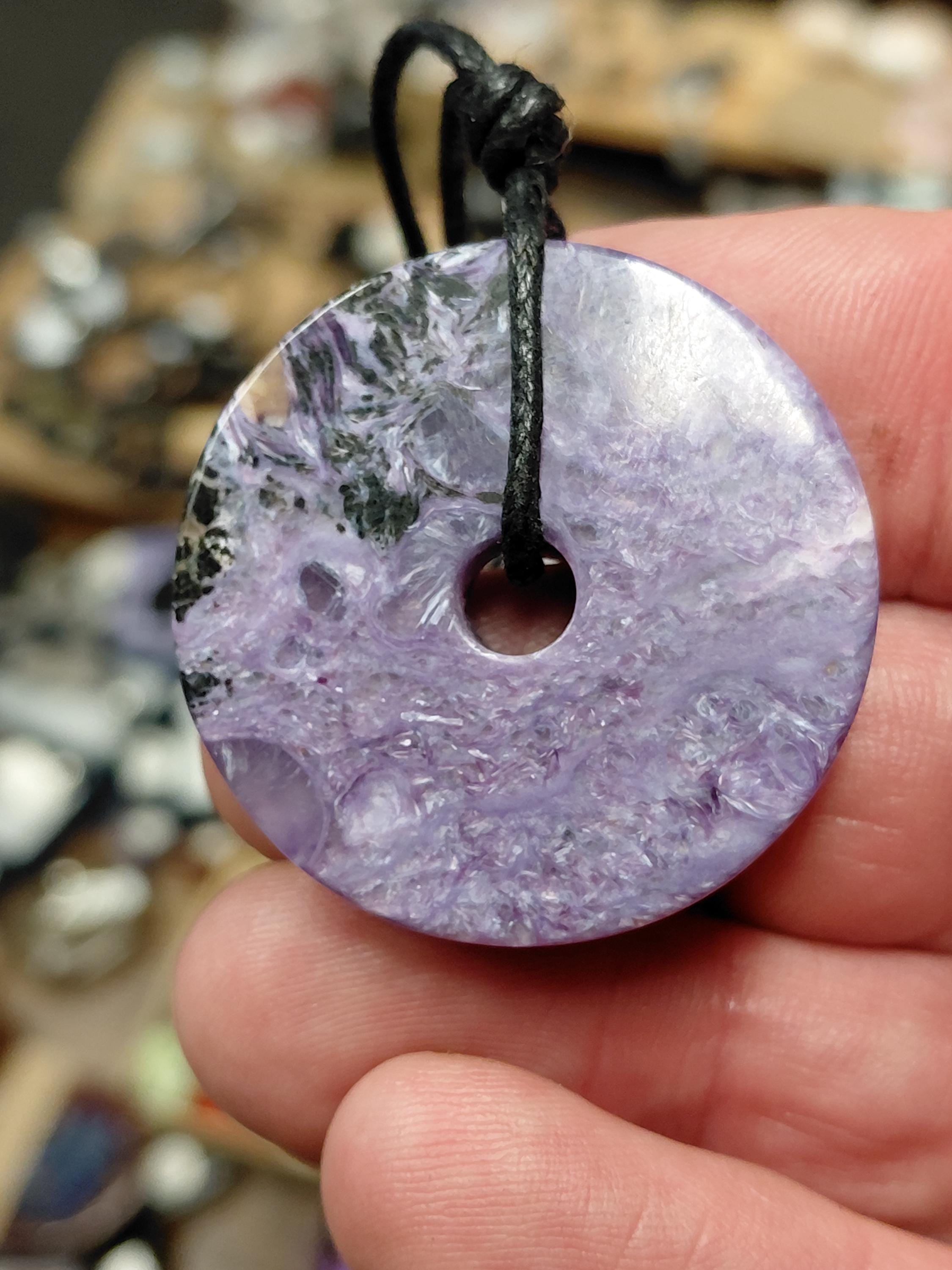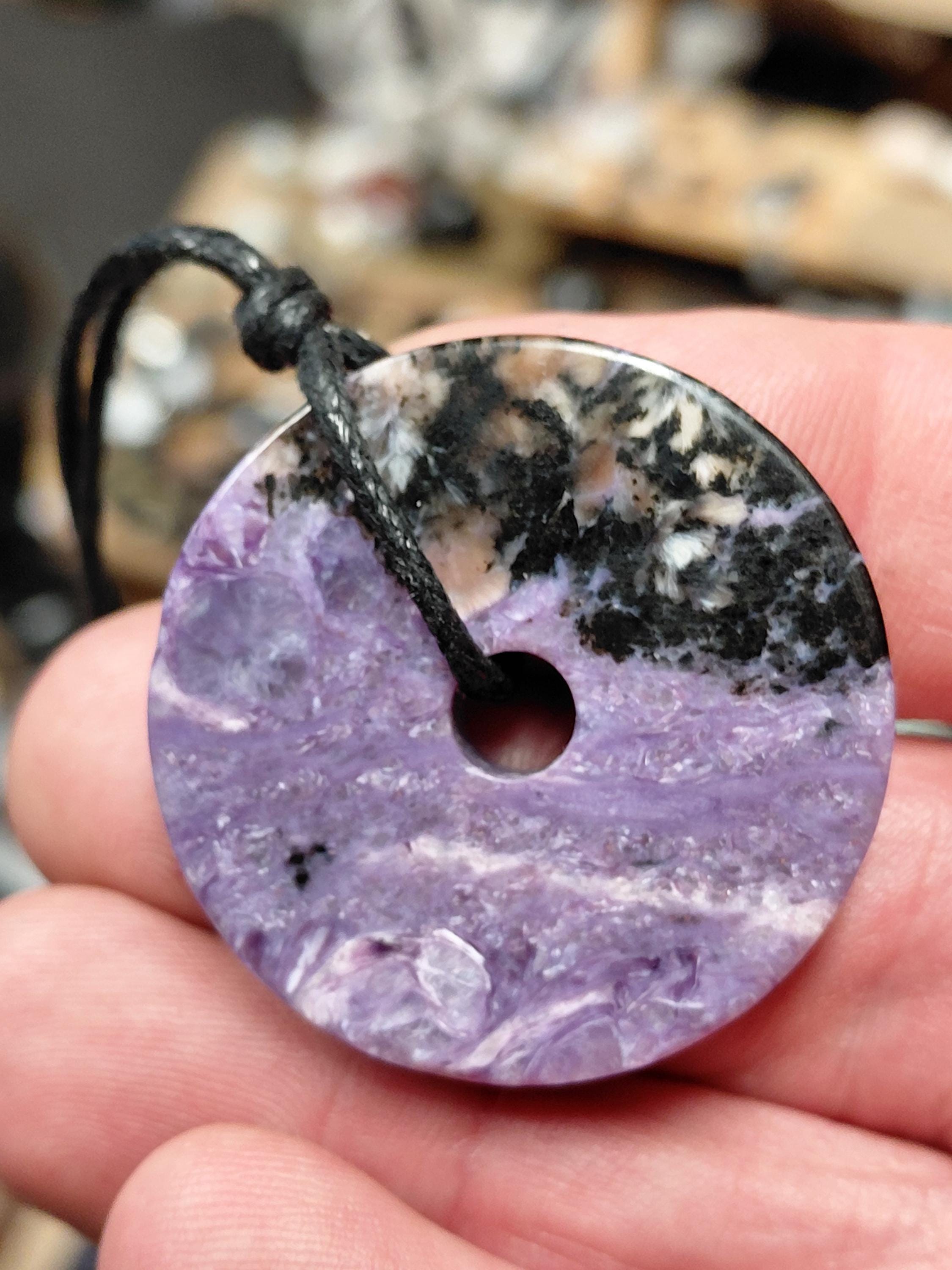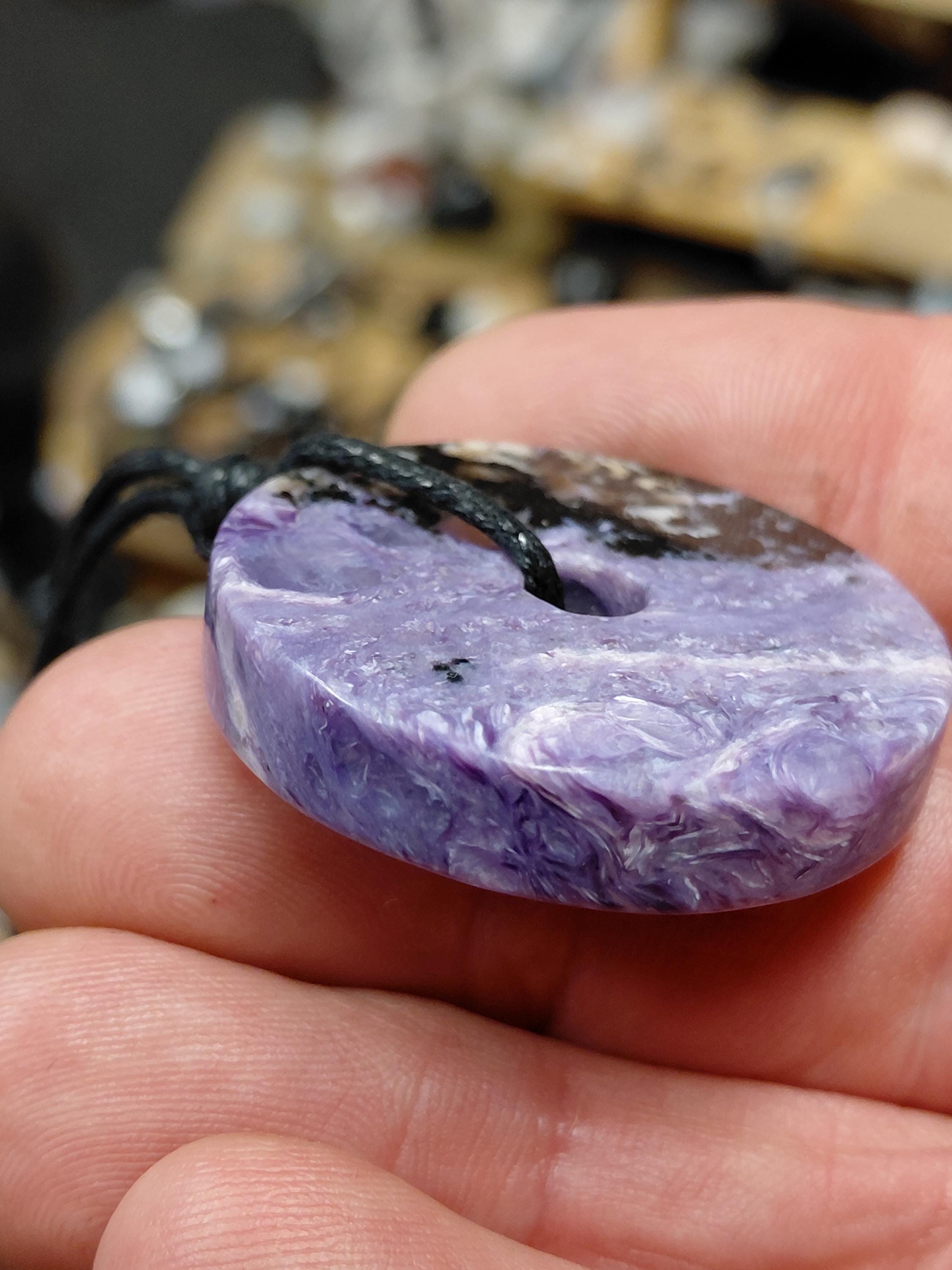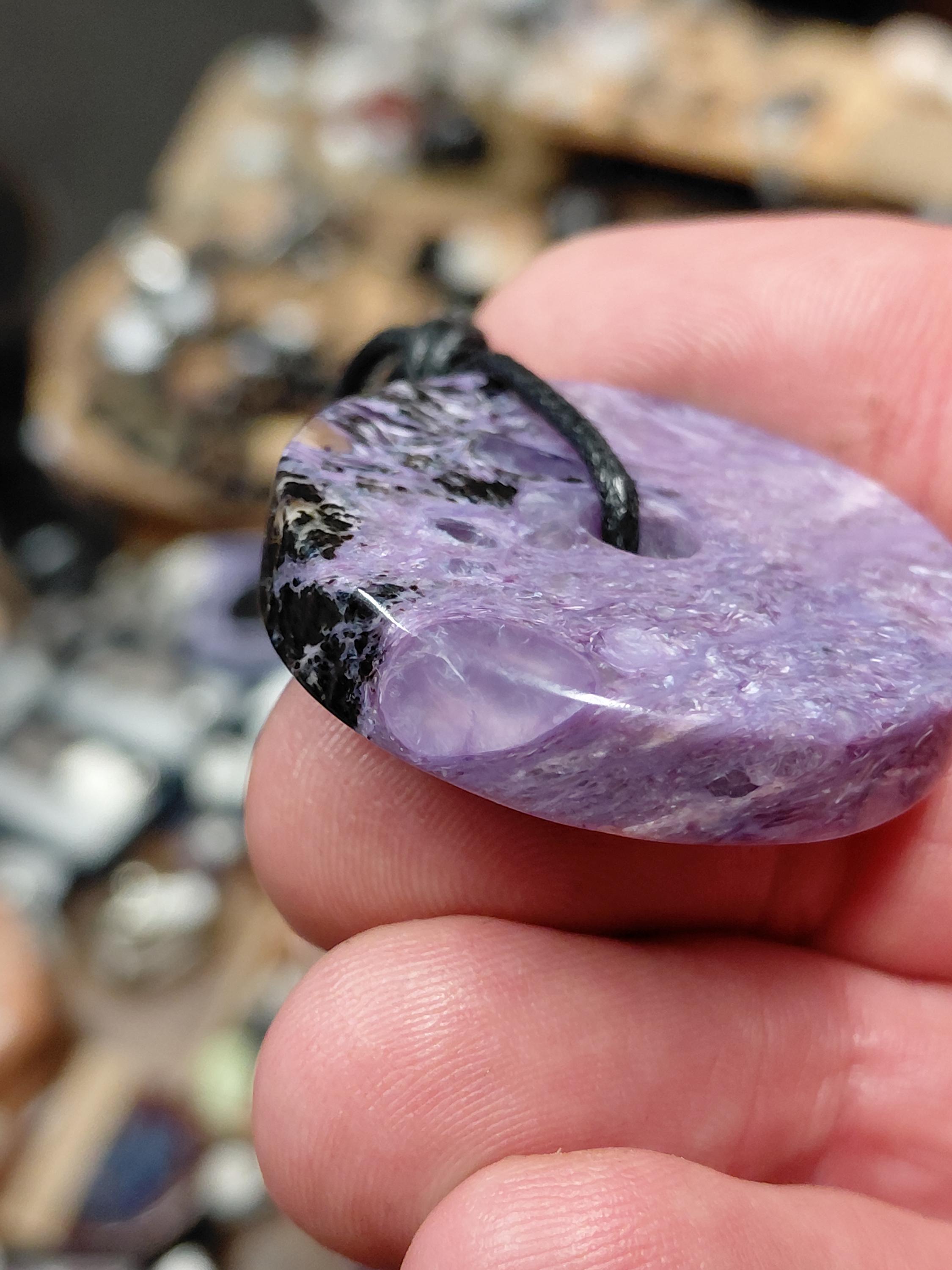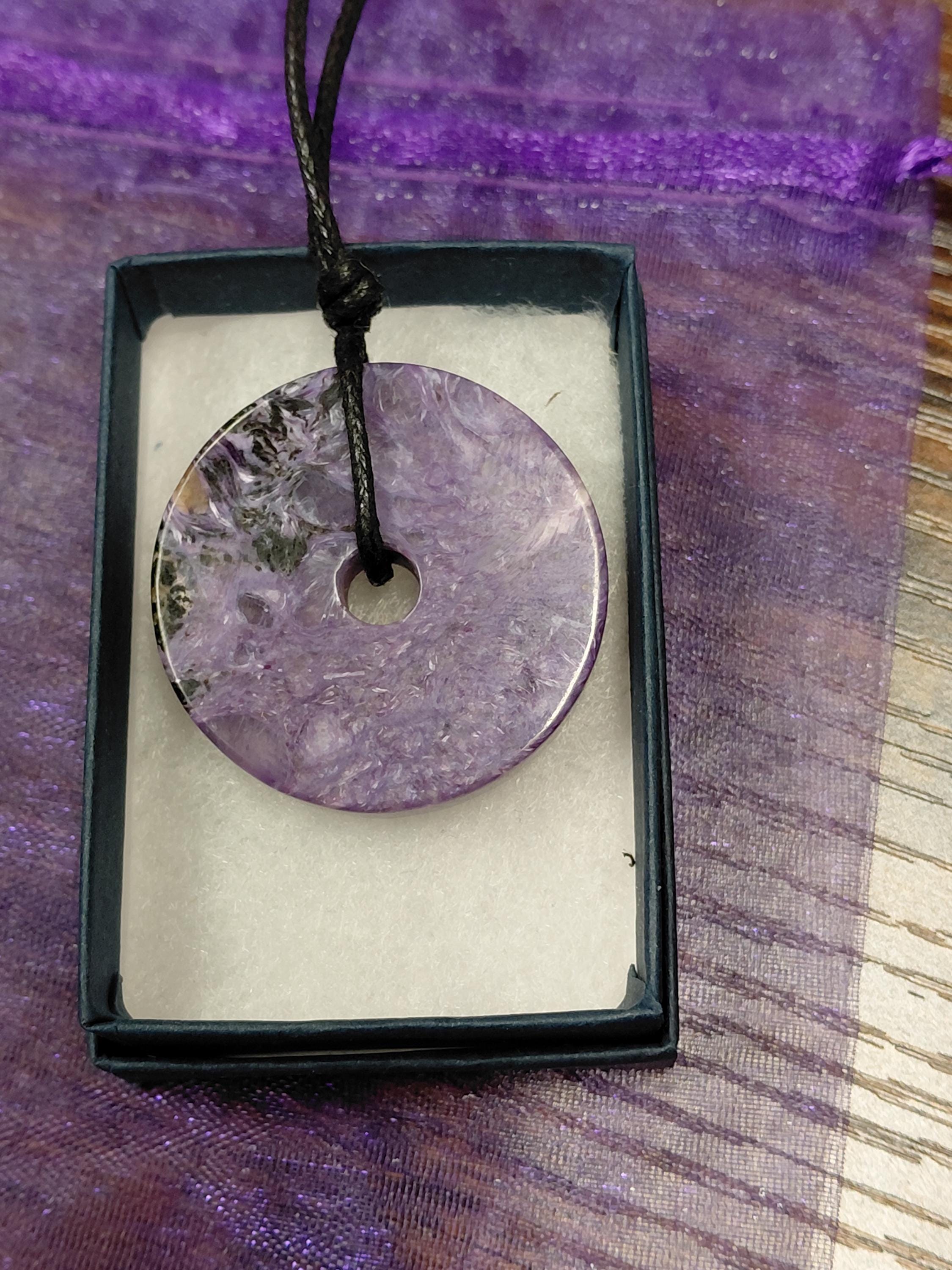 Charoite-Pendant-3.5 cm- Black Cord- Gift Box- Gift-Yourself- Friends-Family-Loved One