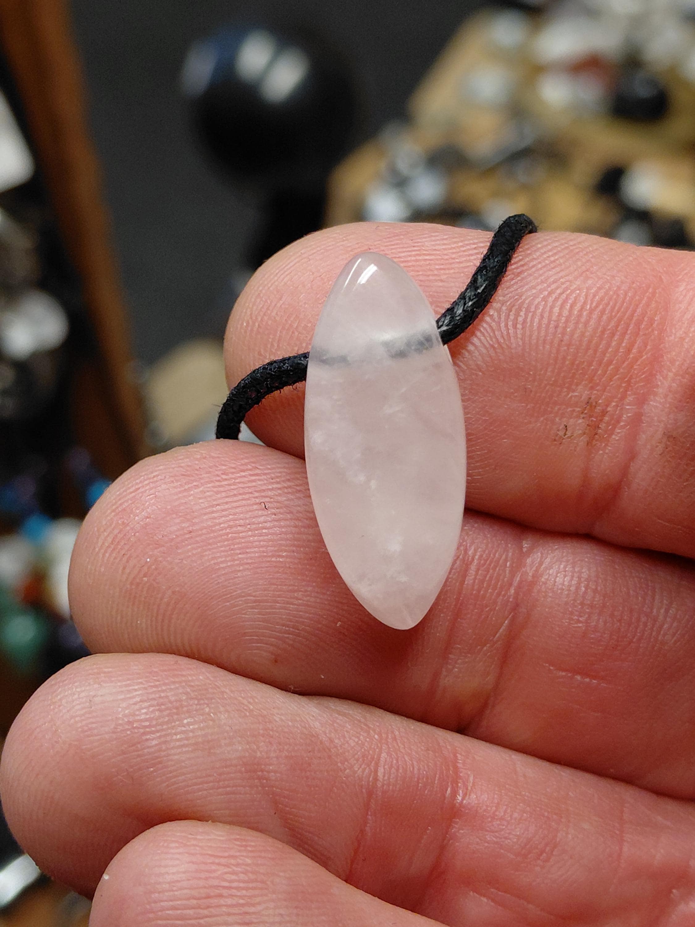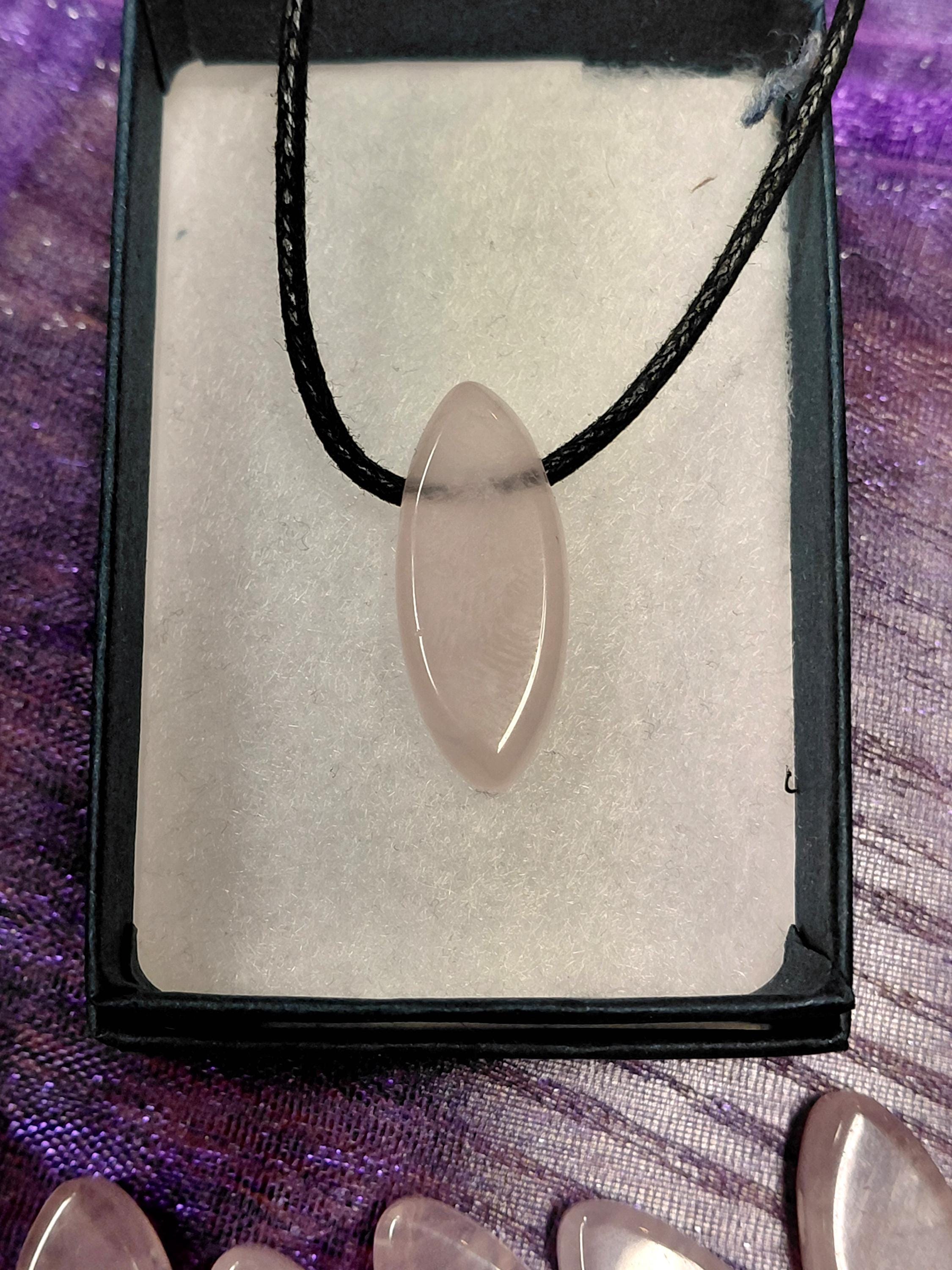Marquise Rose Quartz-Pendant-2.5 cm- Black Cord- Gift Box- Gift-Yourself- Friends-Family-Loved One
