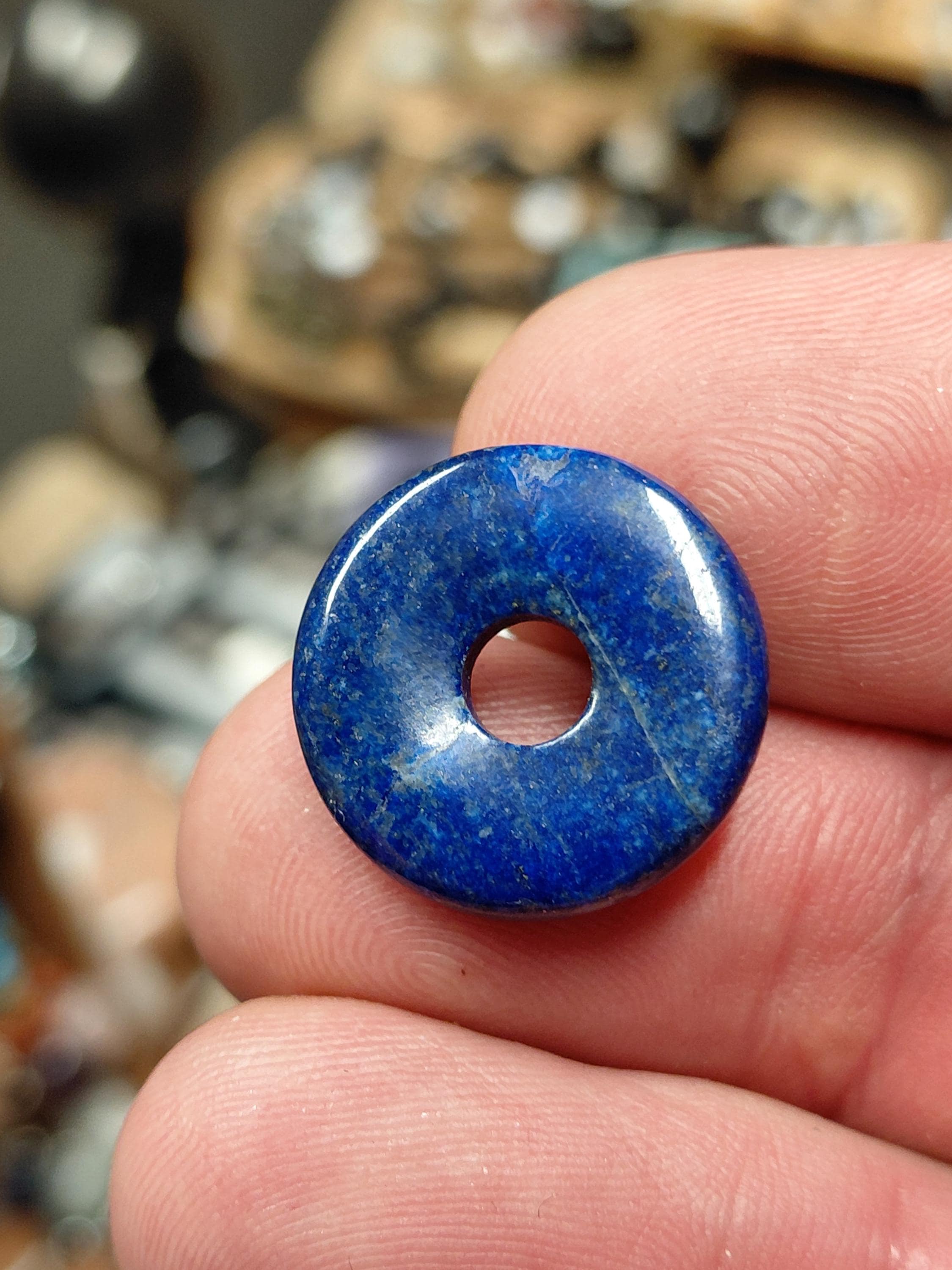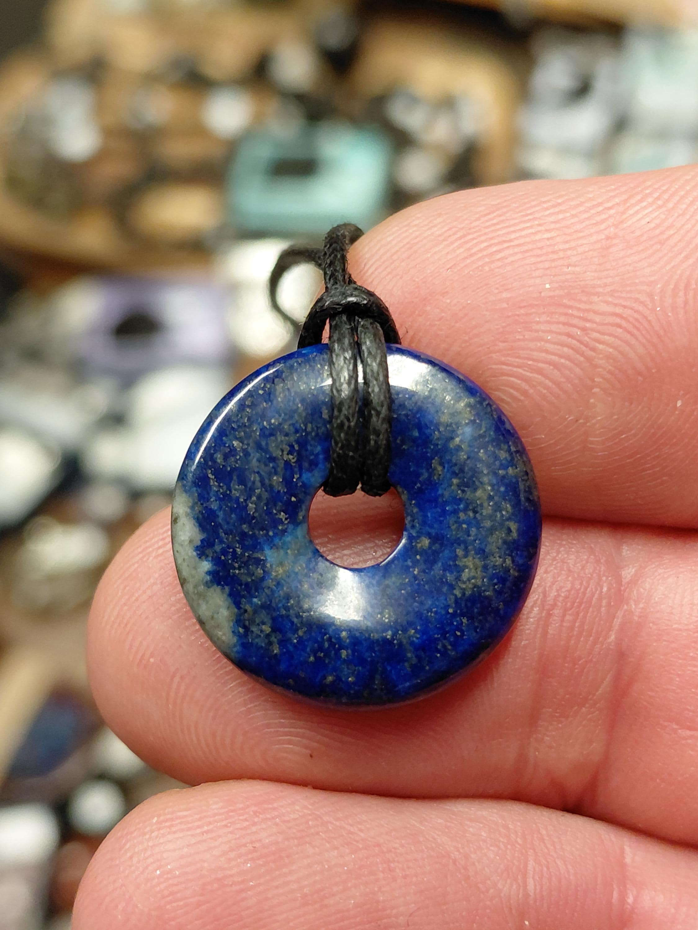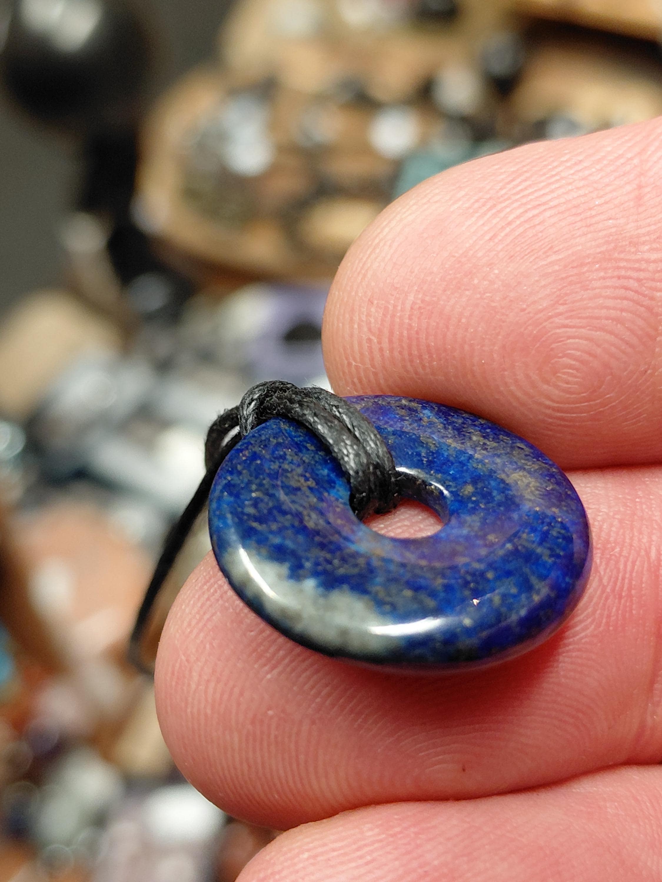 Lapis Lazuli -20 mm Donut Pendant- Black Cord- Perfect gift for yourself- a friend or a Loved one