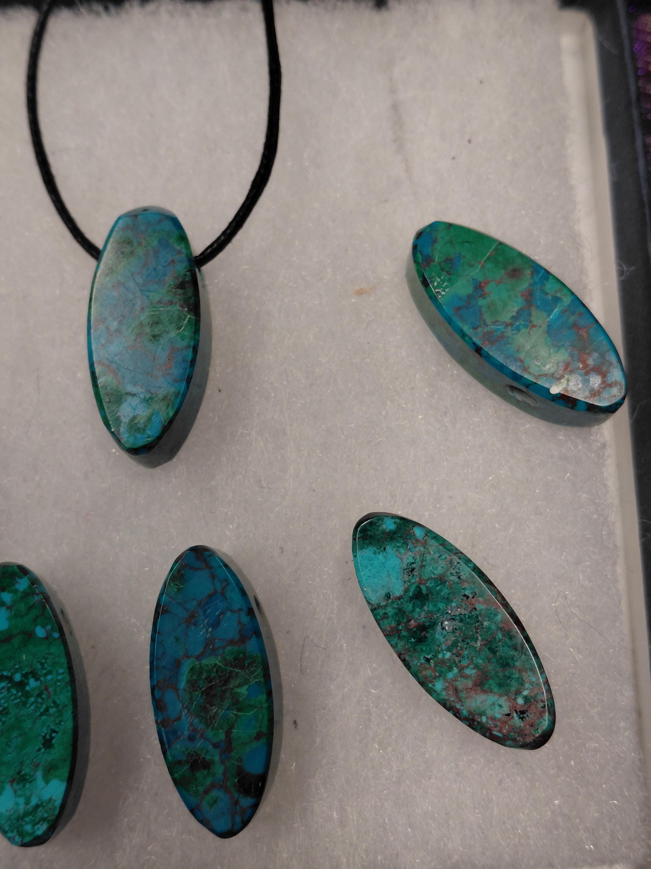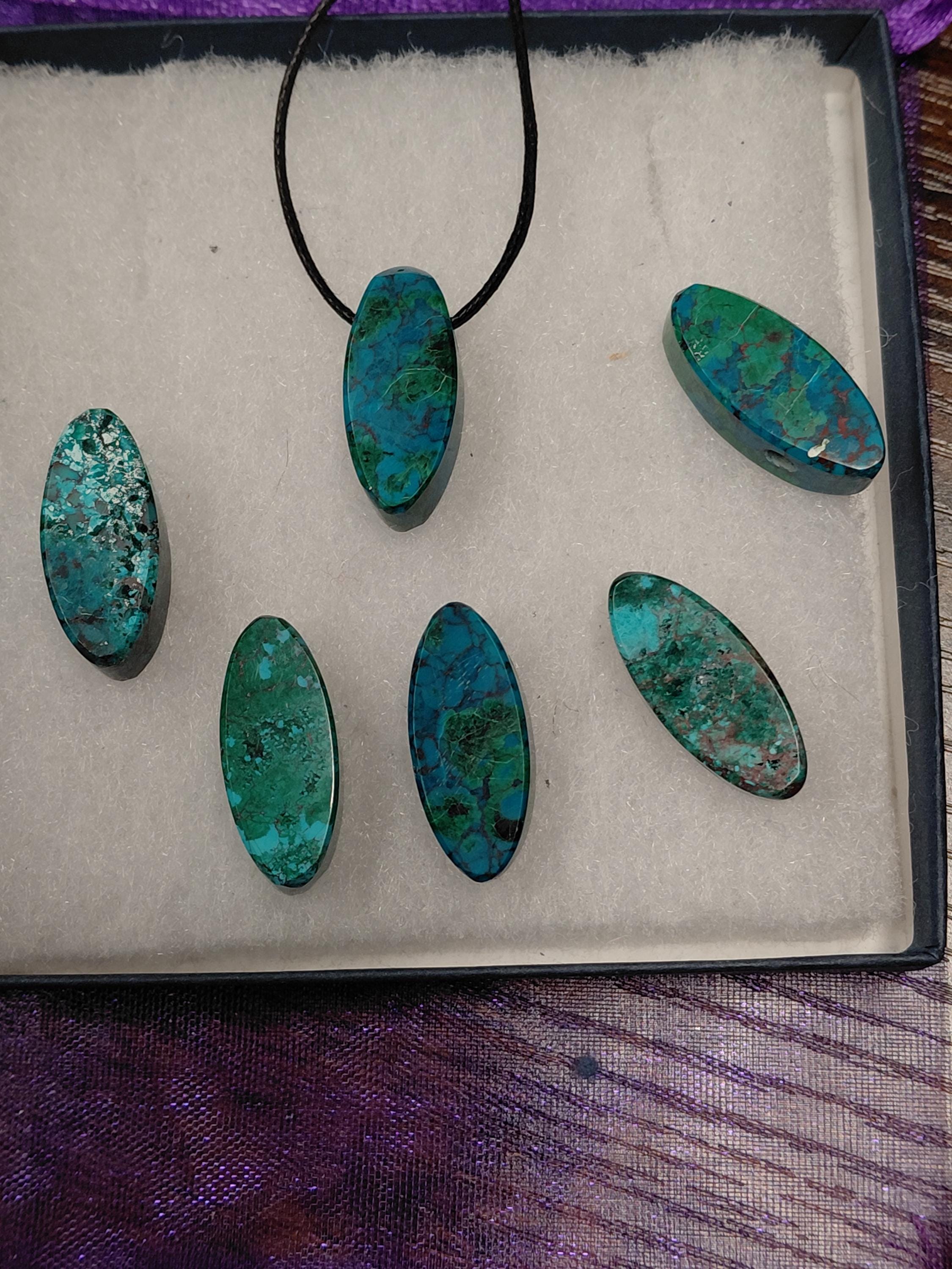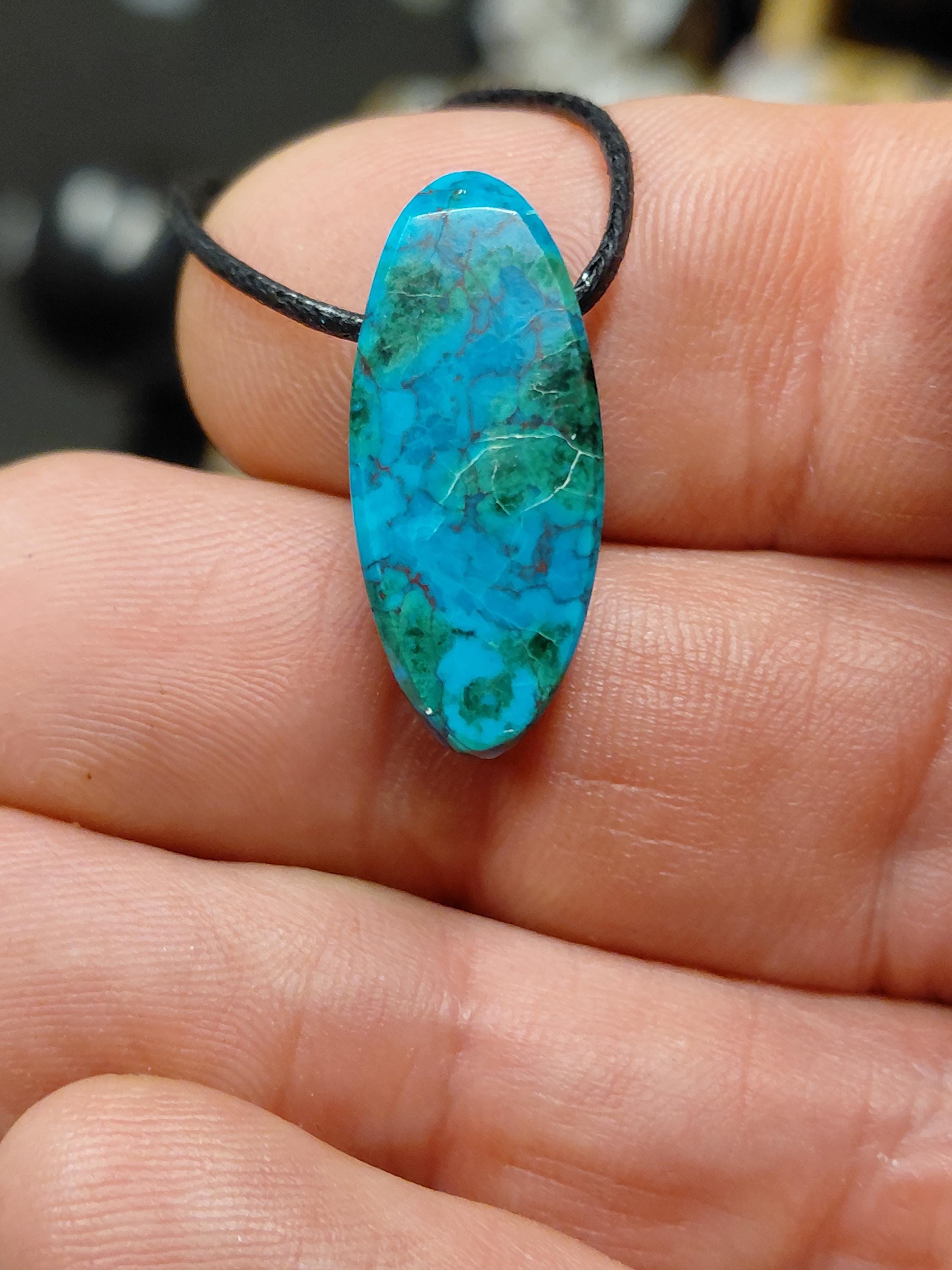 Marquise Chrysocolla-3 cm -Pendant- Black Cord - Gift-Yourself- Friends-Family-Loved One-Gift Box