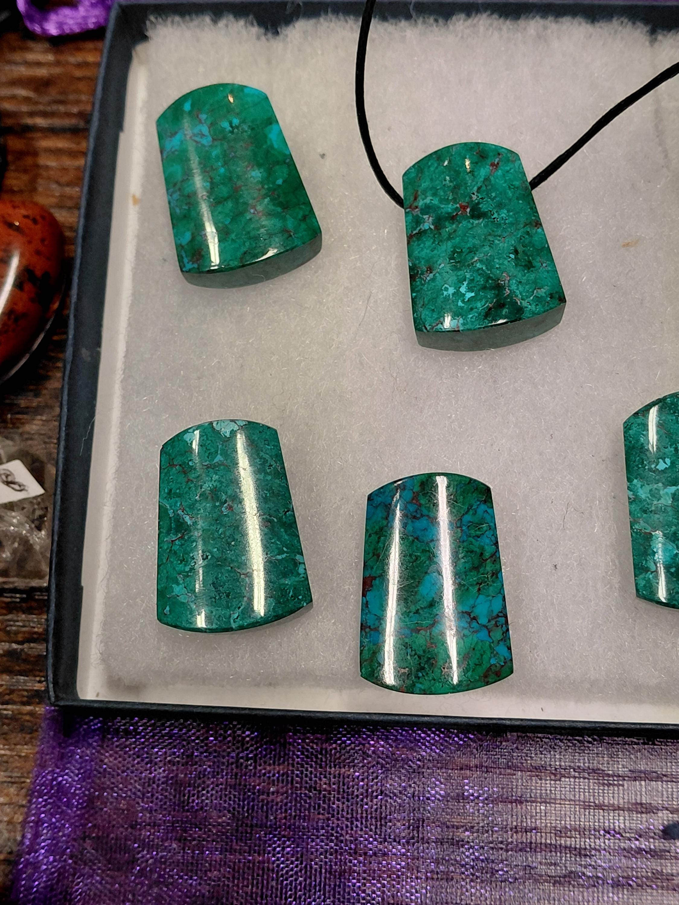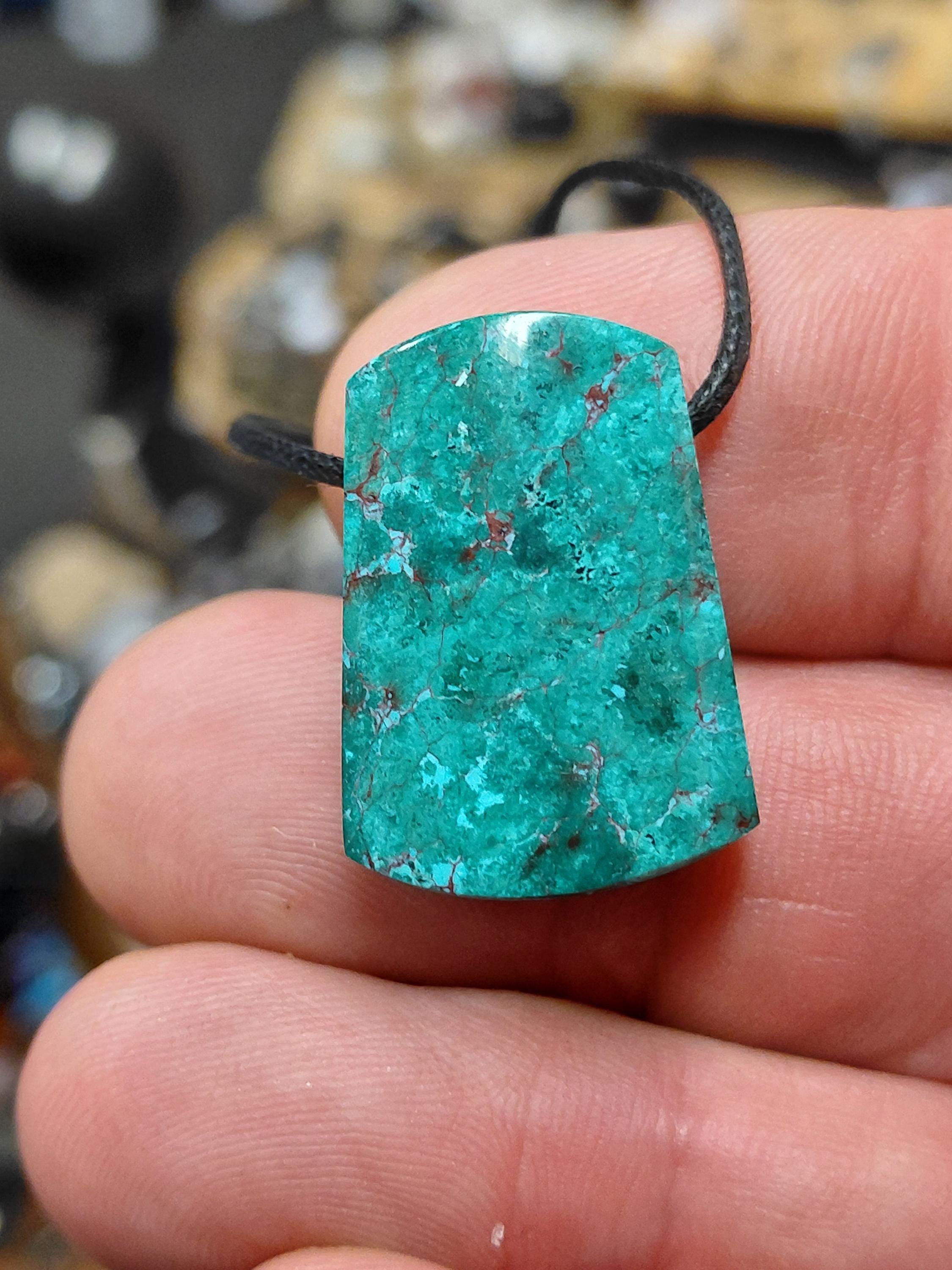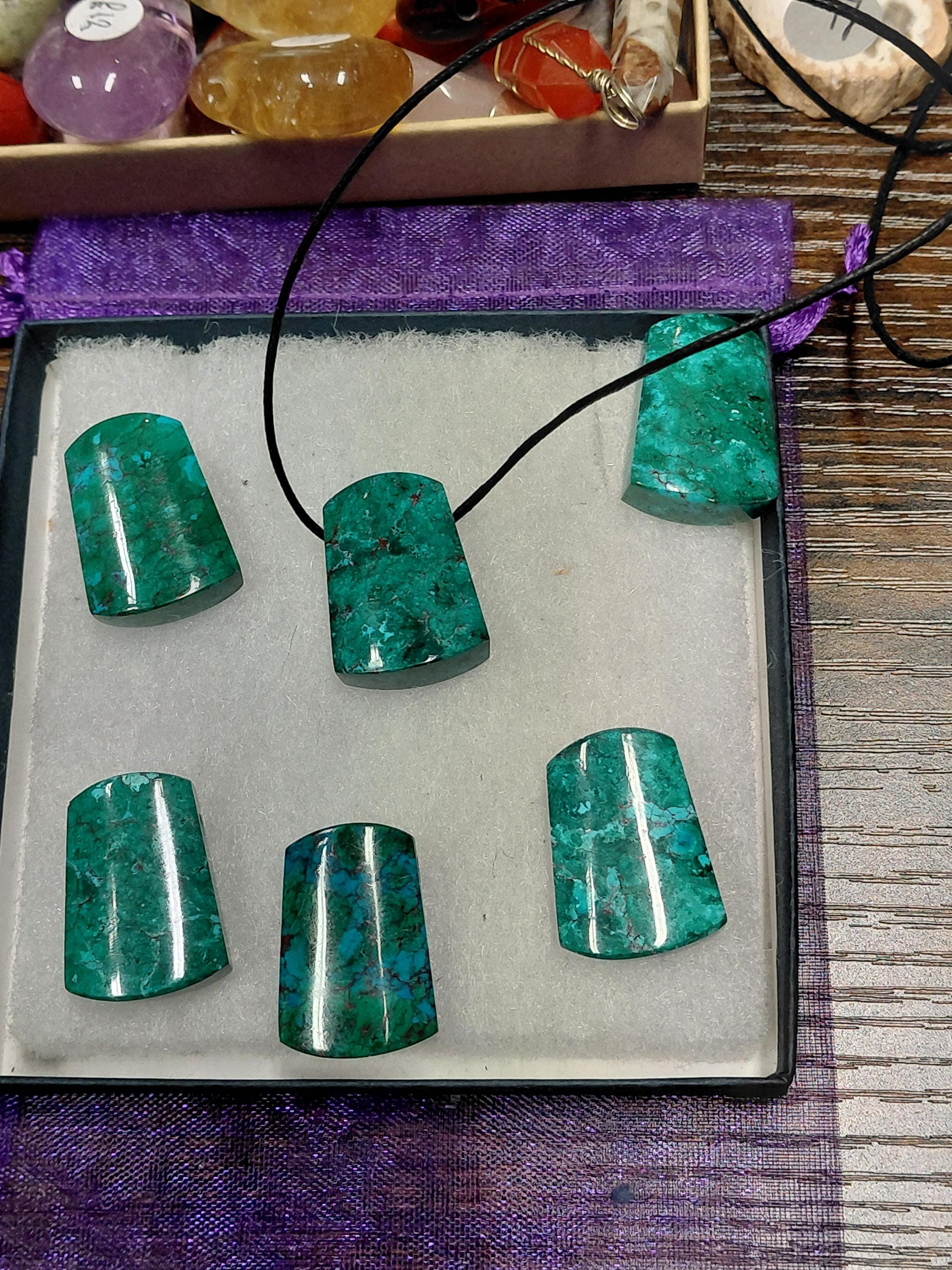 Trapezoid-Chrysocolla -2.4 cm -Pendant- Black Cord - Gift-Yourself- Friends-Family-Loved One-Gift Box