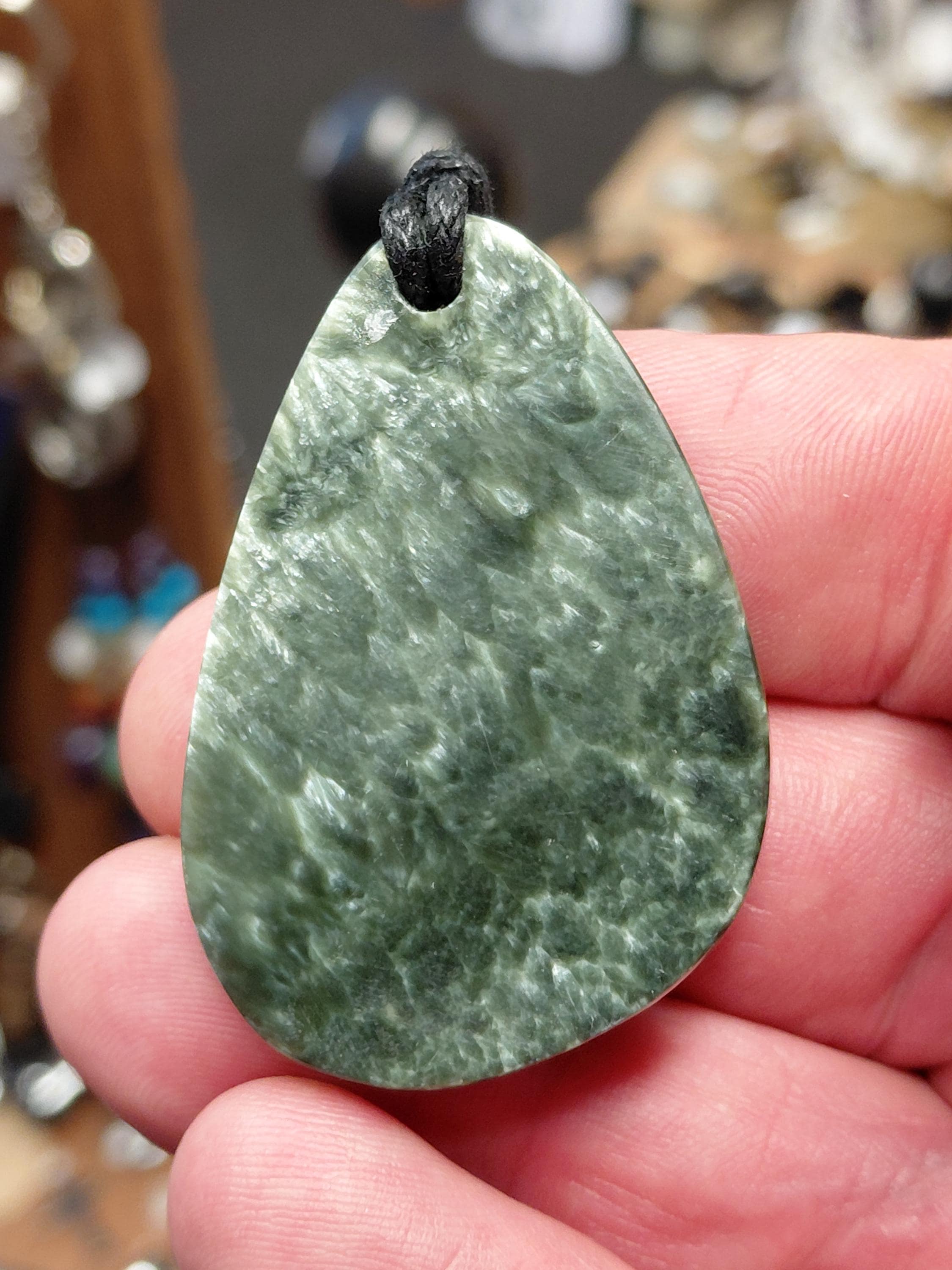 Serafinite Pendant: Gemstone on Black Cord