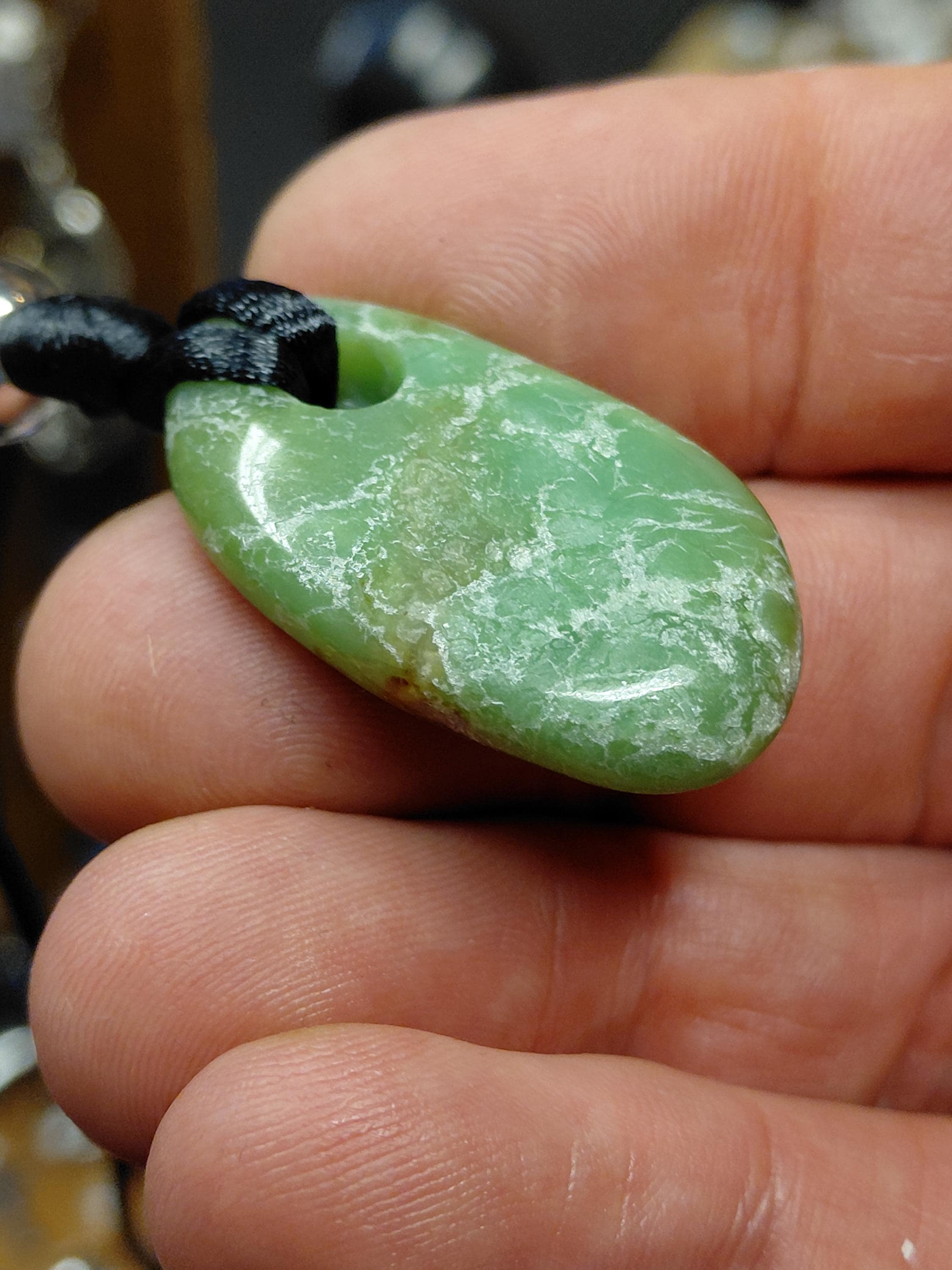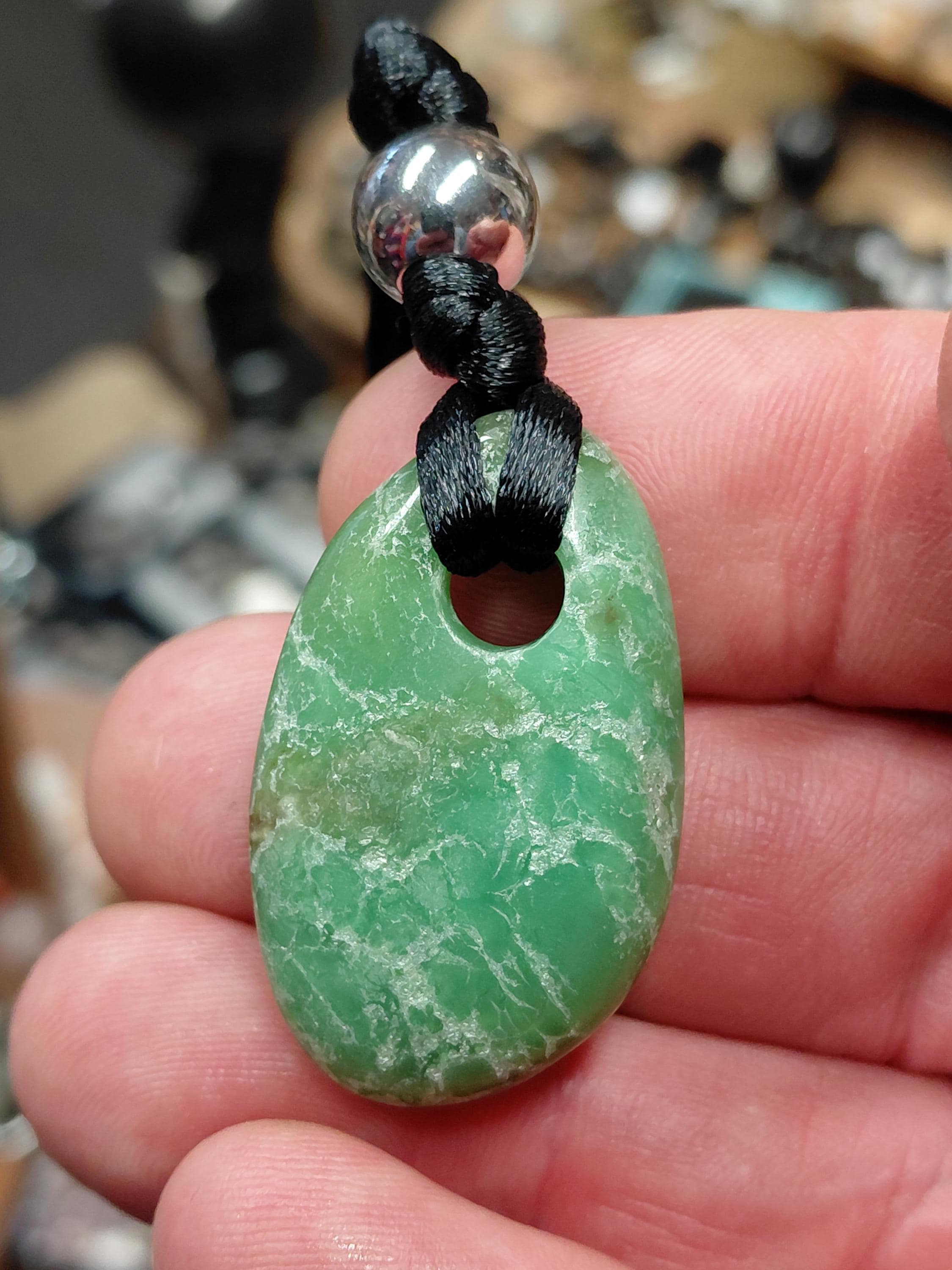 Chrysoprase-Tumbled-Pendant- Black Cord - Gift-Yourself- Friends-Family-Loved One-Gift Box
