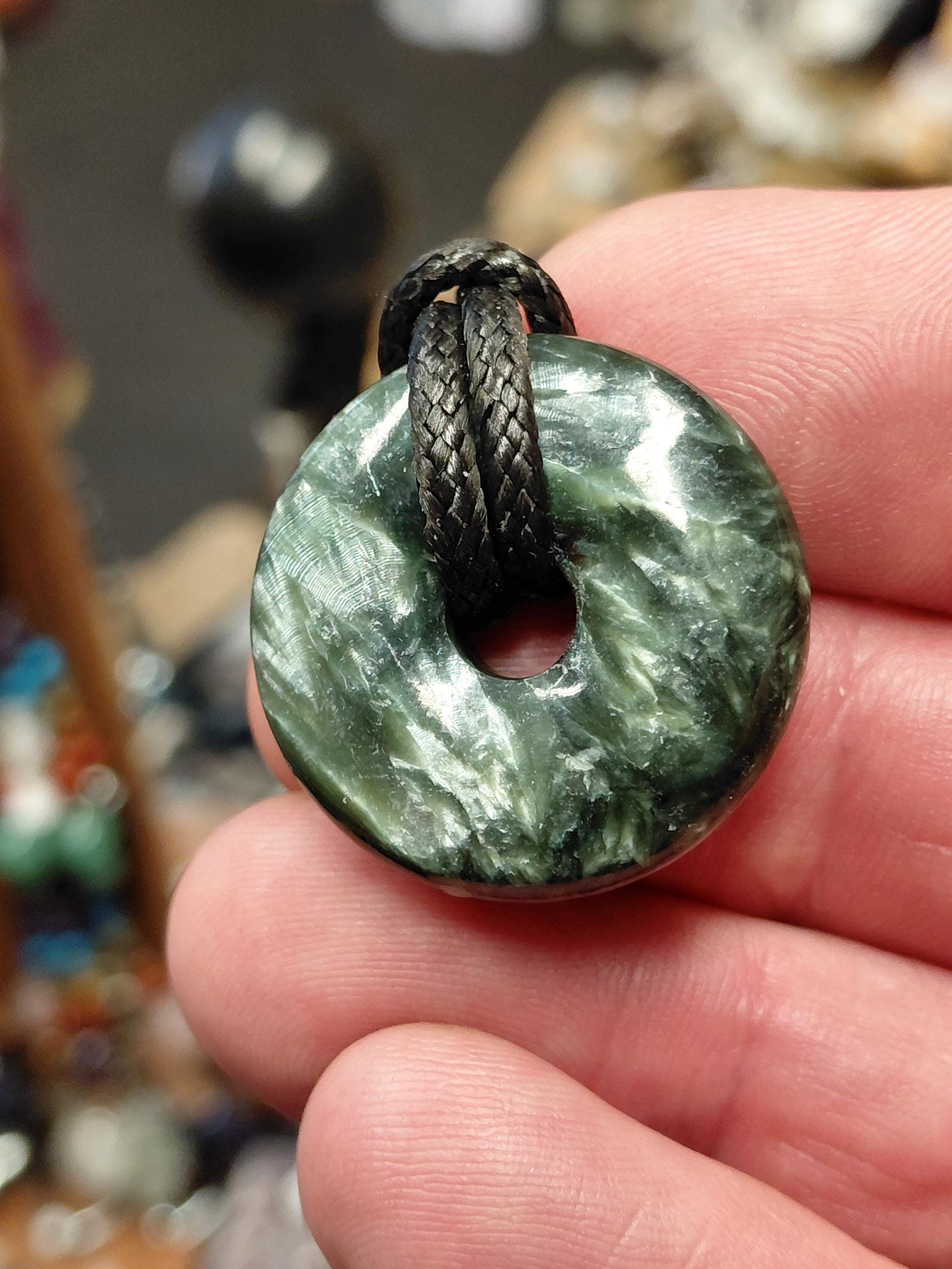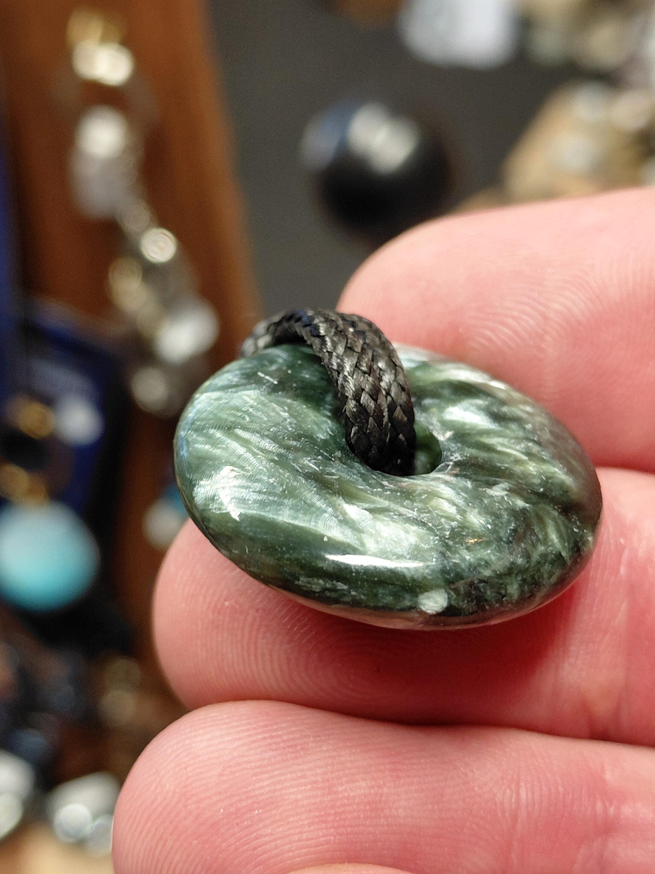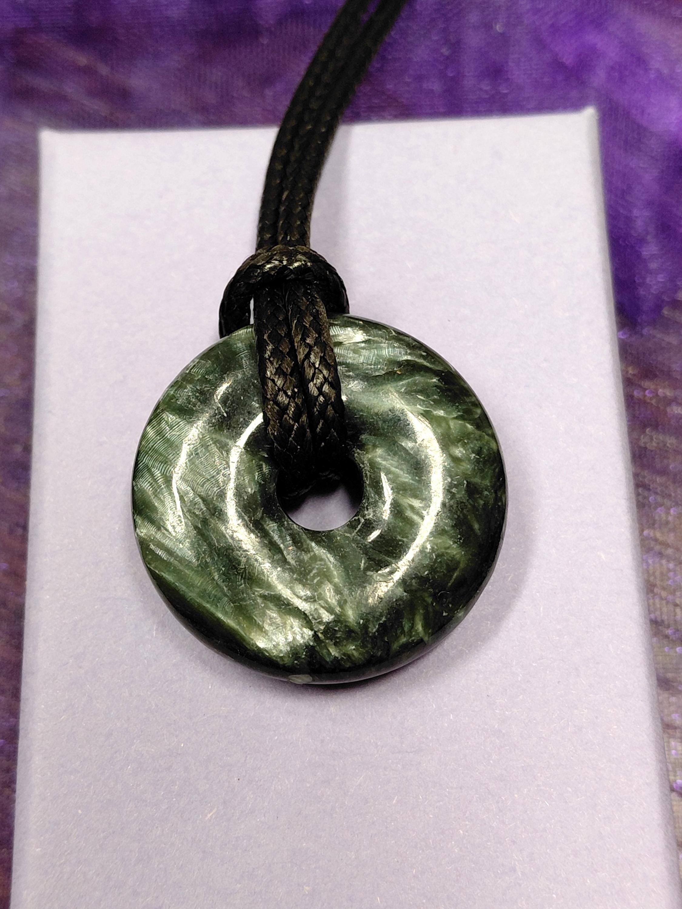 Serafinite 28-32 mm Donut Pendant with Black Cord