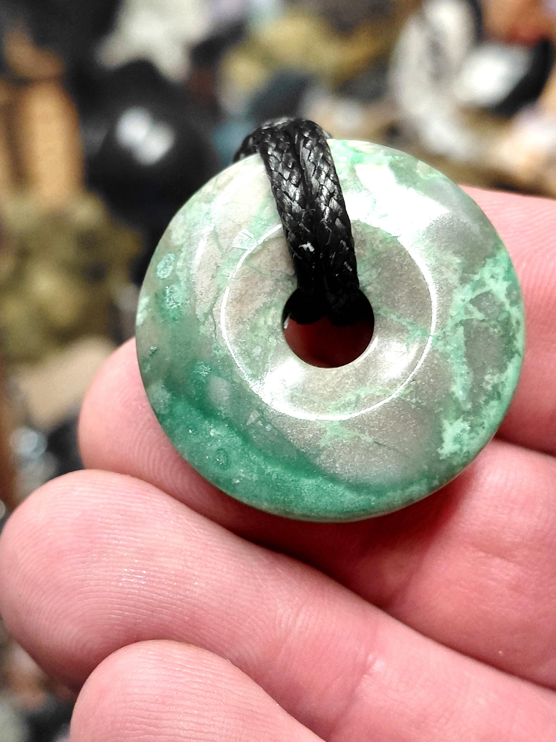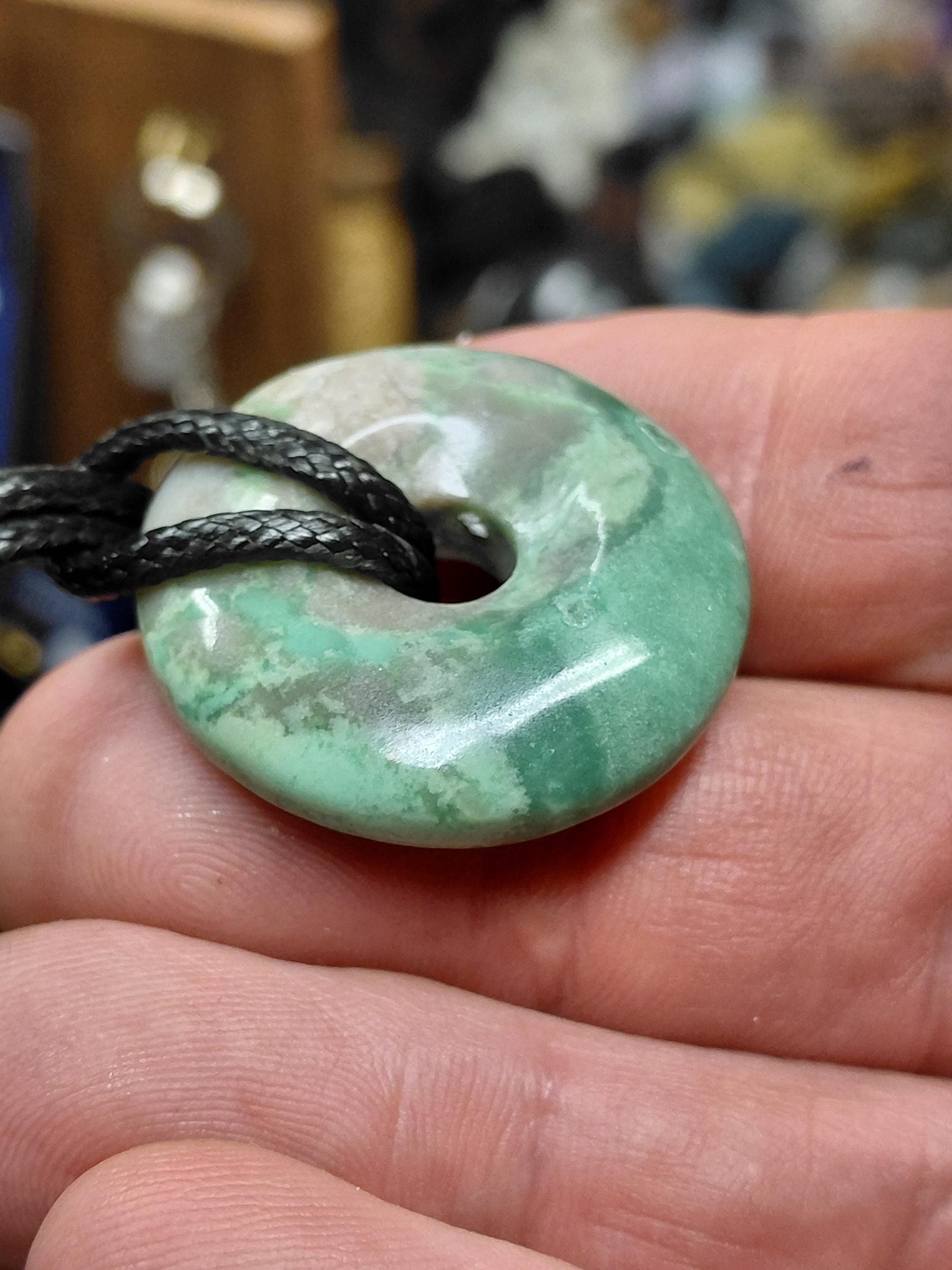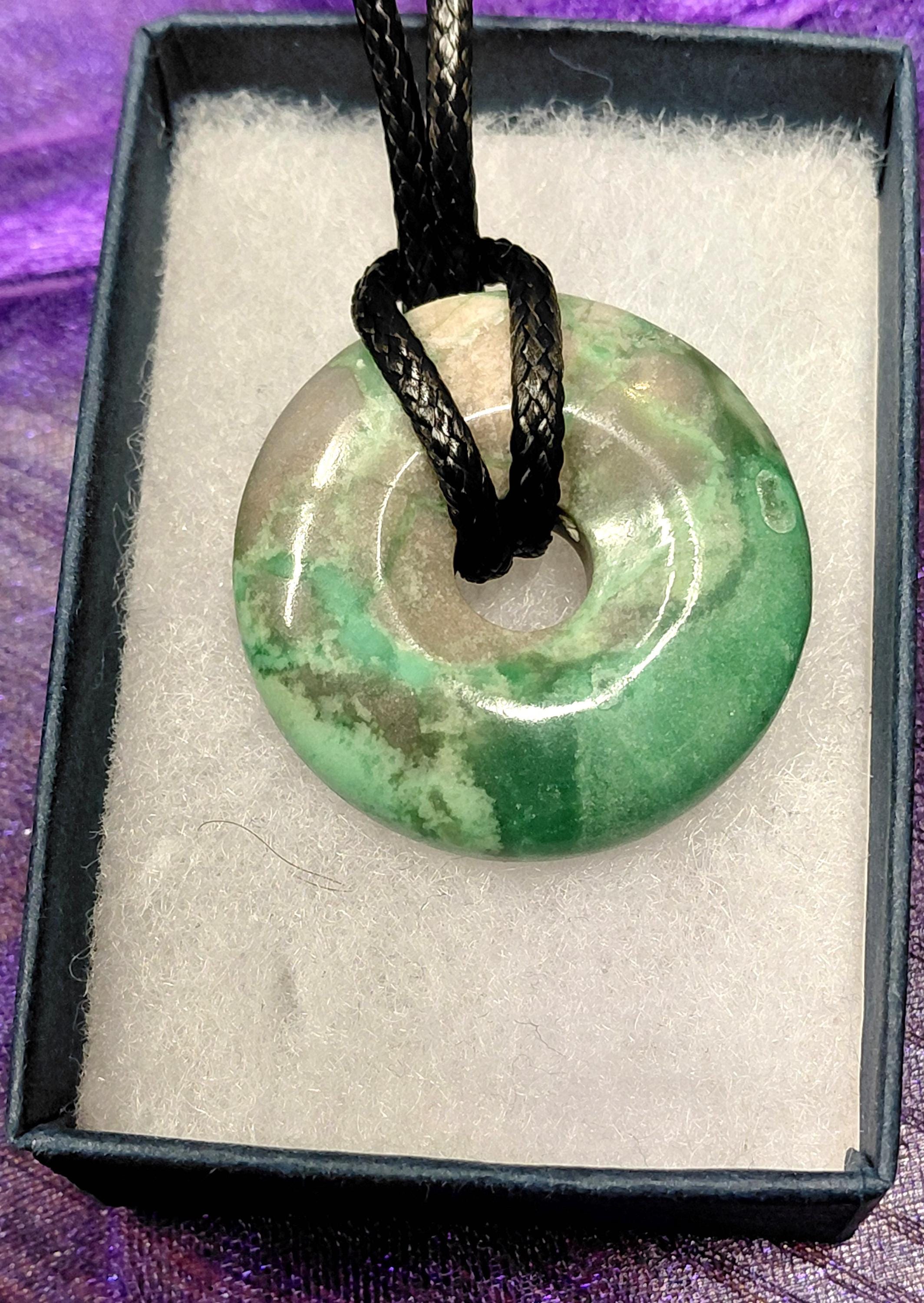 Variscite- 30 - 34 mm Donut Pendant with Black Cord