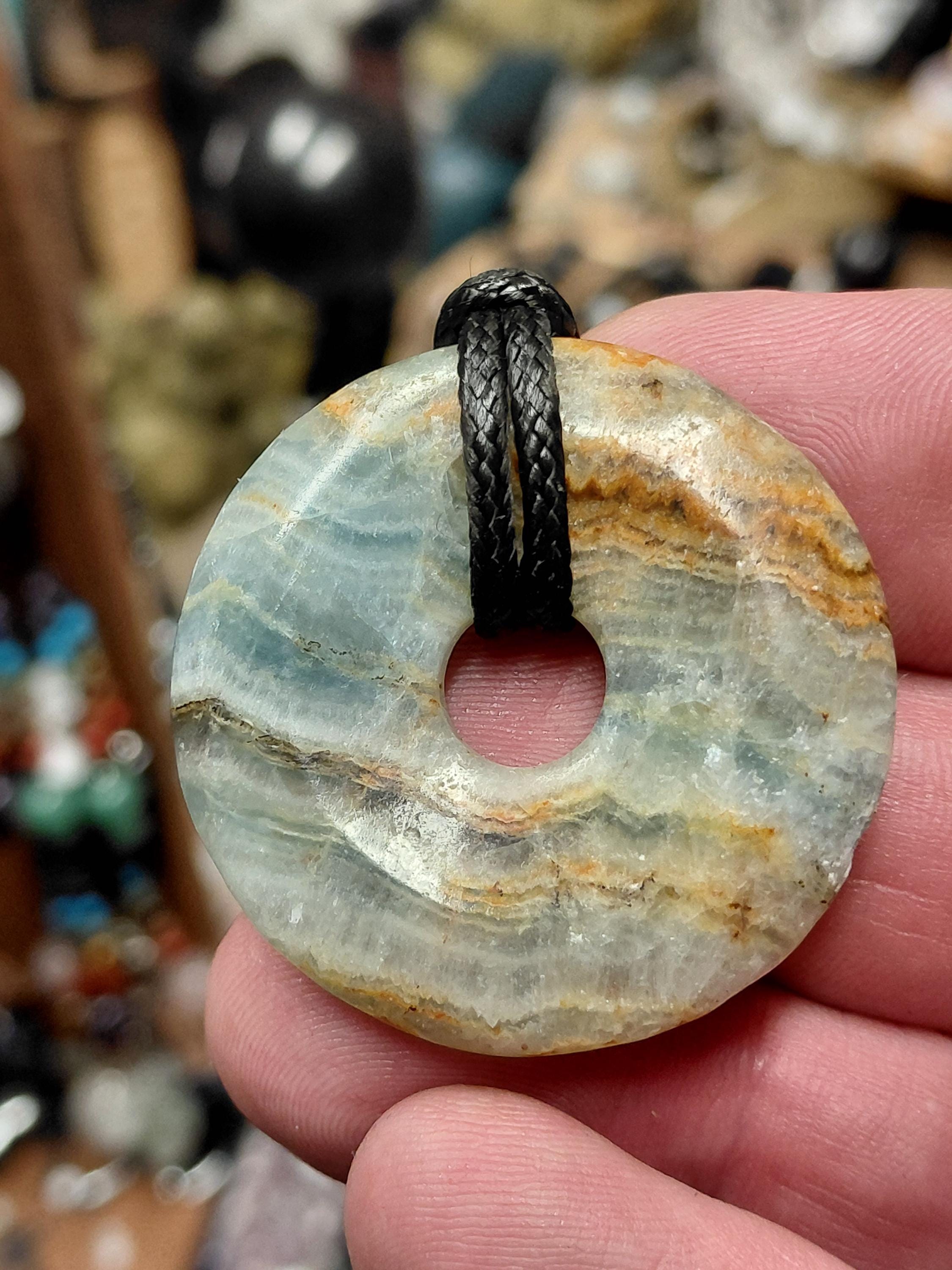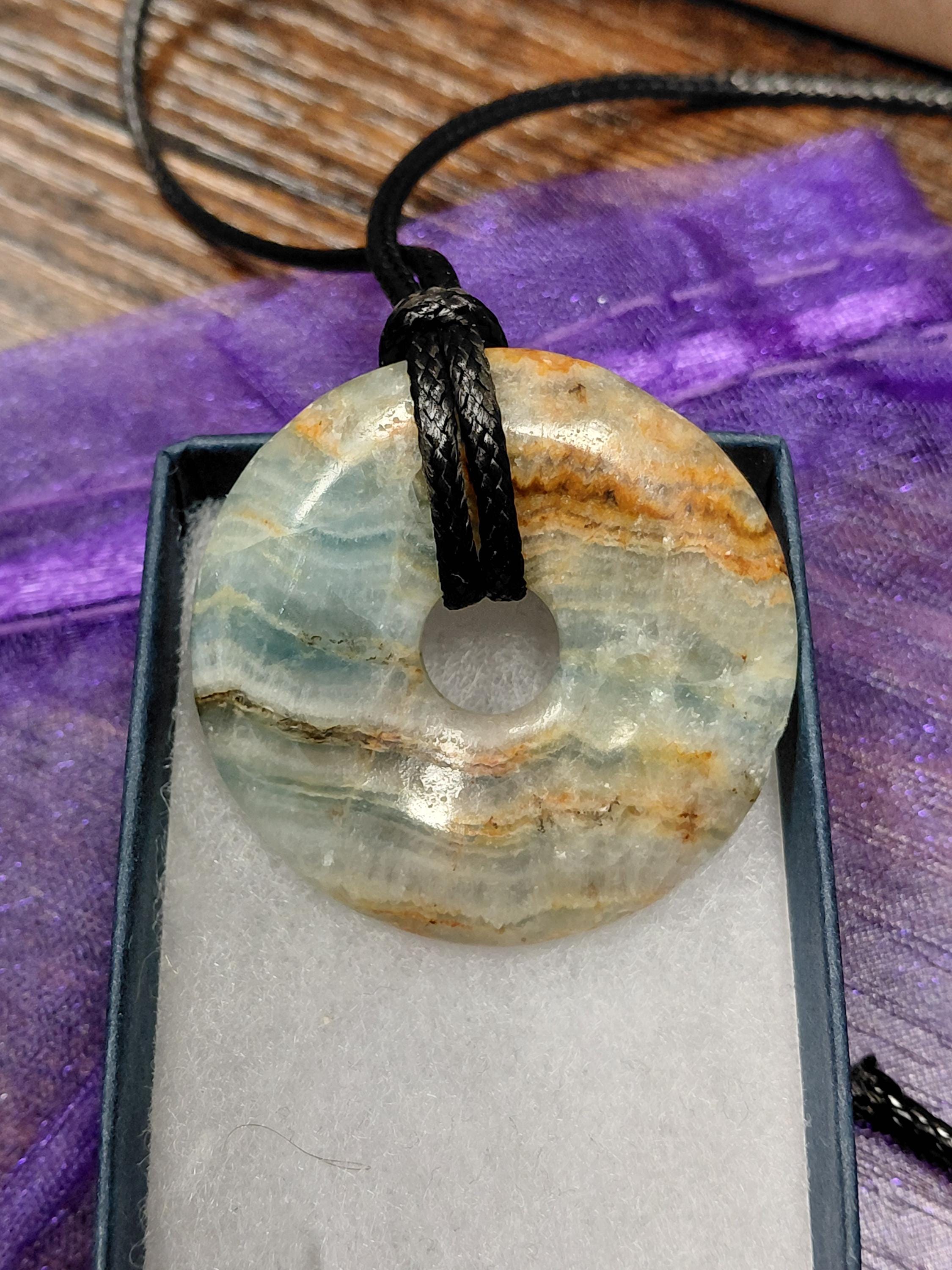 Aragonite- Blue-40 mm Donut Pendant with Black Cord