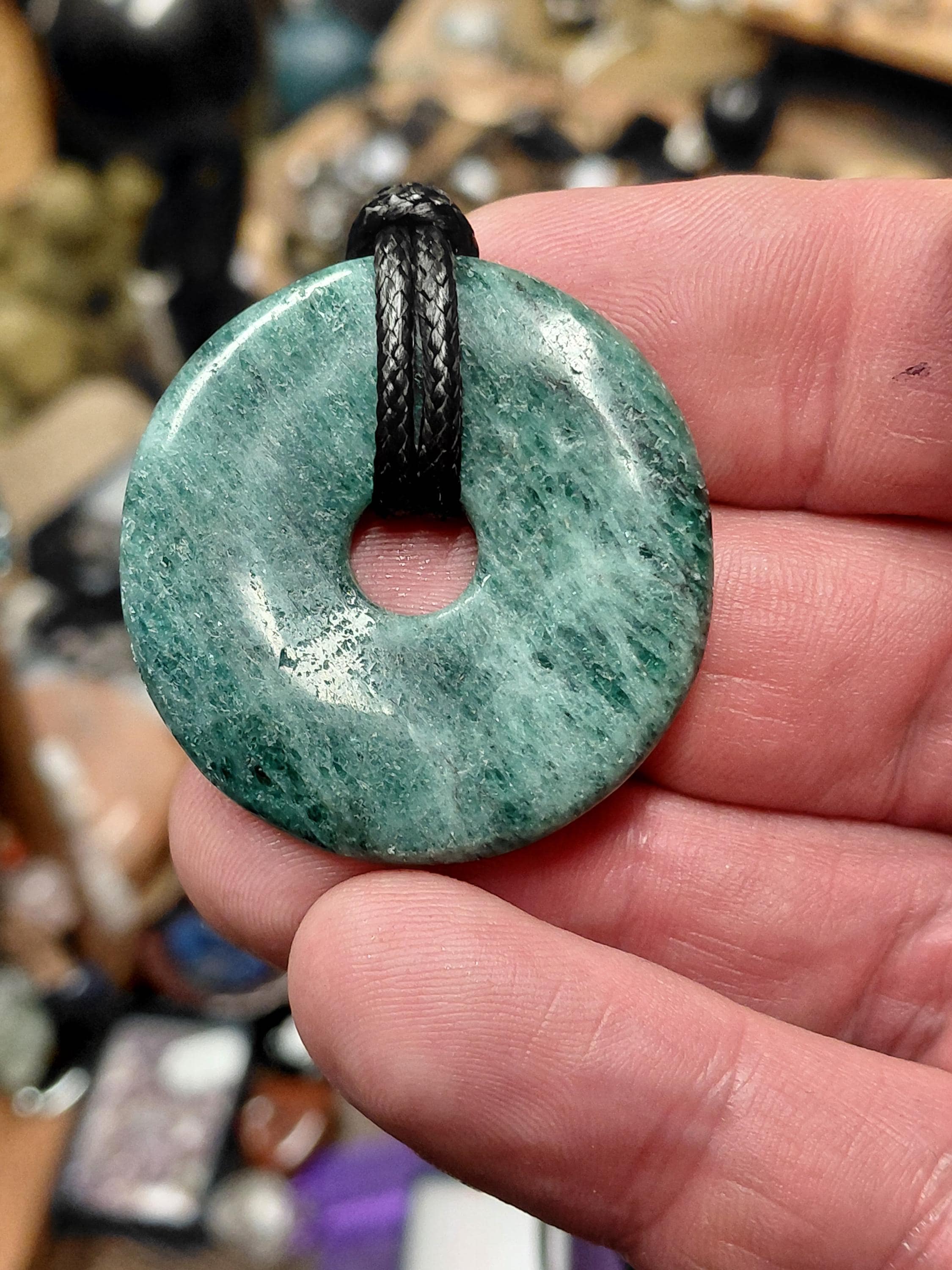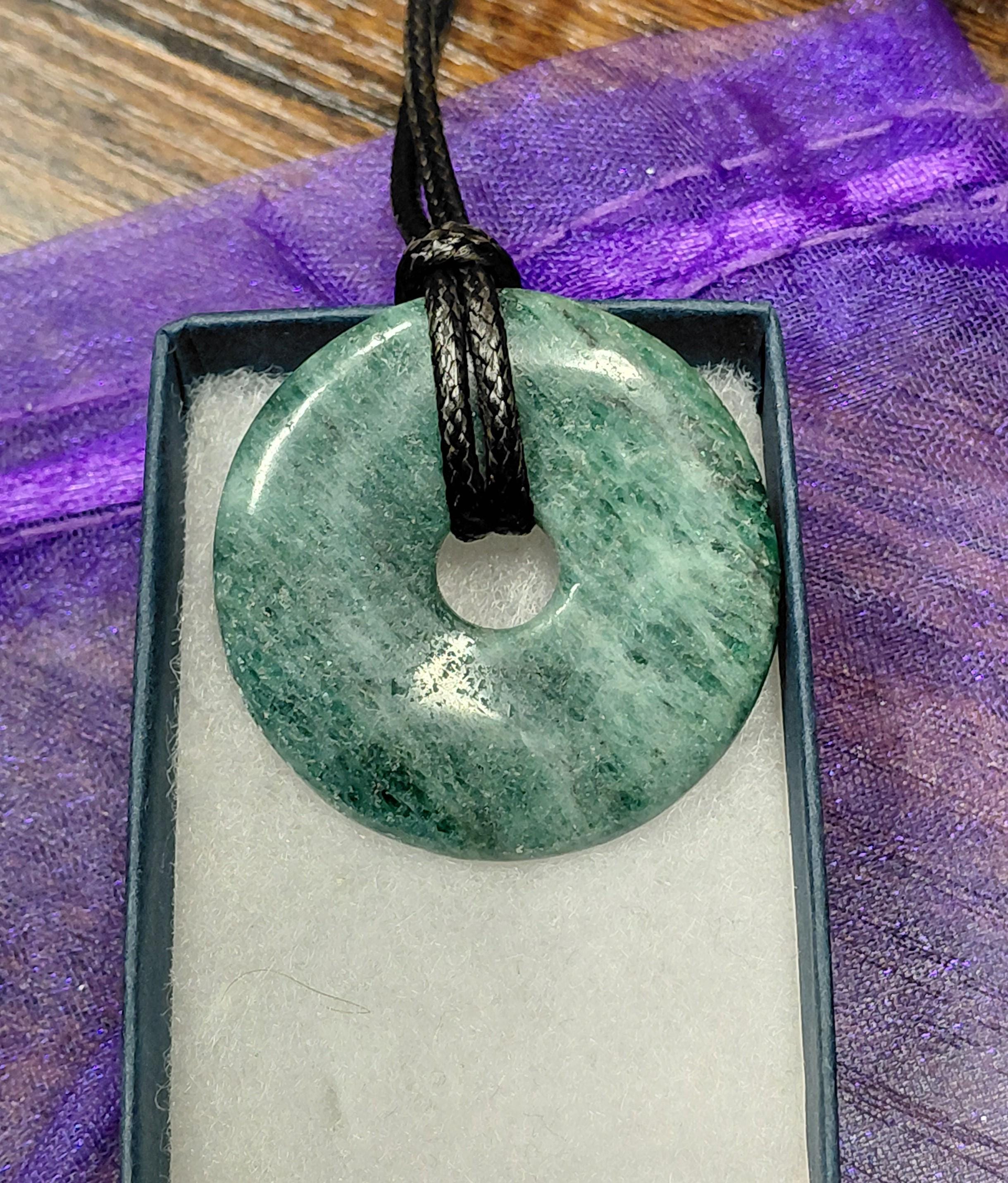 Apatite- 40 mm Donut Pendant with Black Cord