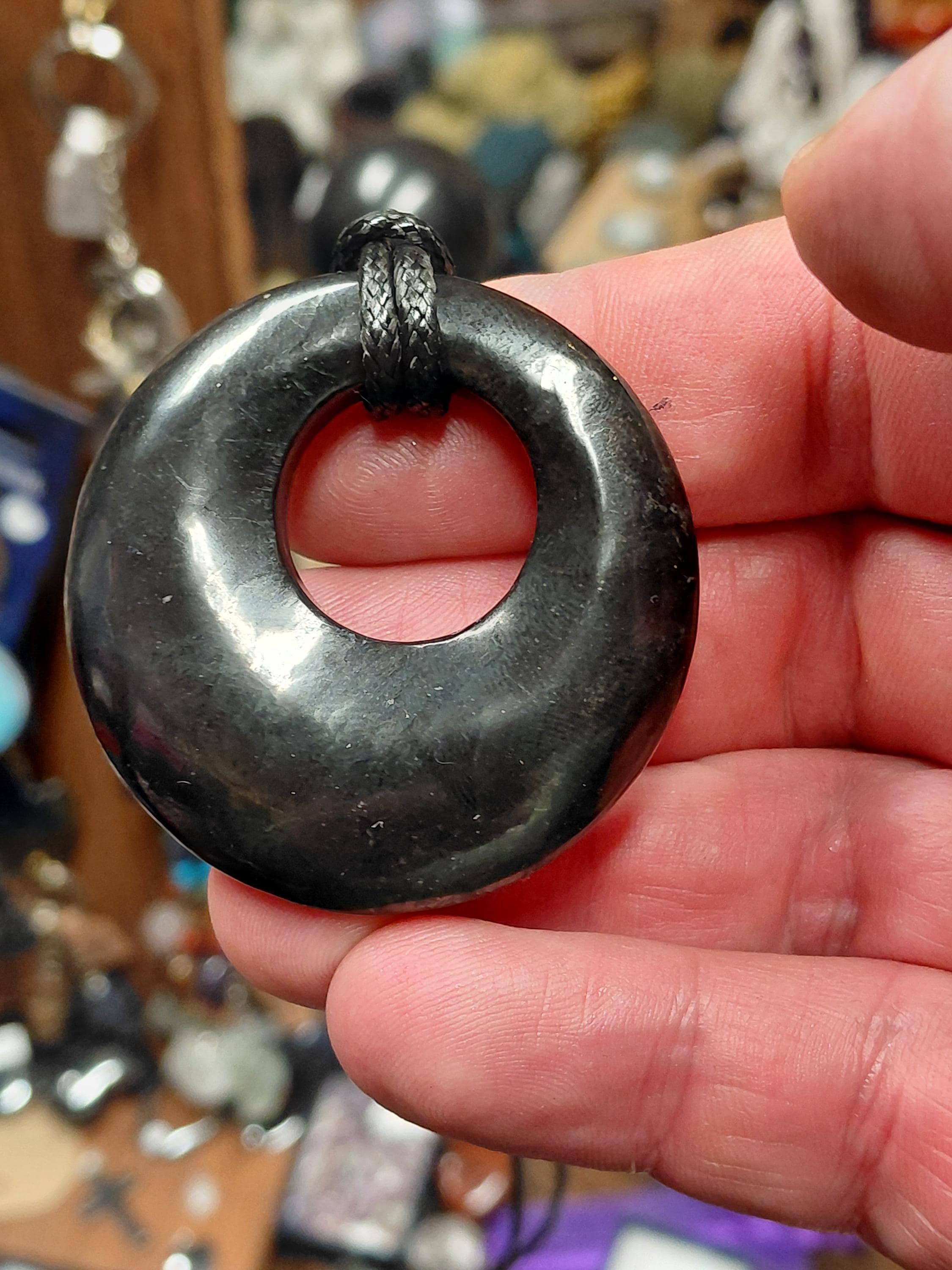 A go go Shungite 5 cm-Pendant-Black Cord