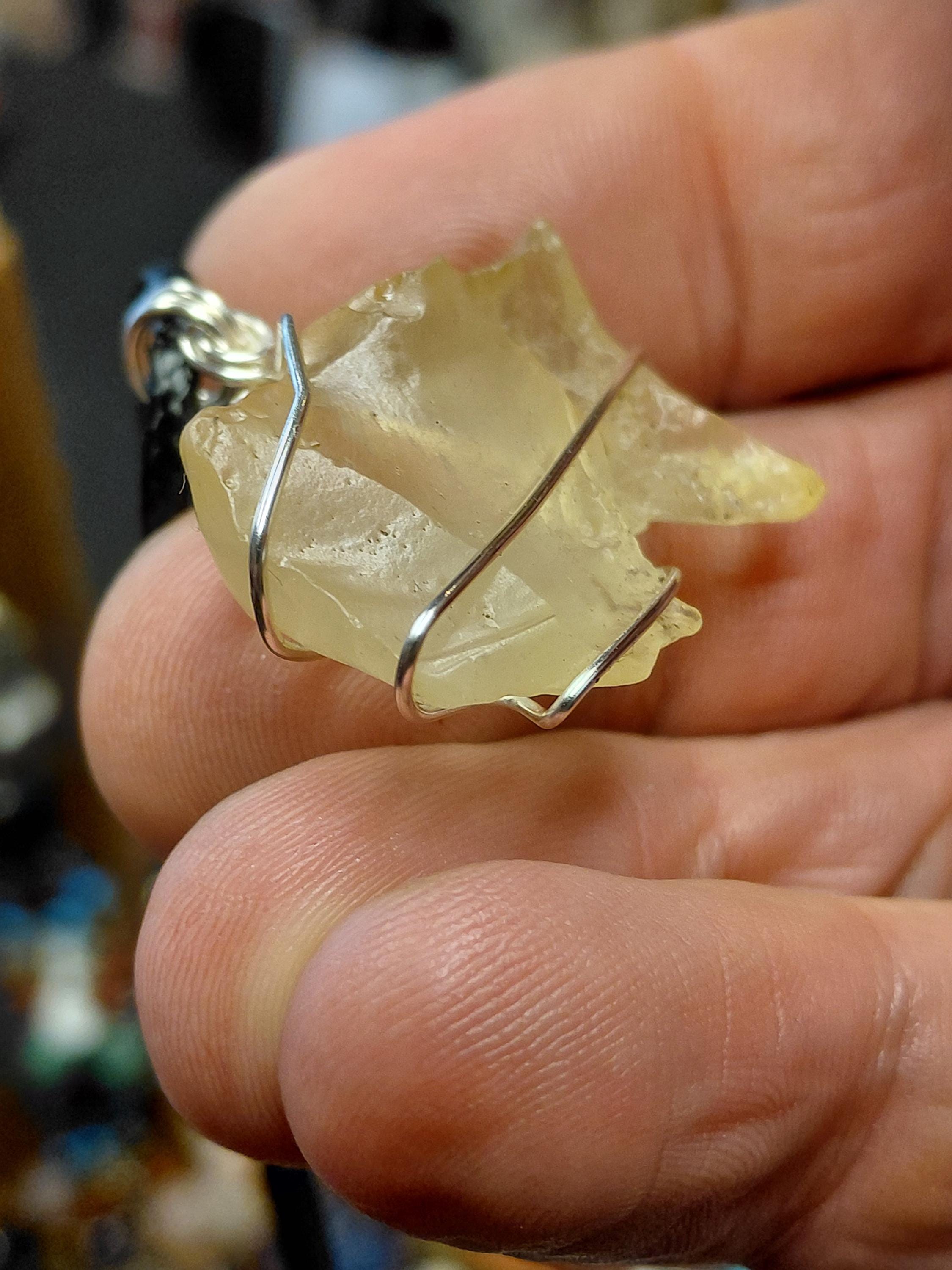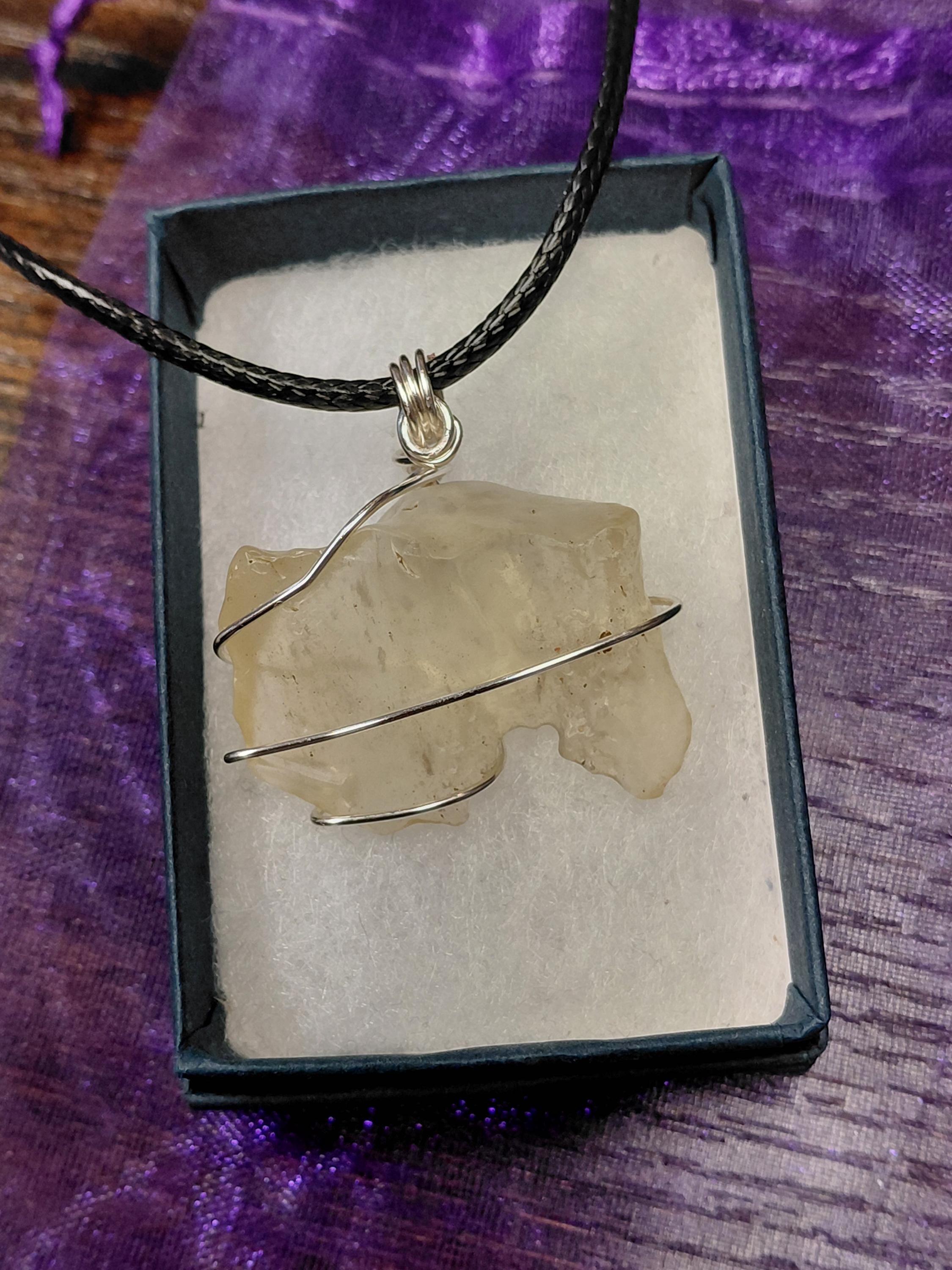 Libyan Desert Glass-Wire Wrapped- Pendant- Wire Wrapped-Black Cord-Gift for Yourself- Friend-Loved One-Gift Box