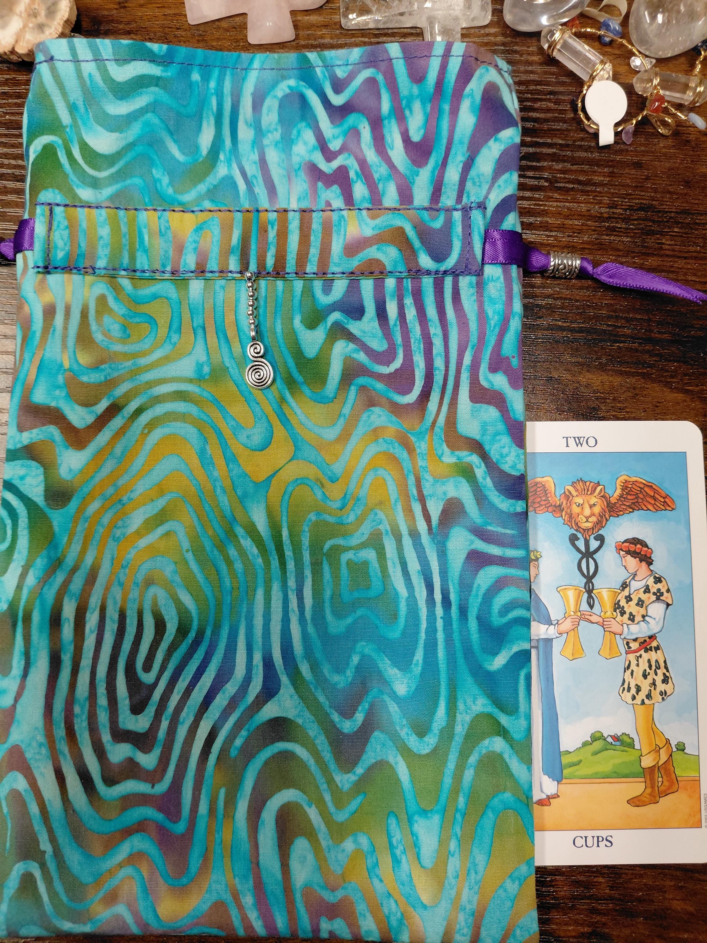 Deluxe Tarot cards pouch Bag, lined pouch, handmade - Charm-Tibetan Silver Beads- New Design