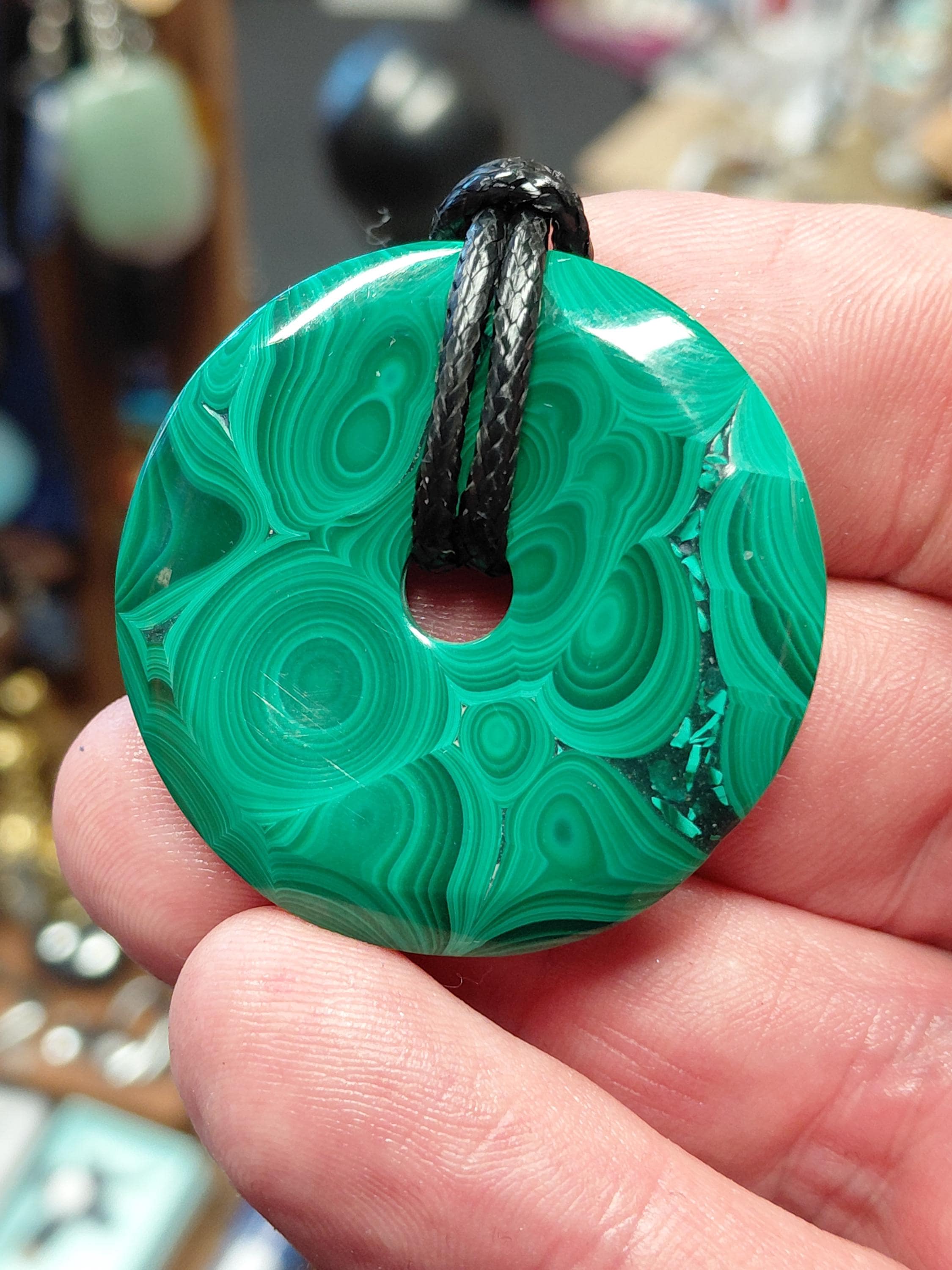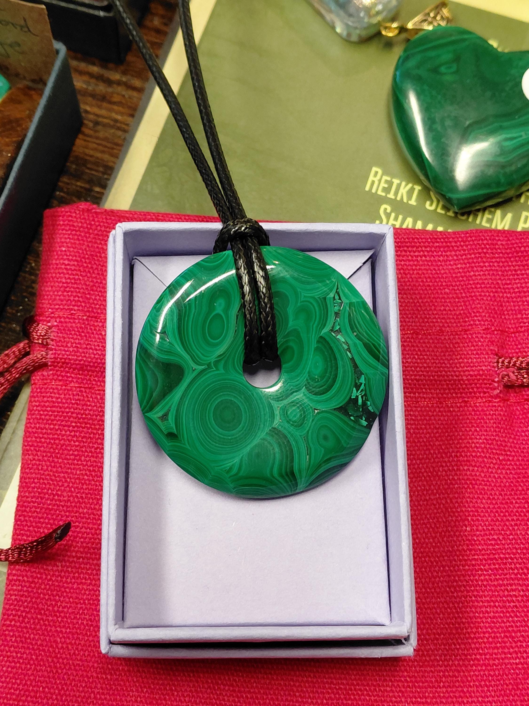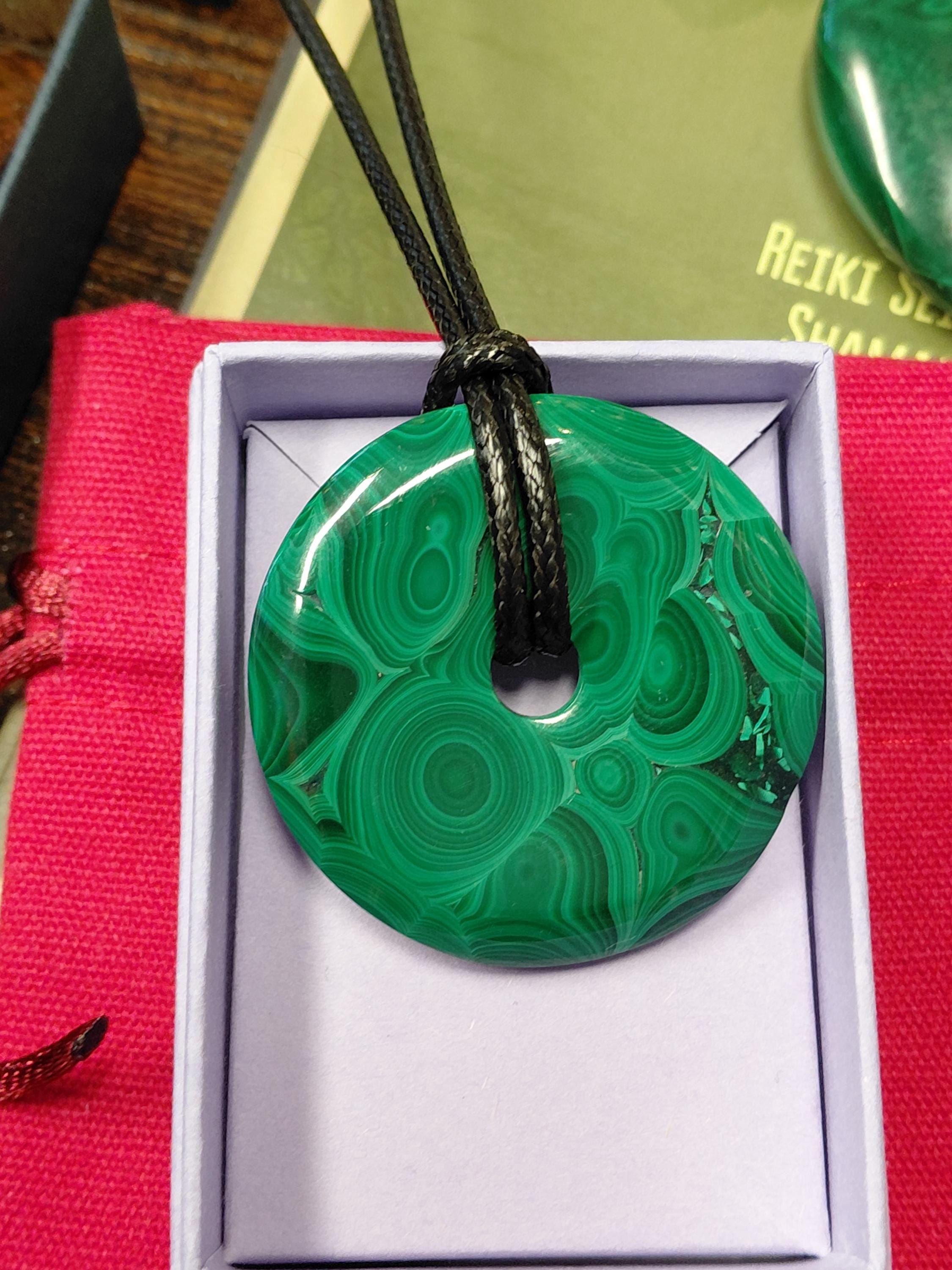 Malachite 40 mm Donut Pendant- Black Cord- Perfect gift for yourself- a friend or a Loved one
