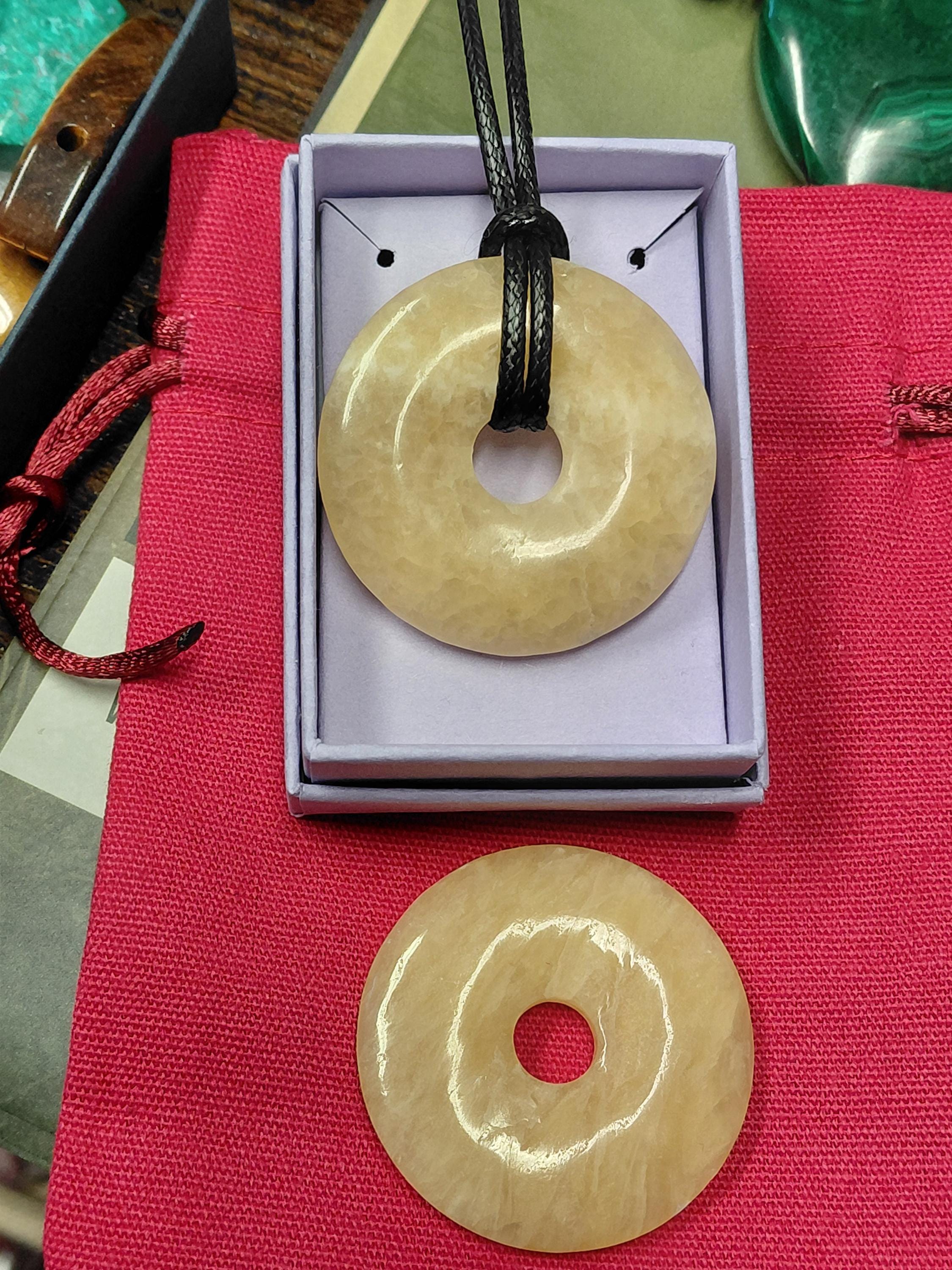 Orange Calcite- Donut Pendant with Black Cord (40mm)