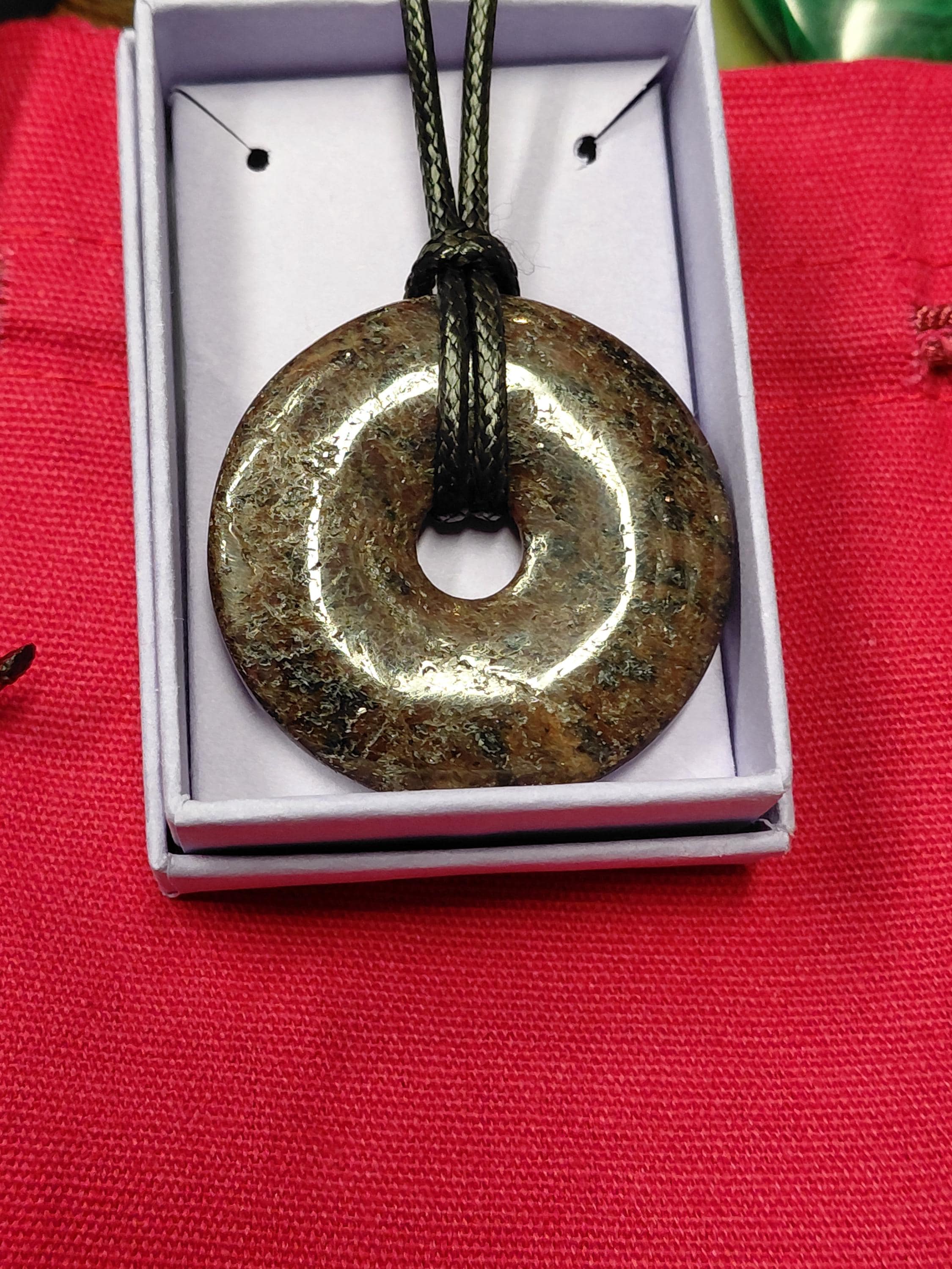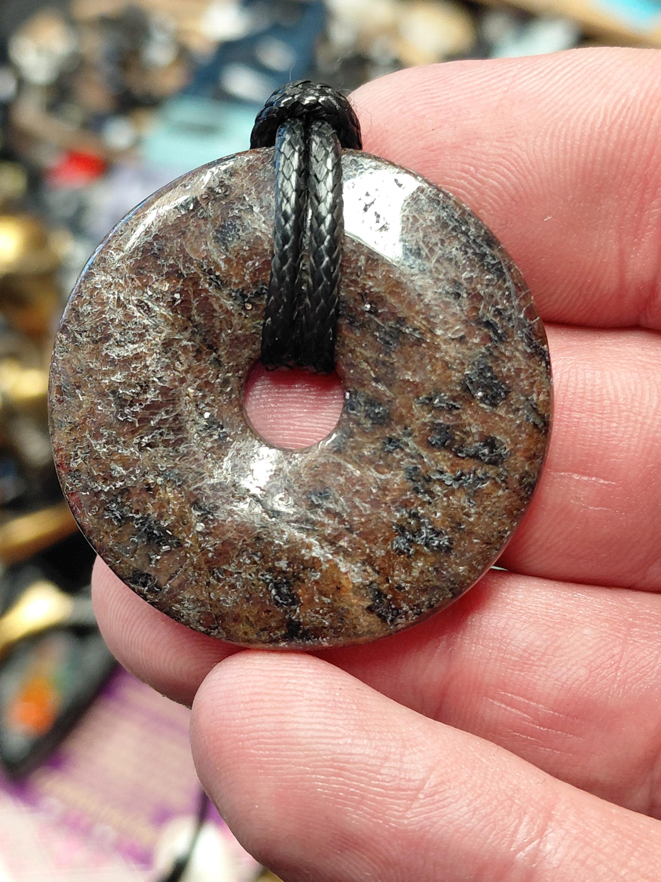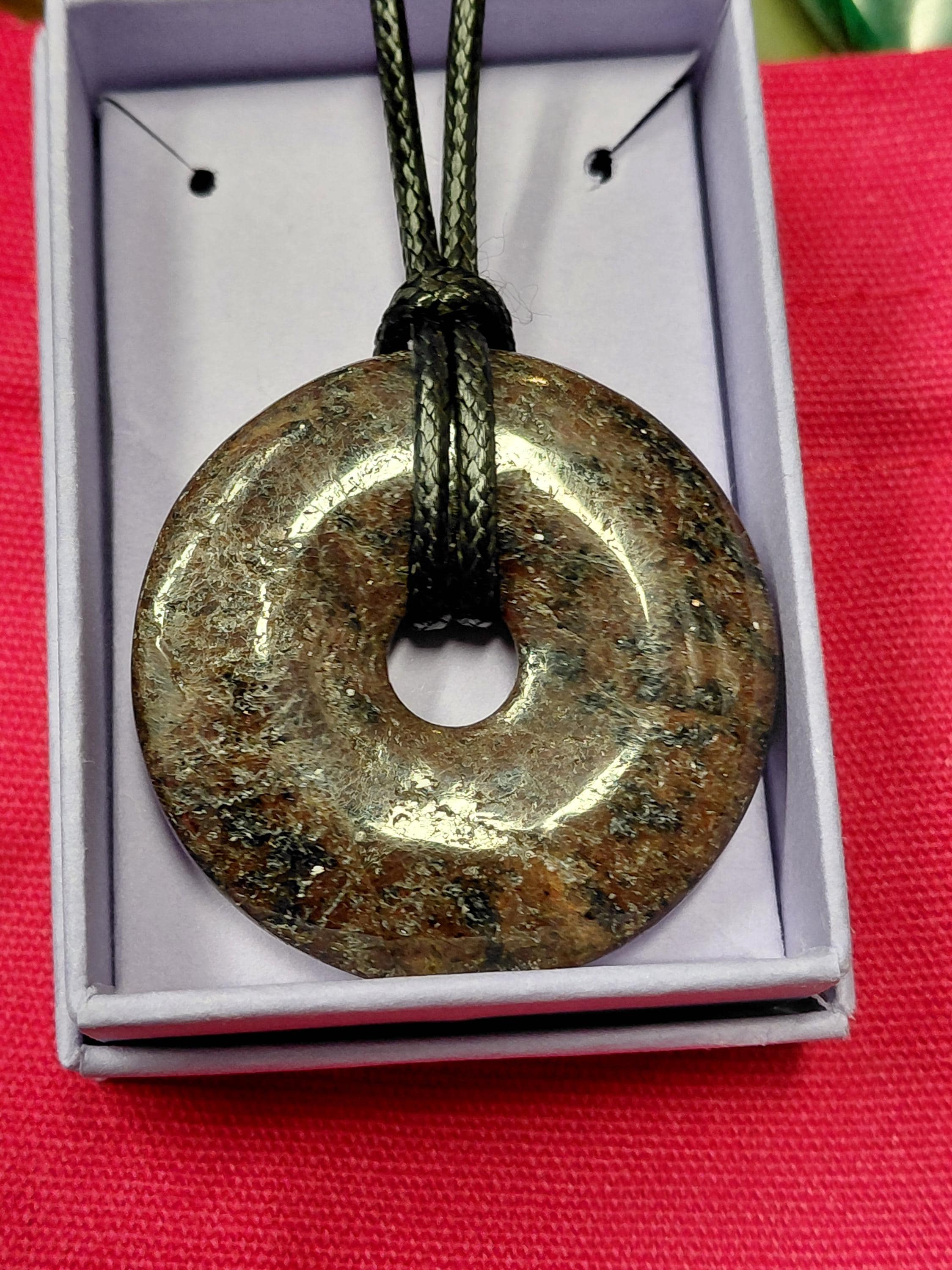 Garnet -Almandine- Donut Pendant with Black Cord (40mm)