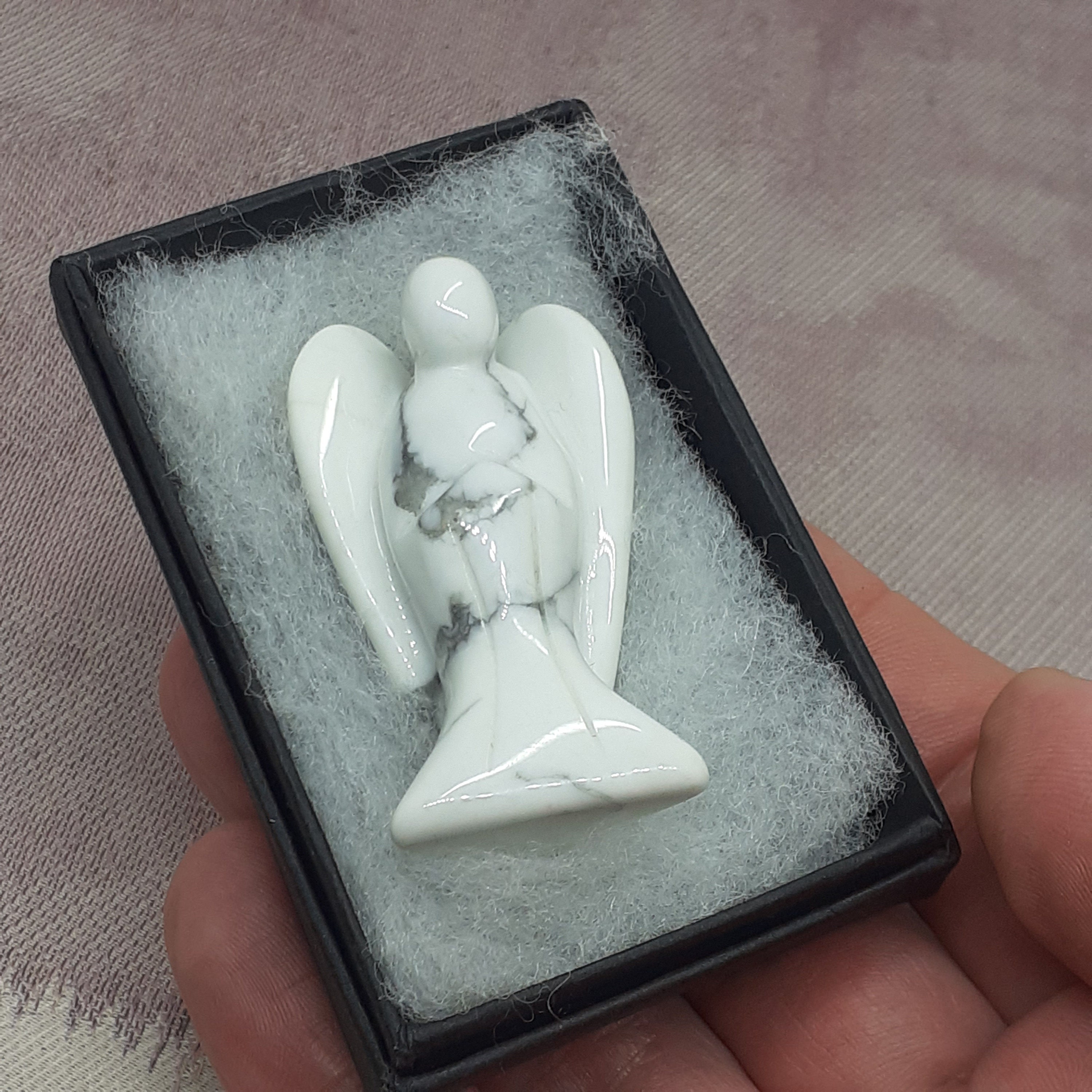 White Howlite Angel 50 mm- Creativity- Gift for Yourself- Friends- Family- Loved One- Gift Box