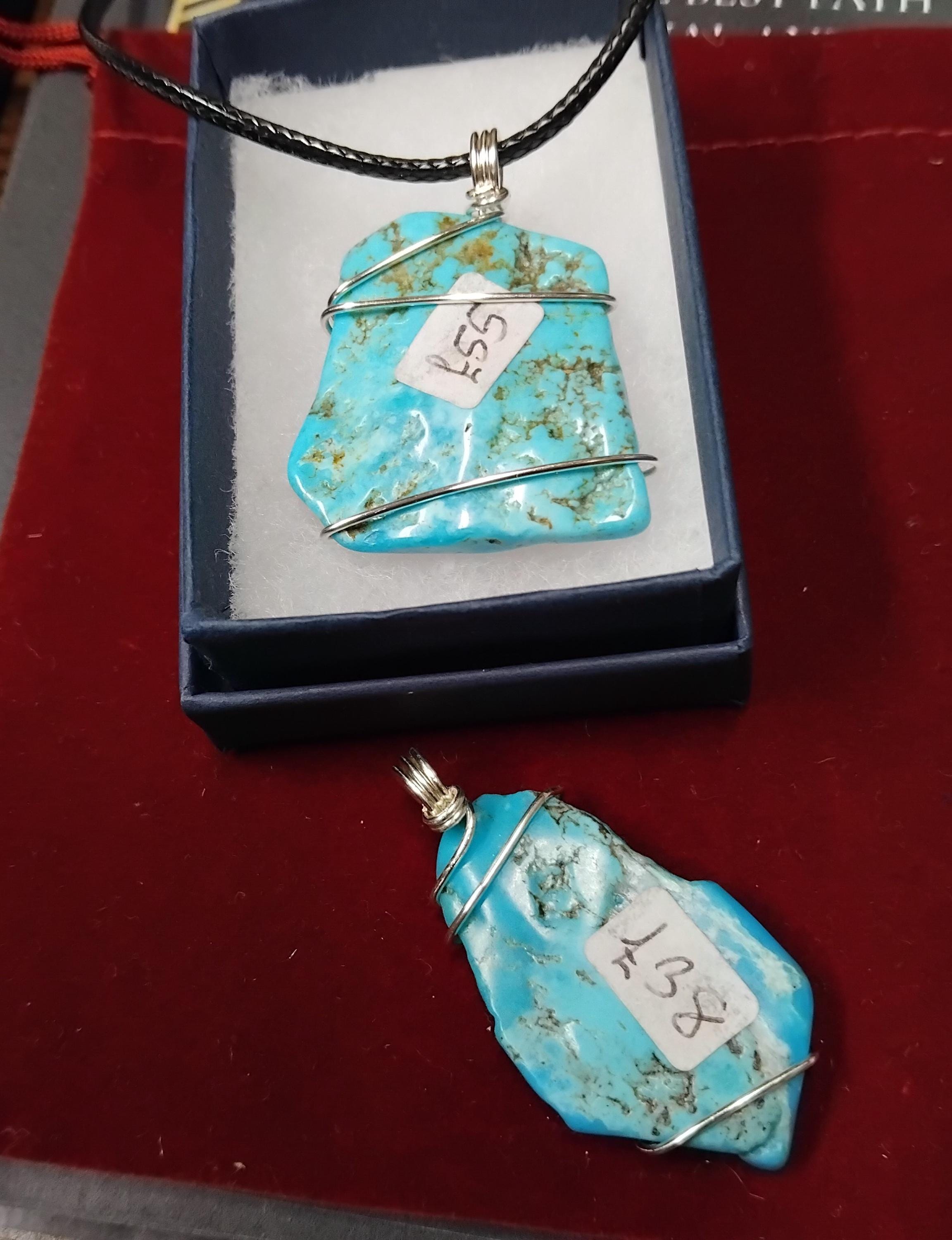 Sleeping Beauty Turquoise-Genuine- Grade-Wire Wrapped-Black Cord-Sacred Stone-Gift for Yourself- Friend-Loved One-Gift Box
